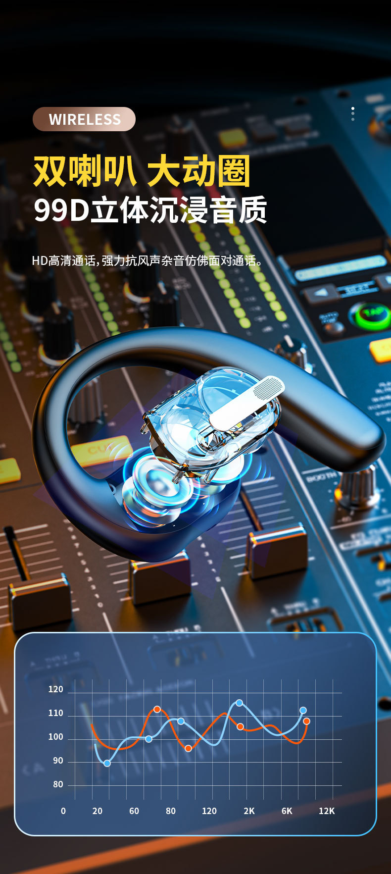 일방적 듀얼 스피커 귀 장착형 블루투스 헤드셋, 비인이어, 고화질 통화, 비즈니스 스포츠 블루투스 헤드셋, 대용량