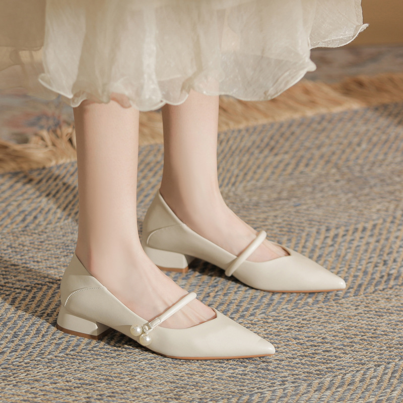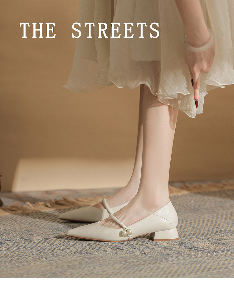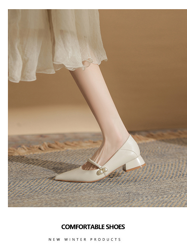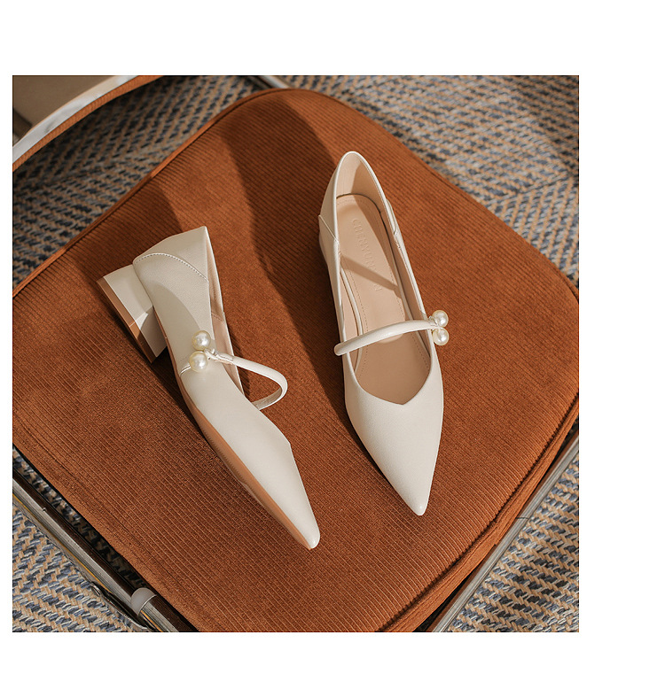 진강 CG3008 청키 힐 포인티드 특허 가죽 싱글 레이어 신발 여성의 2024 년 새 봄 및 가을 섹시한 쇼트 힐 올 매치 얕은 입 여성용 신발스토어 가기