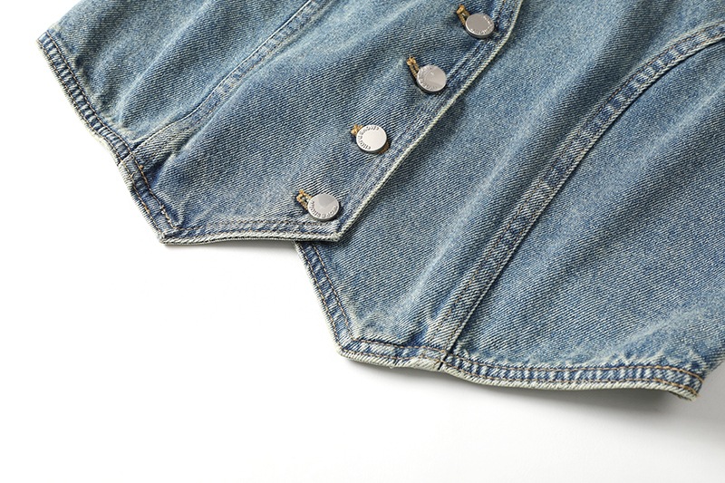 데님 조끼 2024 가을 새로운 여성 싱글 브레스트 V 넥 달콤한 시원한 기질 캐주얼 짧은 코트 90124241901