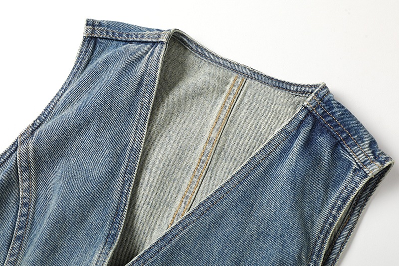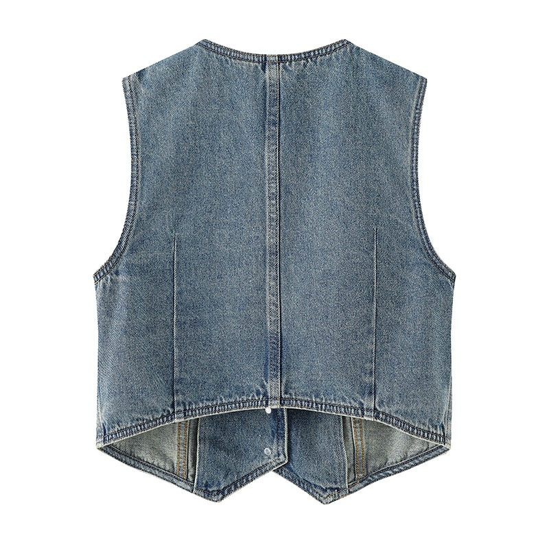 데님 조끼 2024 가을 새로운 여성 싱글 브레스트 V 넥 달콤한 시원한 기질 캐주얼 짧은 코트 90124241901스토어 가기