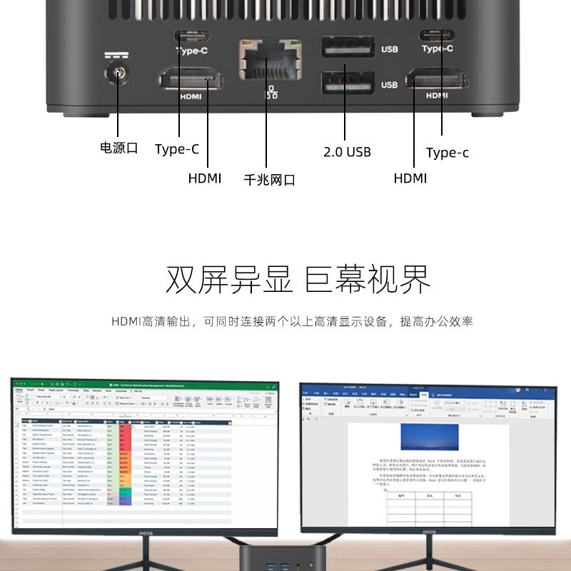 미니 컴퓨터 호스트 높은 장착 N100 쿼드 코어 엔터테인먼트 사무실 가정용 알루미늄 플라스틱 바디 미니 컴퓨터 미니 호스트스토어 가기