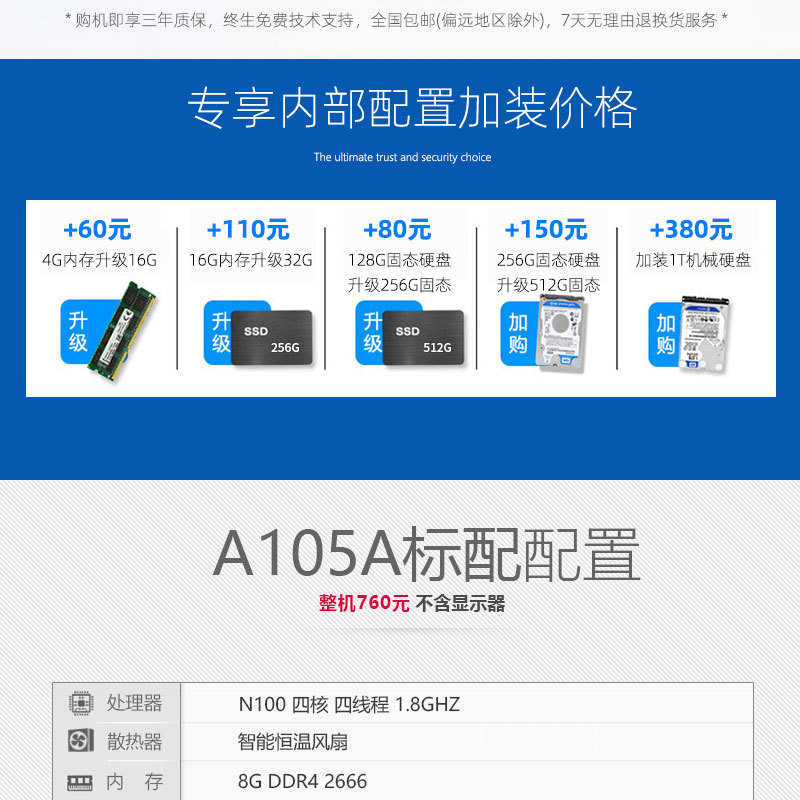 • A2 N100 쿼드 코어 4스레드 1.8GHz+8G+256G+ 통합