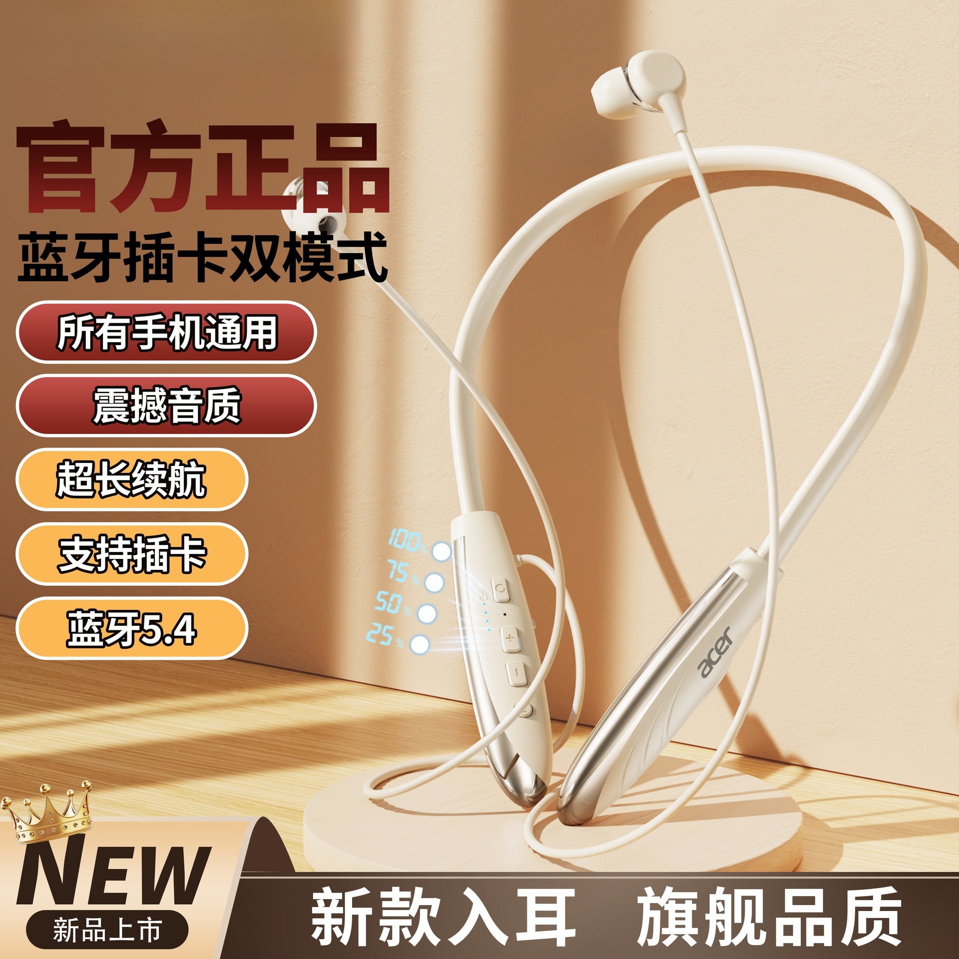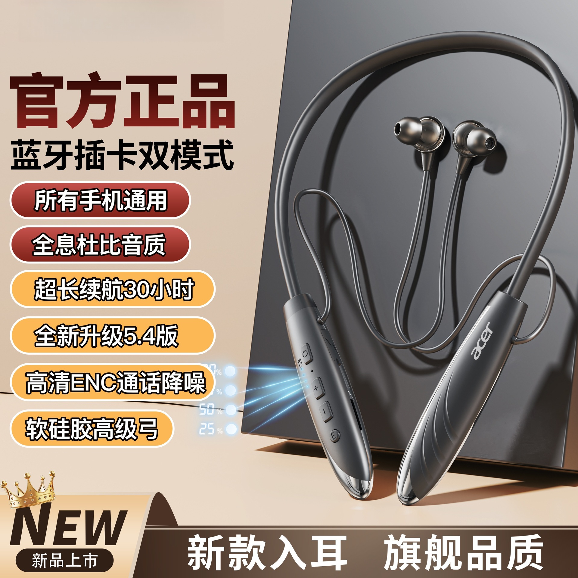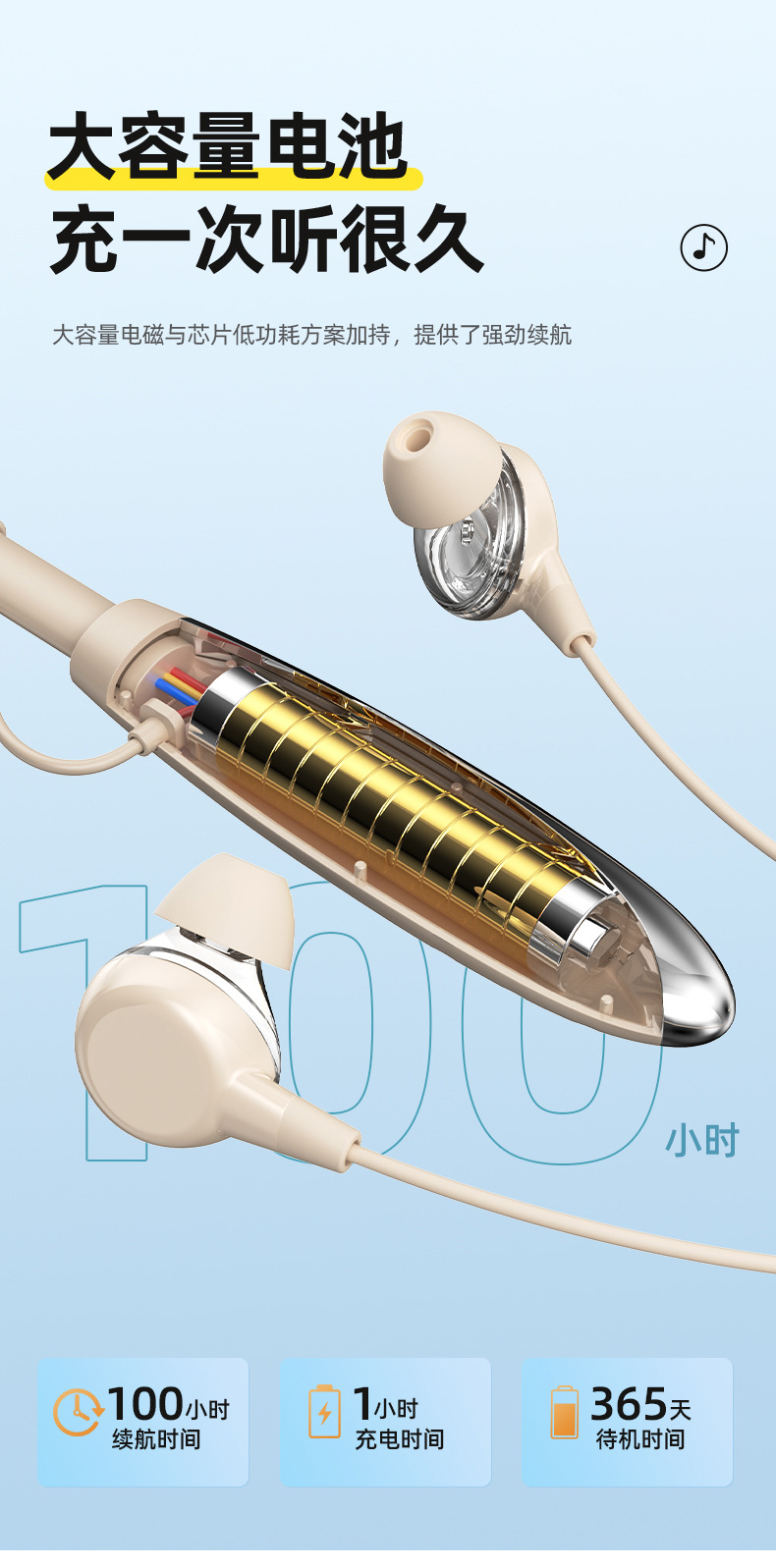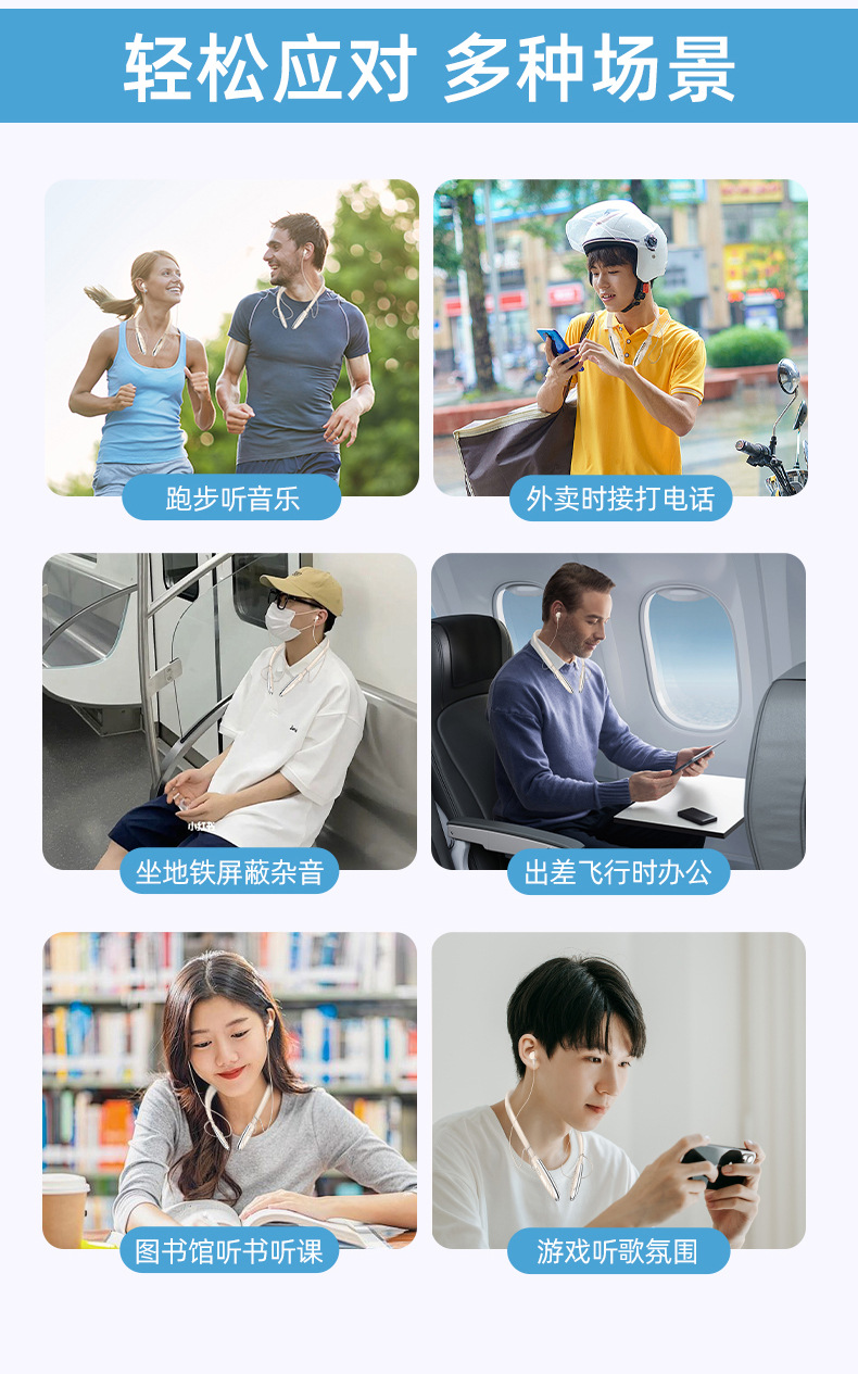 2025년 새로운 크로스보더 블루투스 헤드셋, 목걸이형 음악 스포츠 헤드셋, 매우 긴 배터리 수명, 모든 휴대폰에 보편적