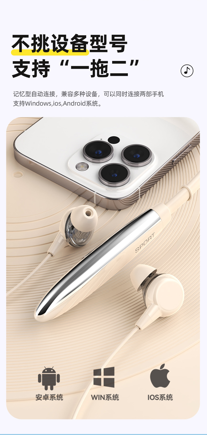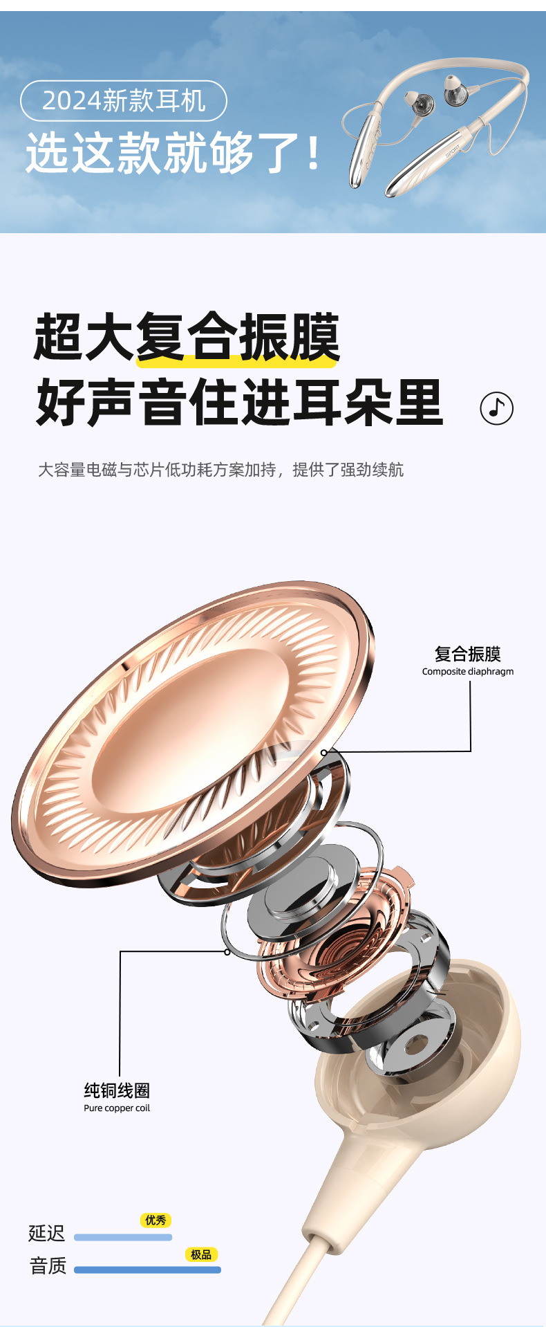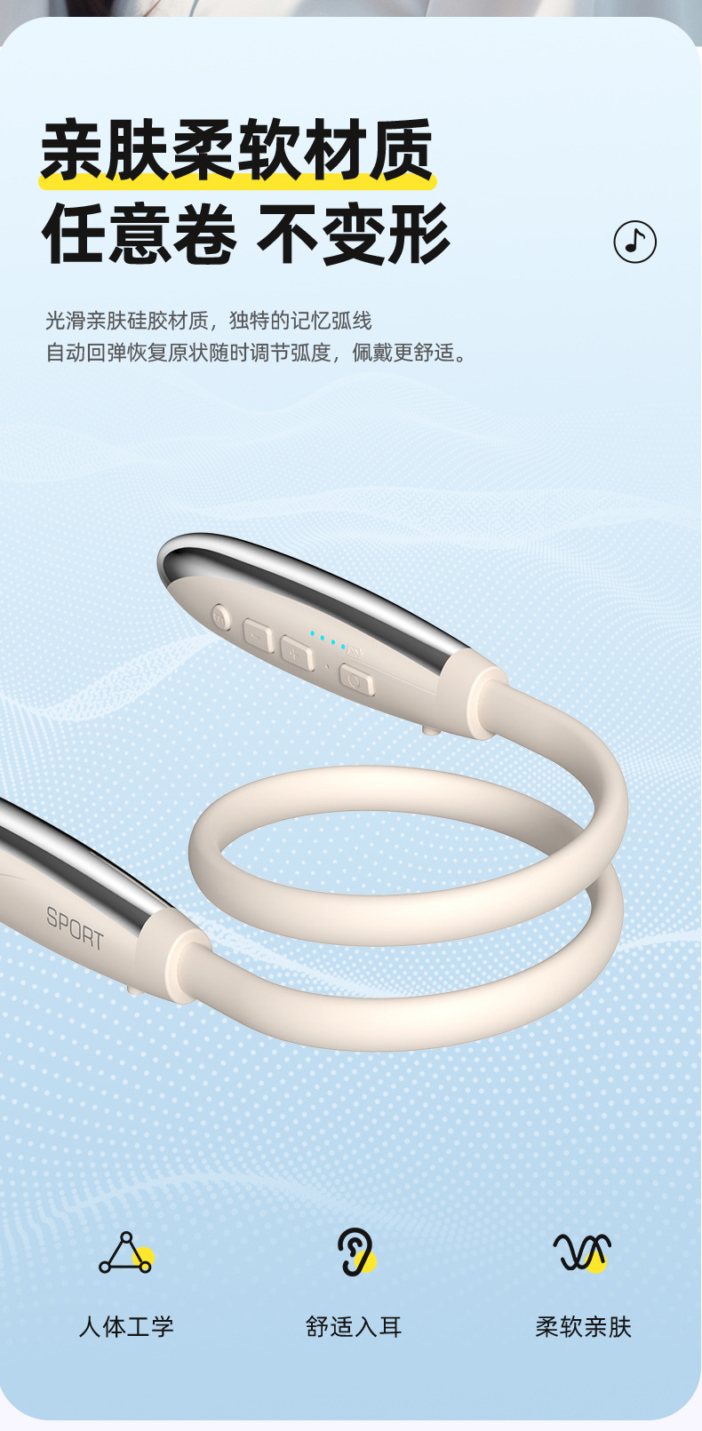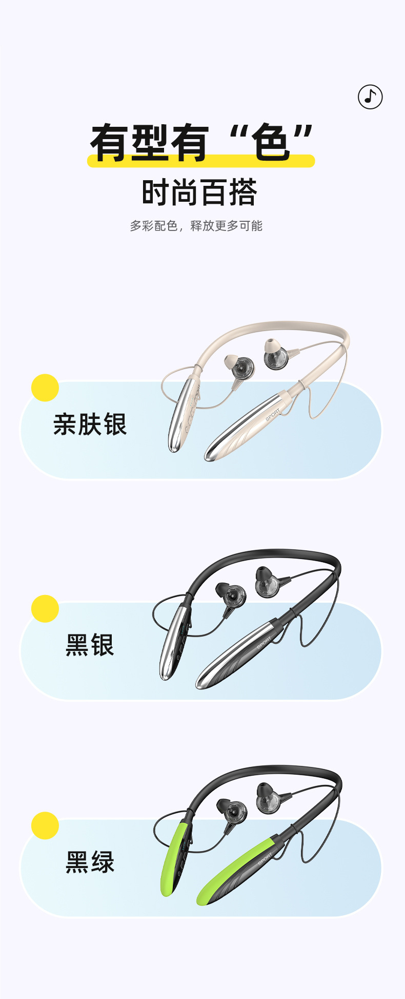 2025년 새로운 크로스보더 블루투스 헤드셋, 목걸이형 음악 스포츠 헤드셋, 매우 긴 배터리 수명, 모든 휴대폰에 보편적