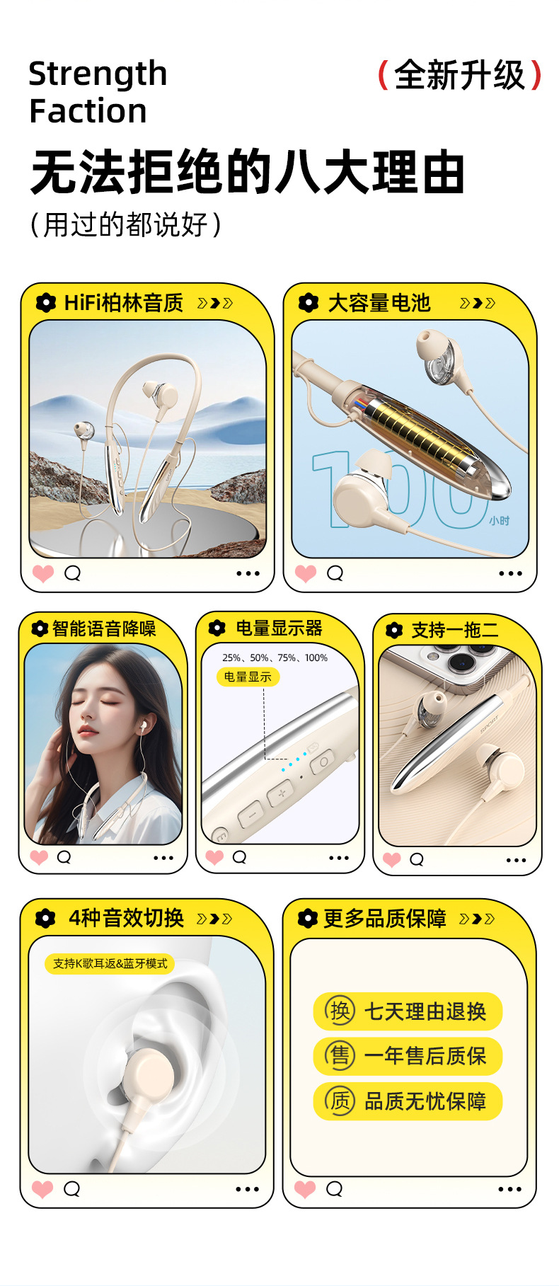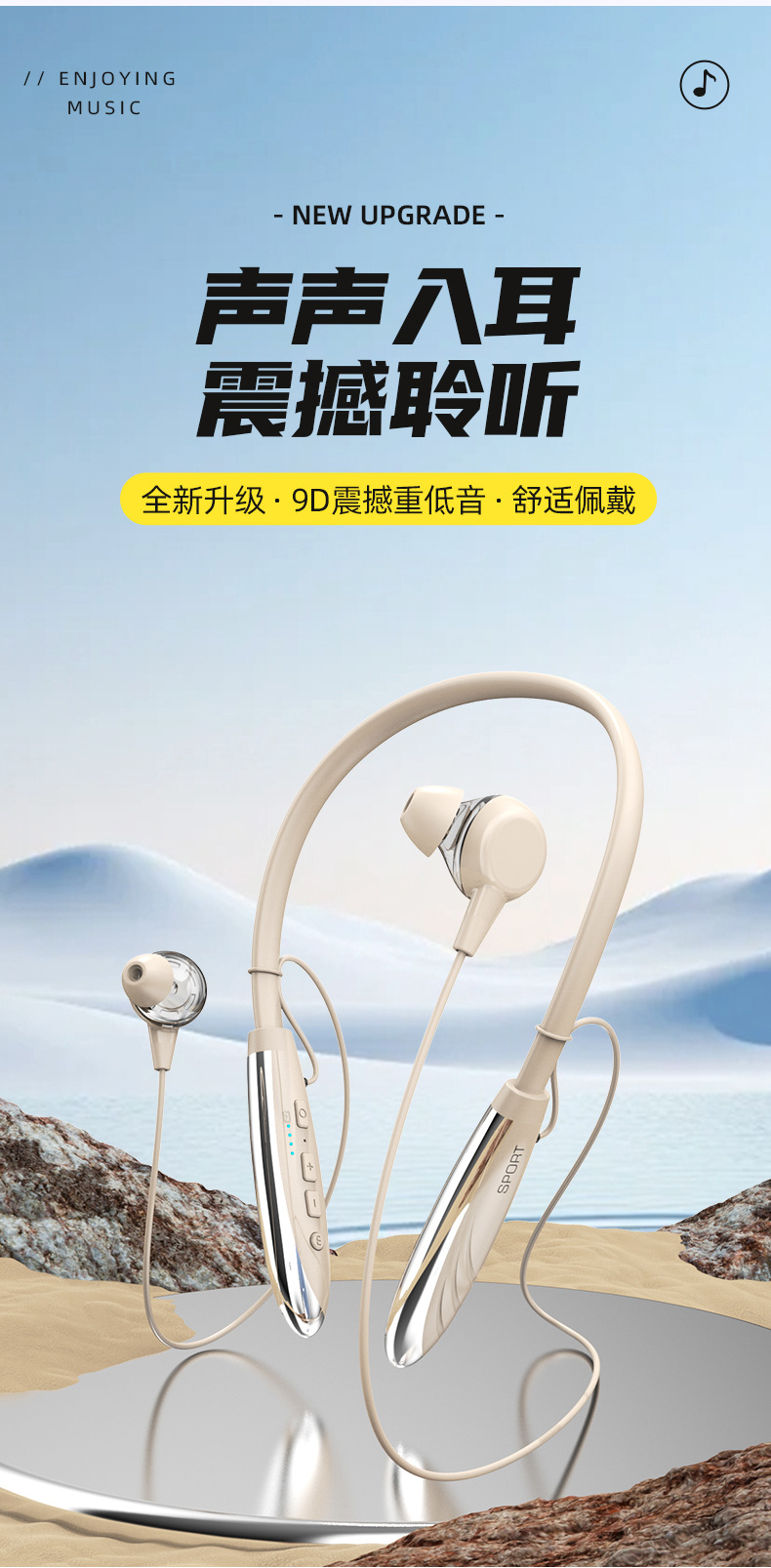 2025년 새로운 크로스보더 블루투스 헤드셋, 목걸이형 음악 스포츠 헤드셋, 매우 긴 배터리 수명, 모든 휴대폰에 보편적스토어 가기
