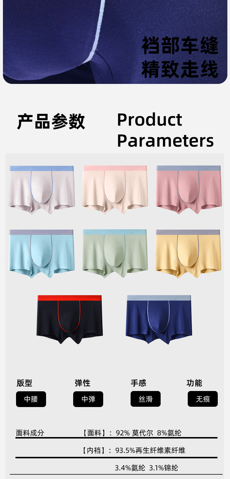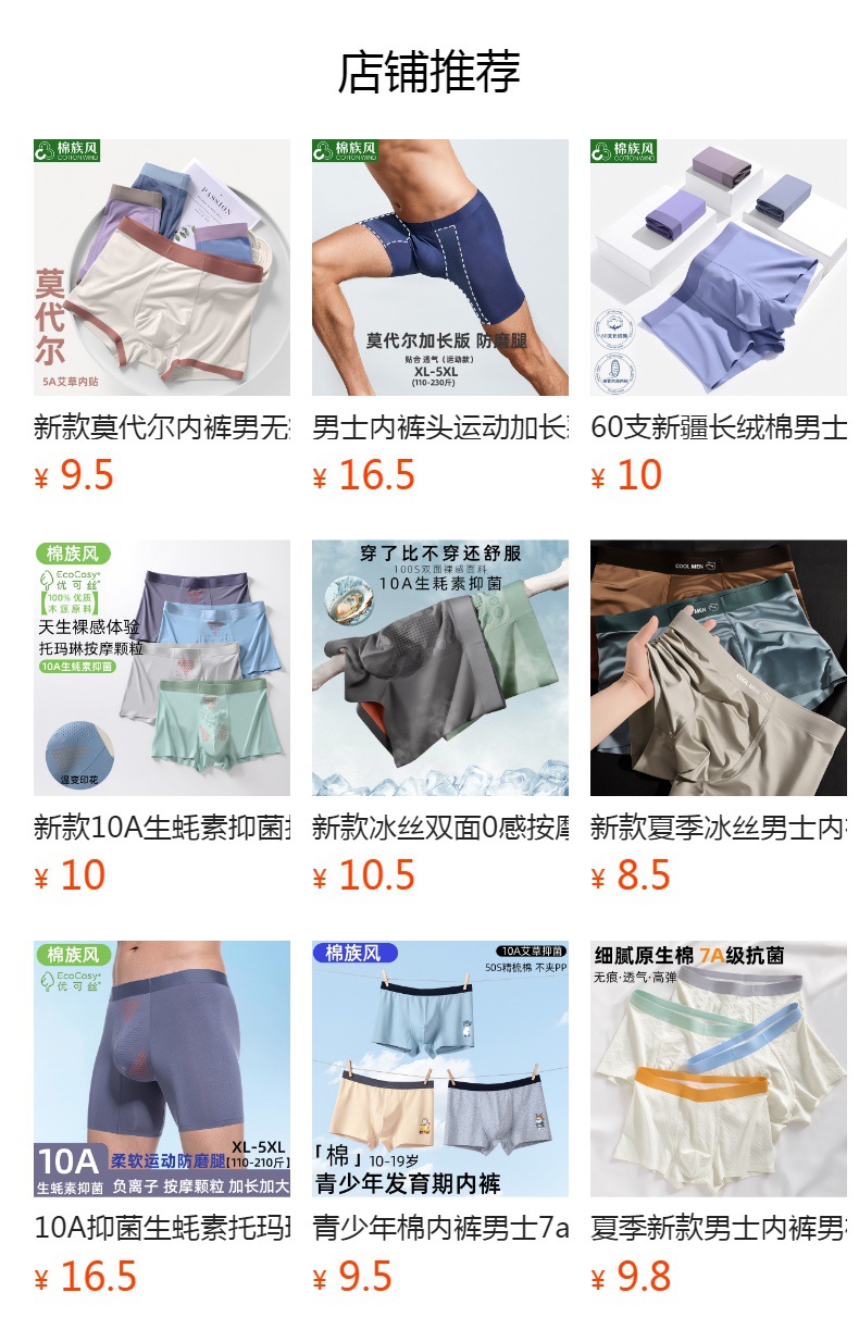 모달 남성 속옷 무봉제 10A 항균 부드럽고 통기성 좋은 사각팬티 청년용 중간 허리 사각팬티스토어 가기