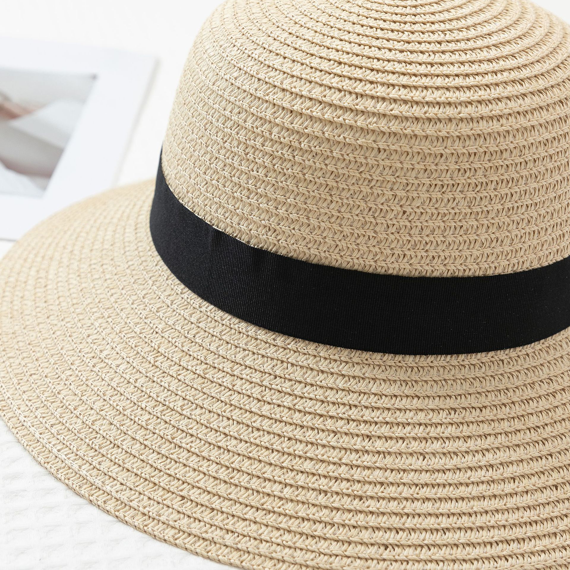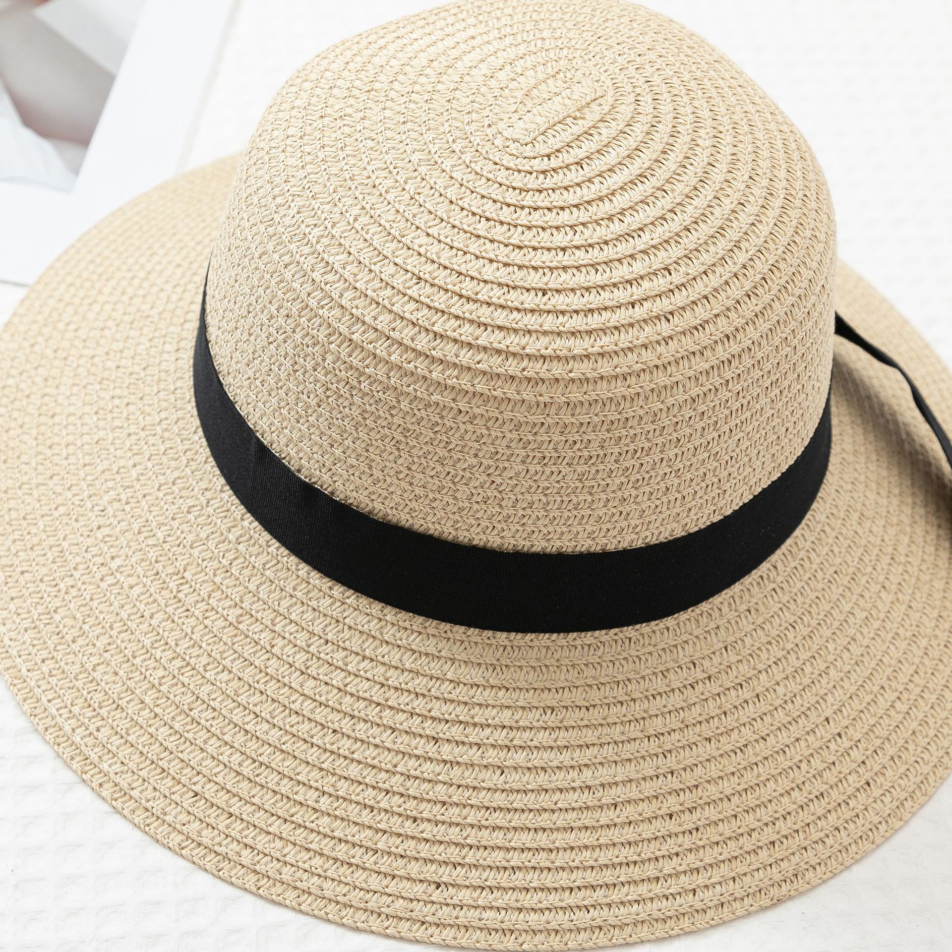 작은 신선한 일본 스타일 햇빛 분지 모자 간단한 스트랩 활 밀짚 모자 여성의 여름 나들이 큰 브림 쿨 모자스토어 가기