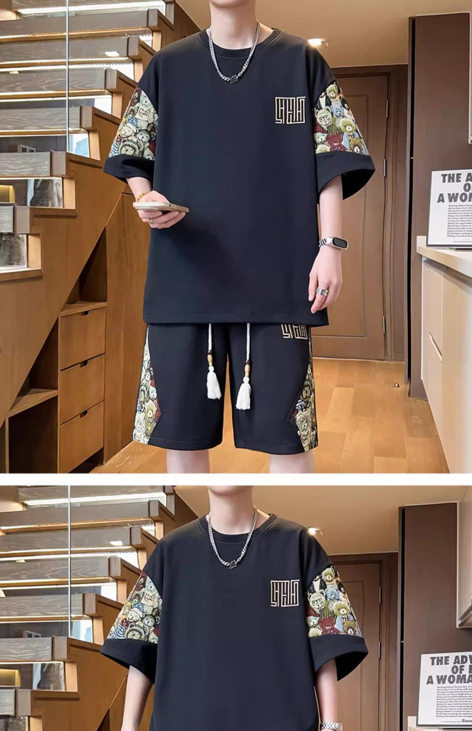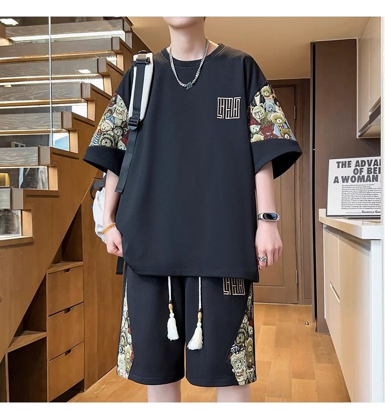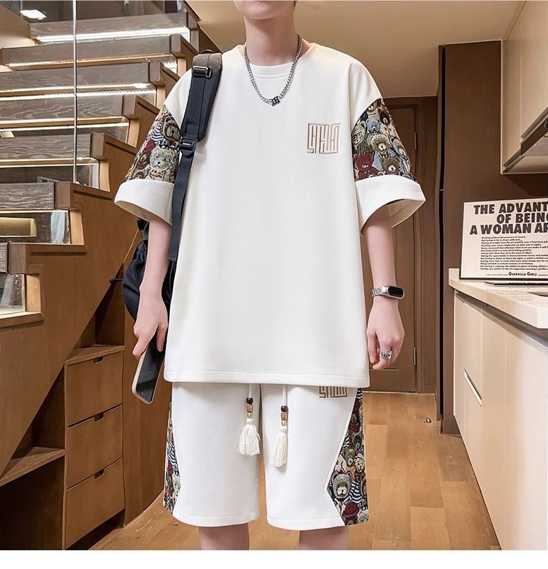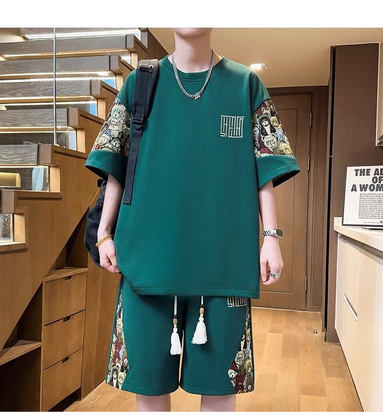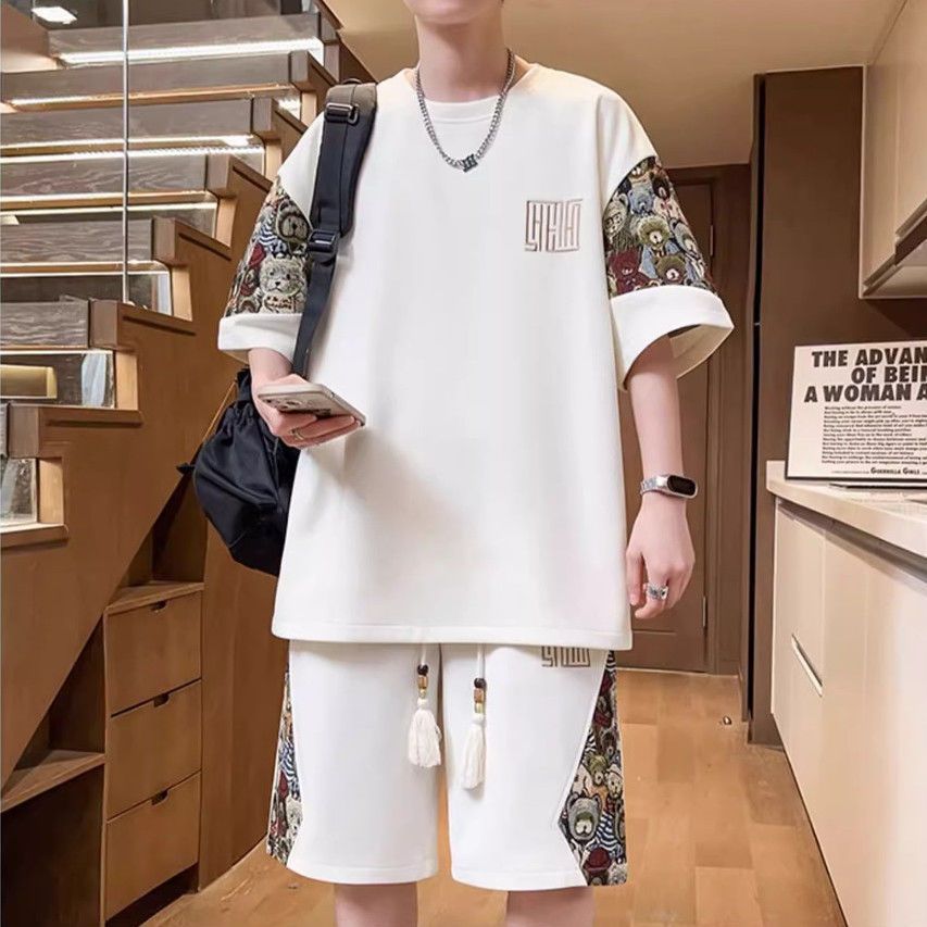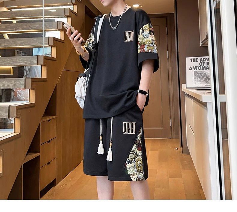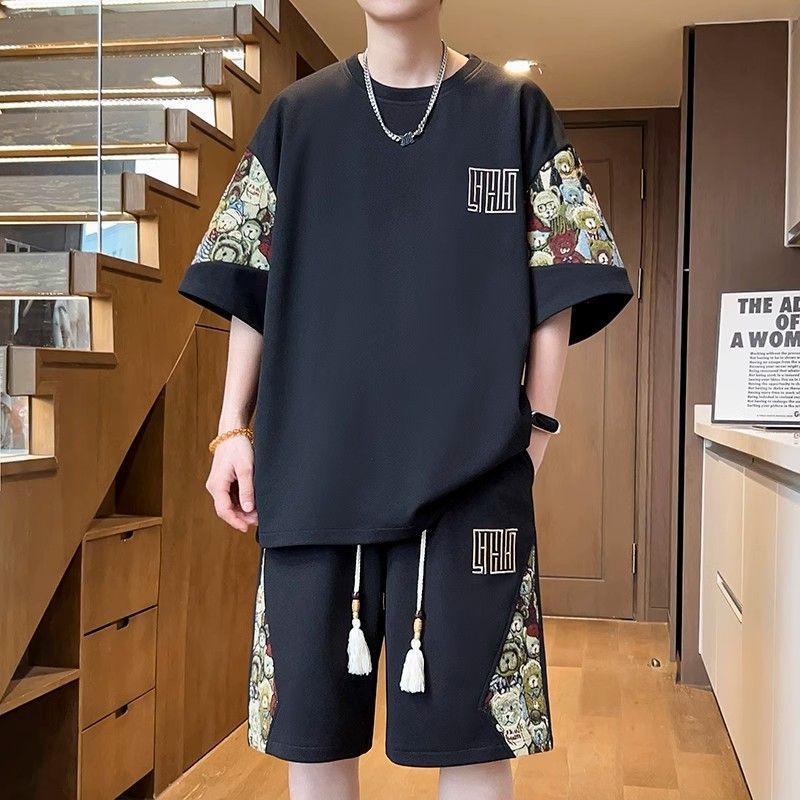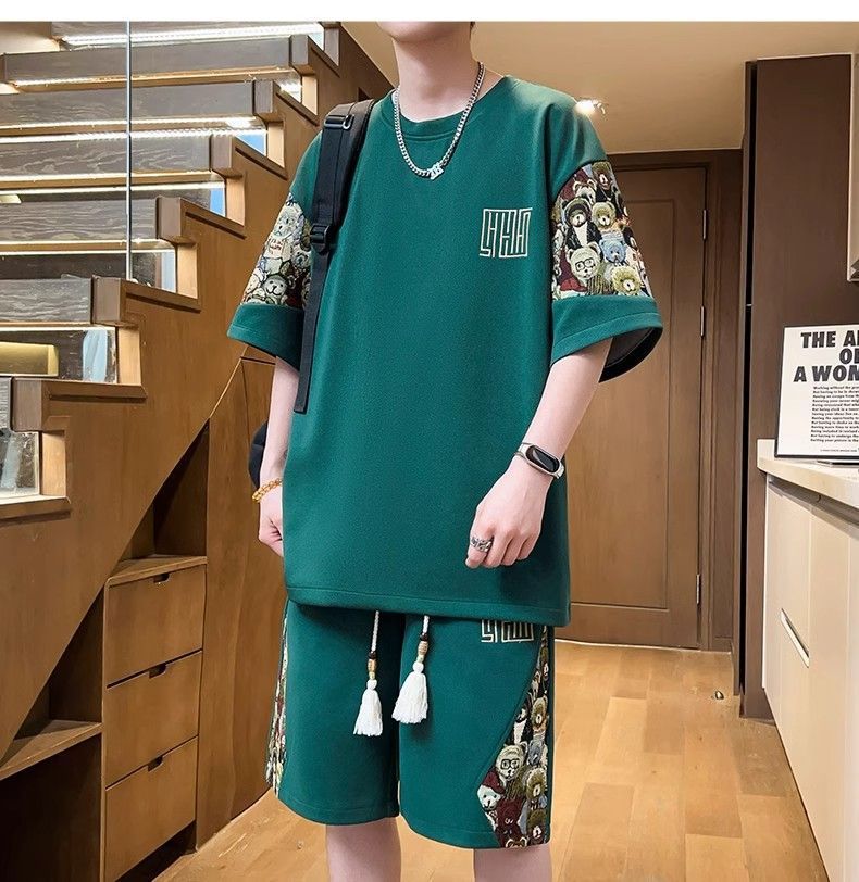 2025 신상 중국풍 여름 남성복 럭셔리 고급 반팔 반바지 스포츠 투피스 남성 캐주얼 패션 세트 트렌드스토어 가기