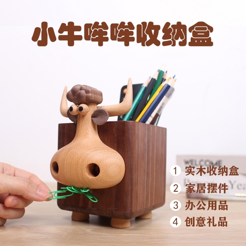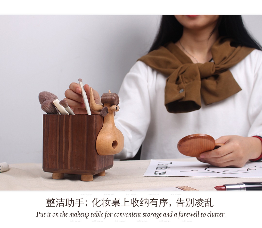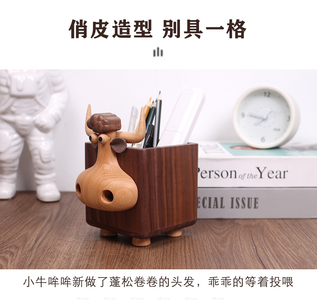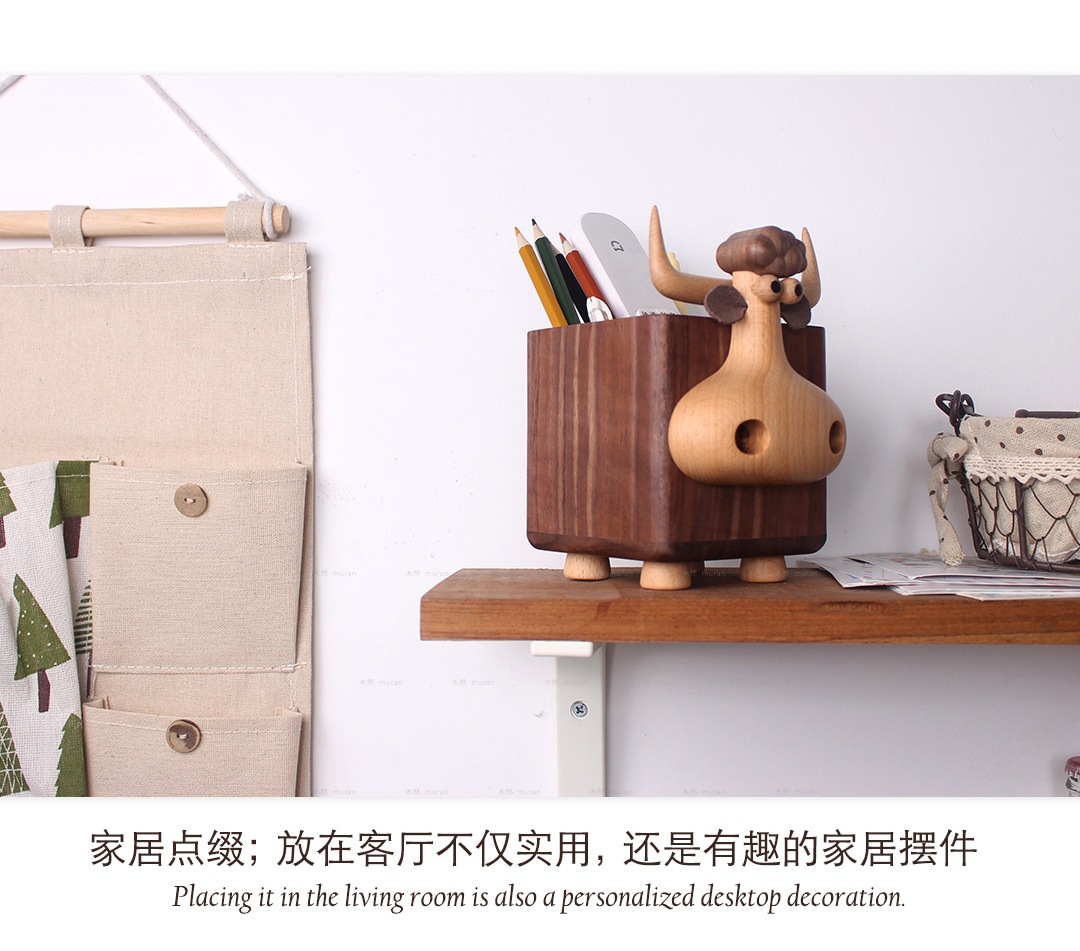 검은 호두 송아지 저장 상자 단단한 나무 대용량 펜 홀더 창조적 인 나무 선물 데스크탑 다기능 장식품