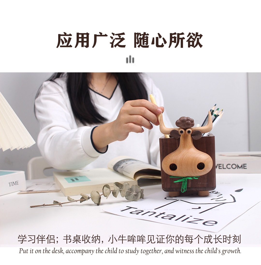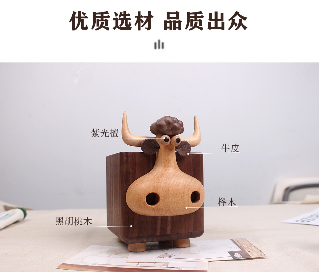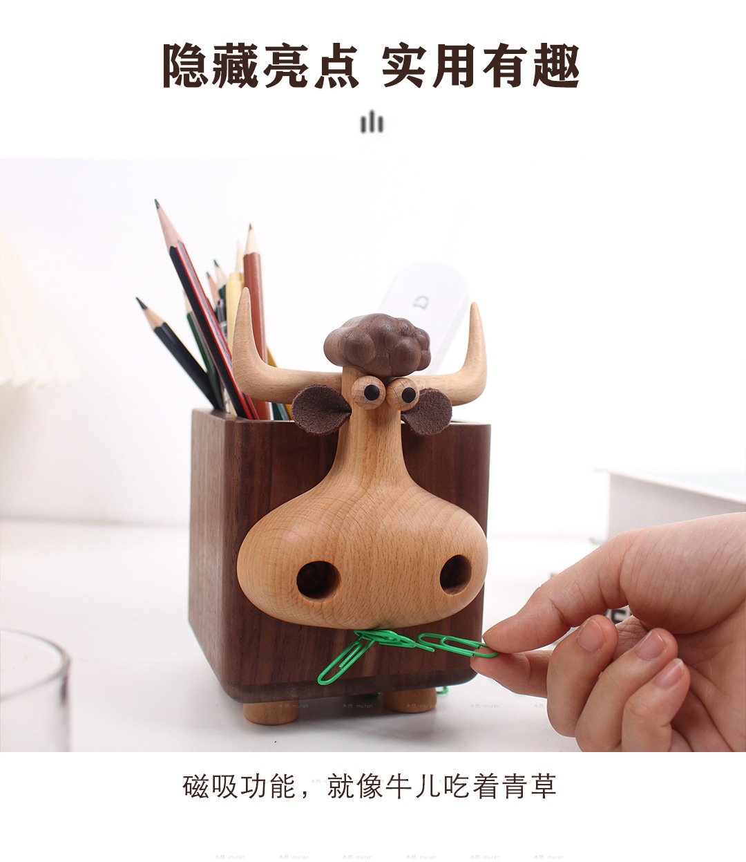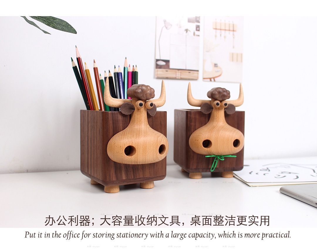 검은 호두 송아지 저장 상자 단단한 나무 대용량 펜 홀더 창조적 인 나무 선물 데스크탑 다기능 장식품