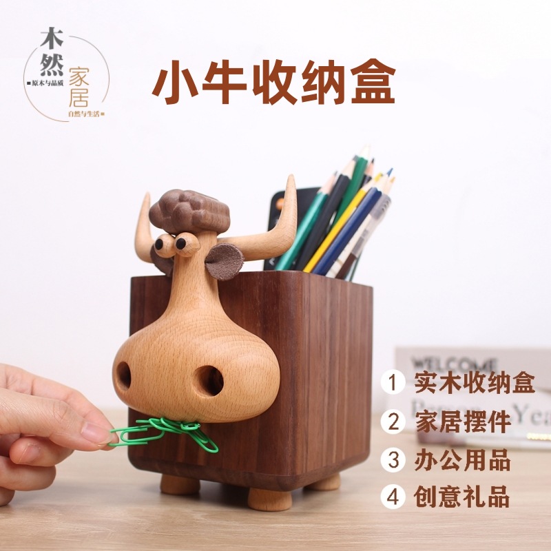 검은 호두 송아지 저장 상자 단단한 나무 대용량 펜 홀더 창조적 인 나무 선물 데스크탑 다기능 장식품스토어 가기