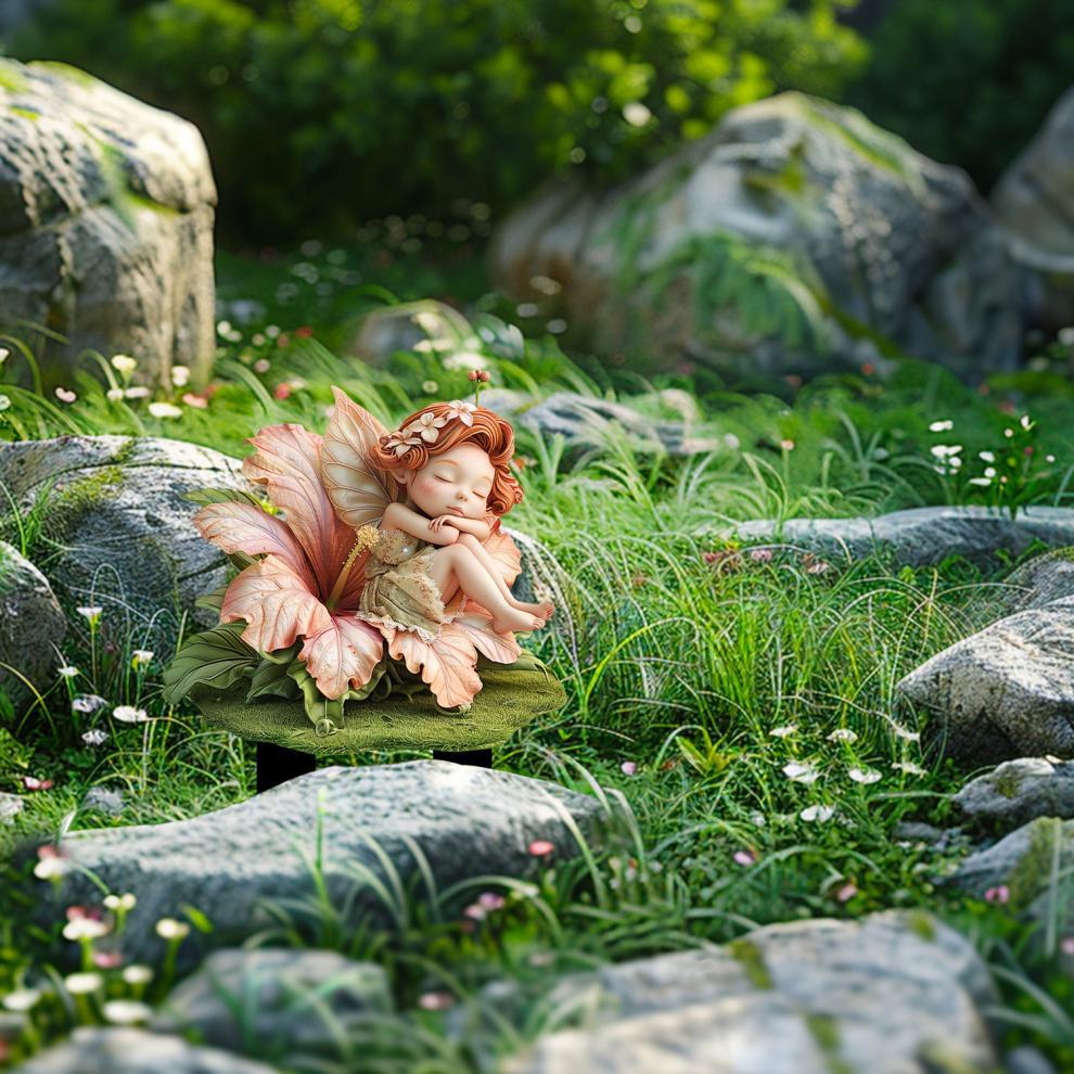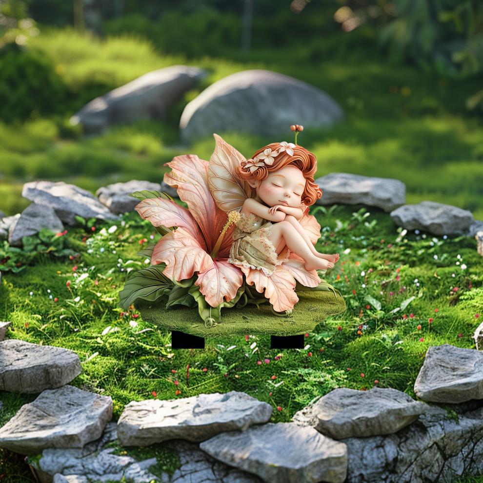 아크릴 히비스커스 꽃 잠자는 요정 요정 정원 바닥 동상 방수 스크래치 방지 화분 홈 장면 장식스토어 가기