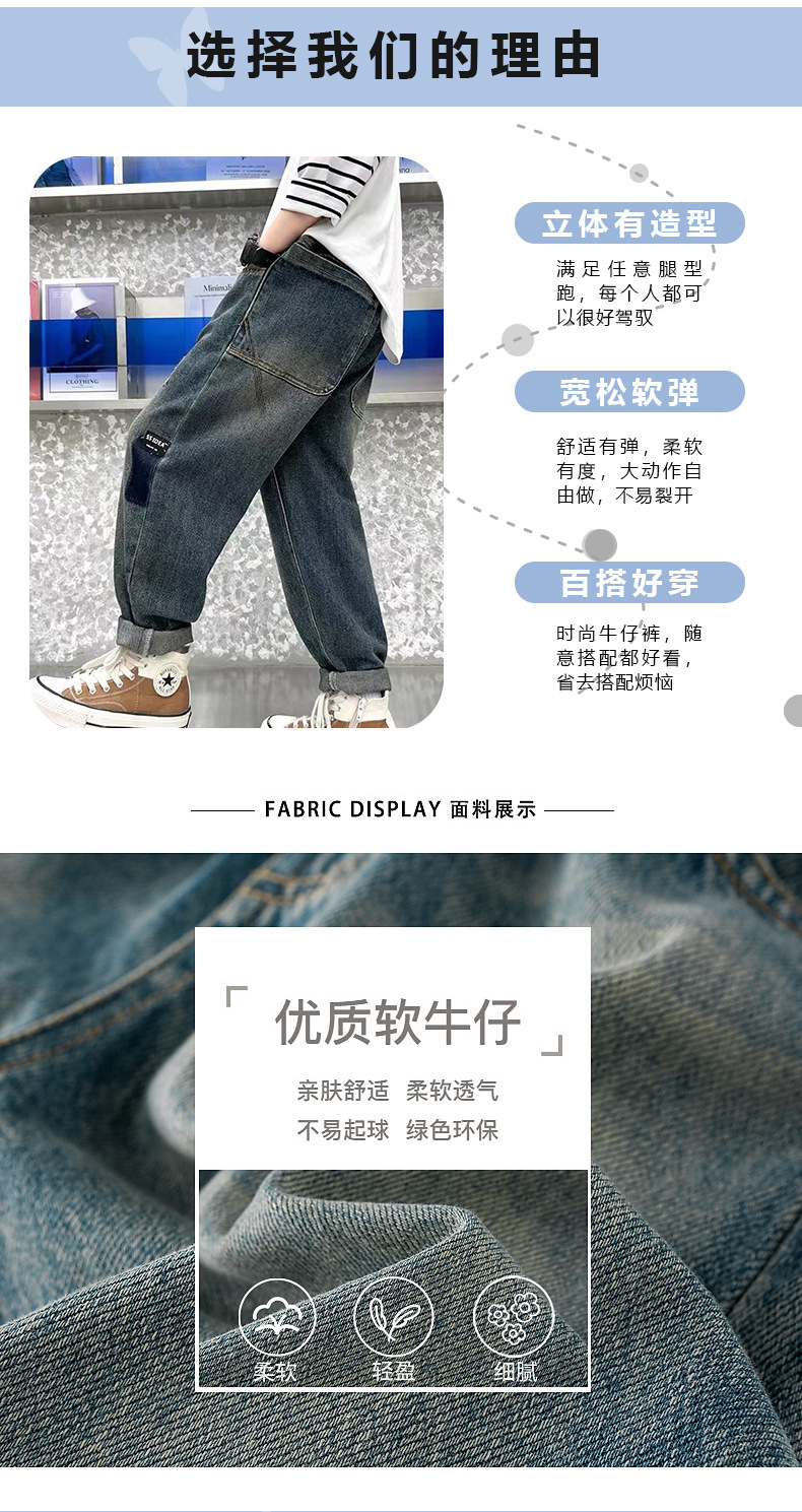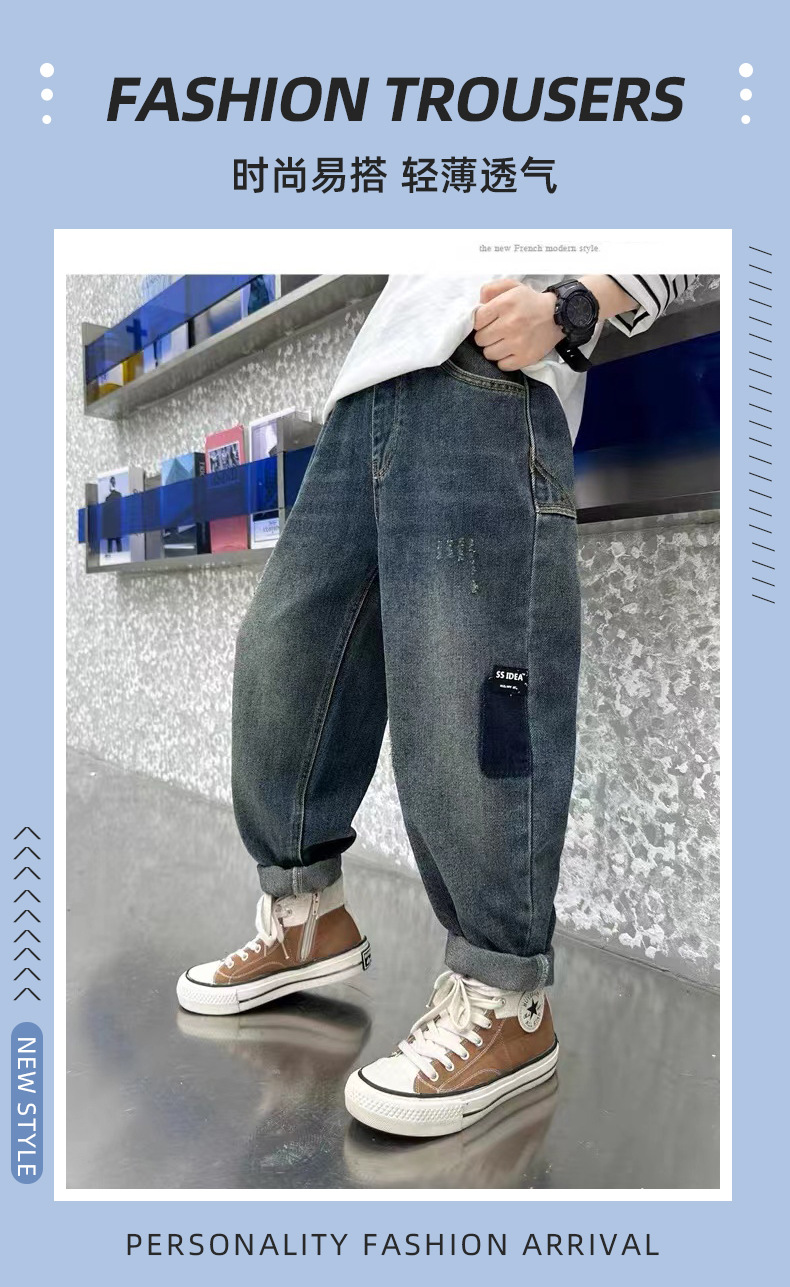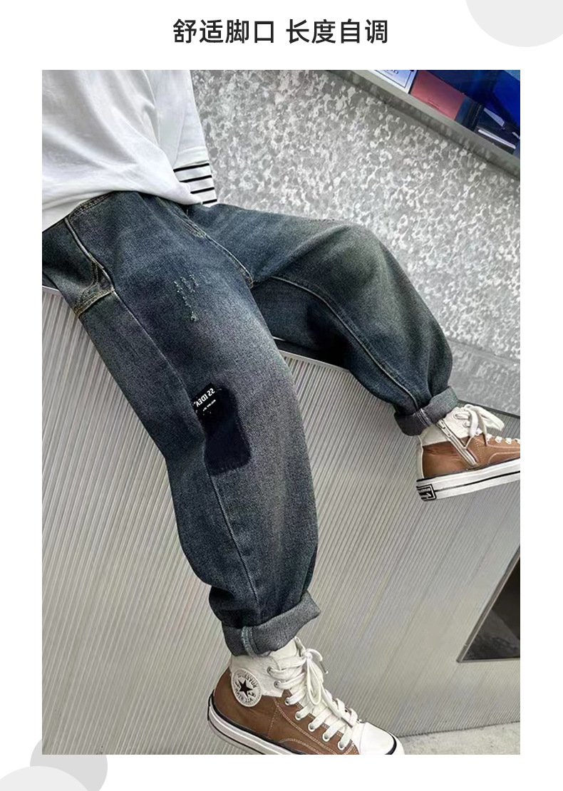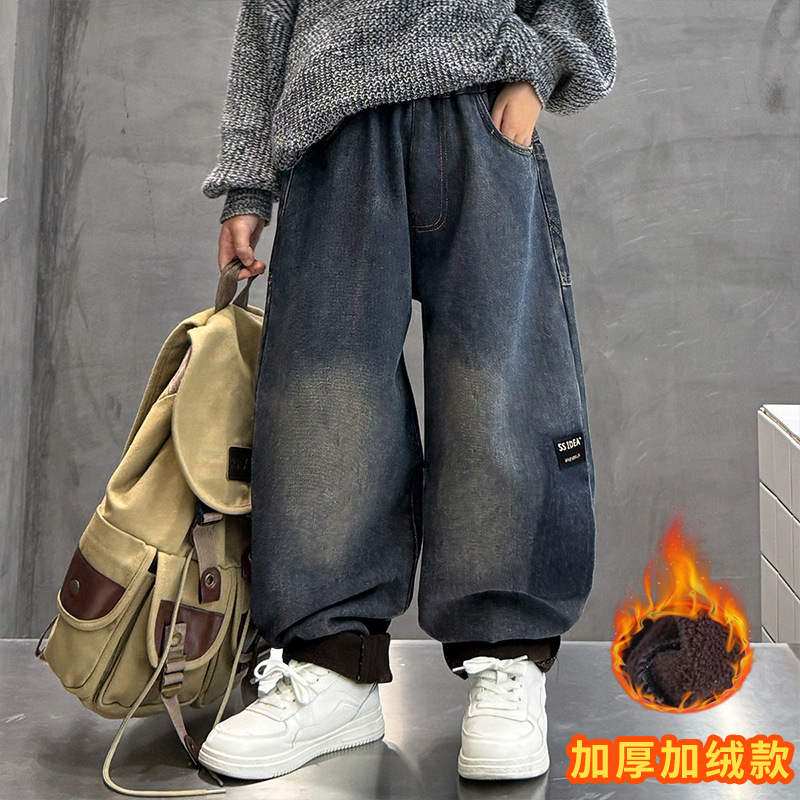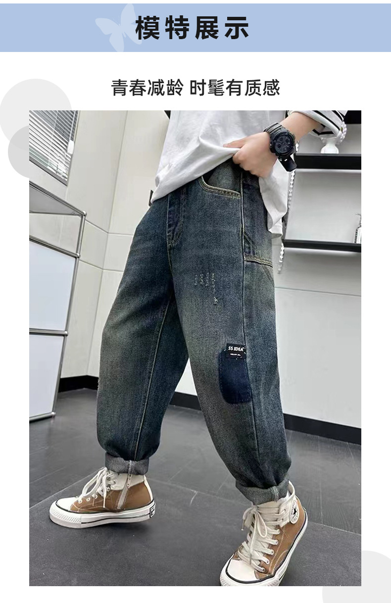 남아 청바지, 멋진 아동 바지, 트렌디 브랜드 2025 봄 가을 새로운 스타일, 중대형 아동용 루즈한 스트리트 팬츠스토어 가기