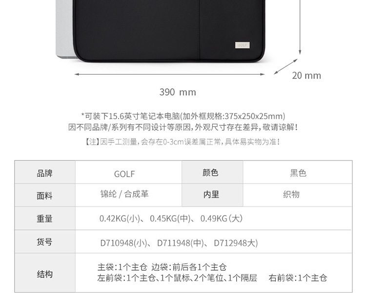 골프 노트북 가방 남자와 여자 노트북 휴대용 사업 15.6 인치스토어 가기