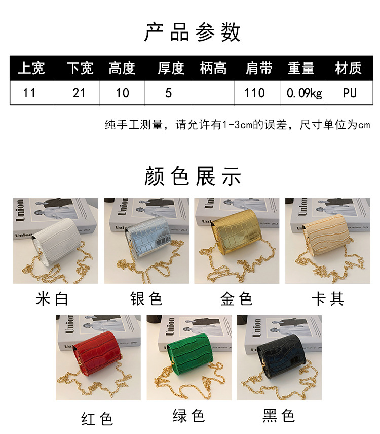 대외 무역 어린이 가방 가을과 겨울 새로운 악어 패턴 작은 사각 가방 서양식 소녀 정복 스타일 체인 크로스 백 동전 지갑스토어 가기