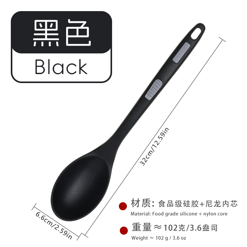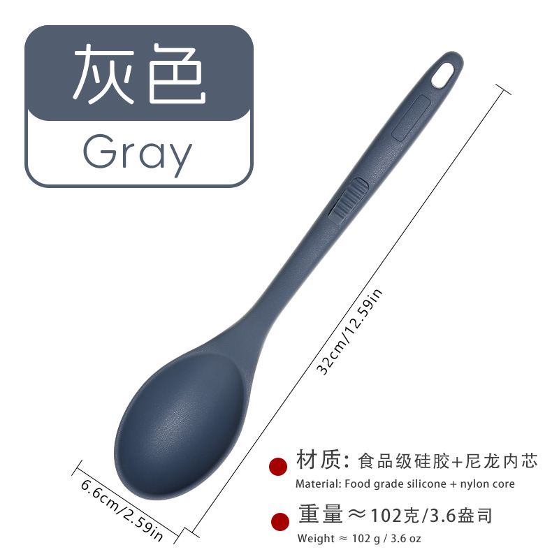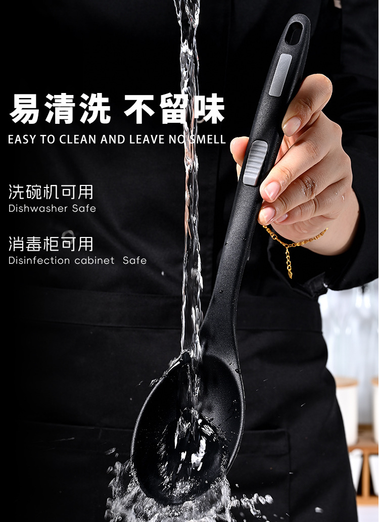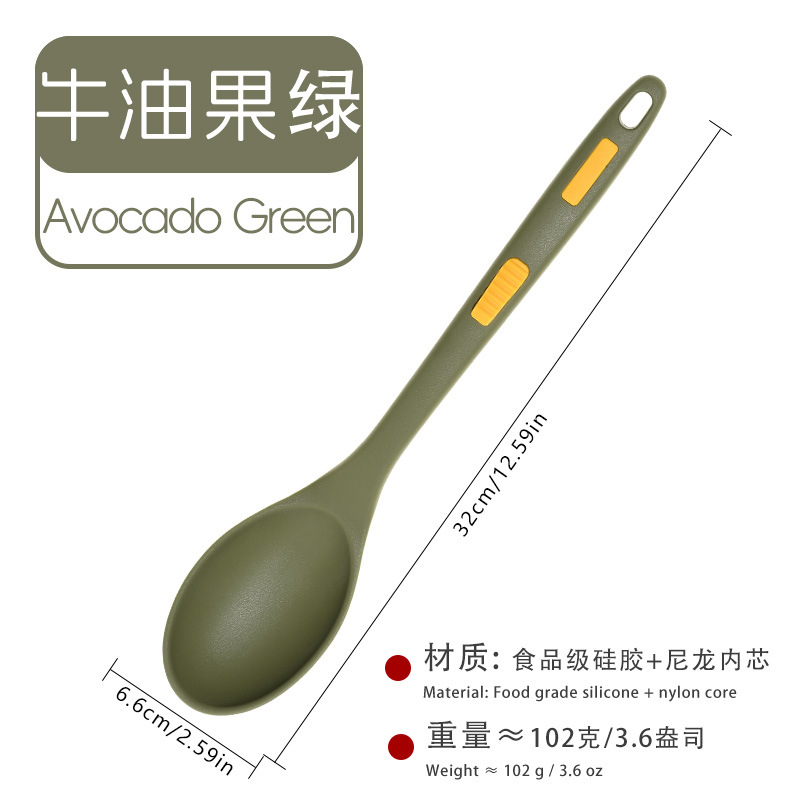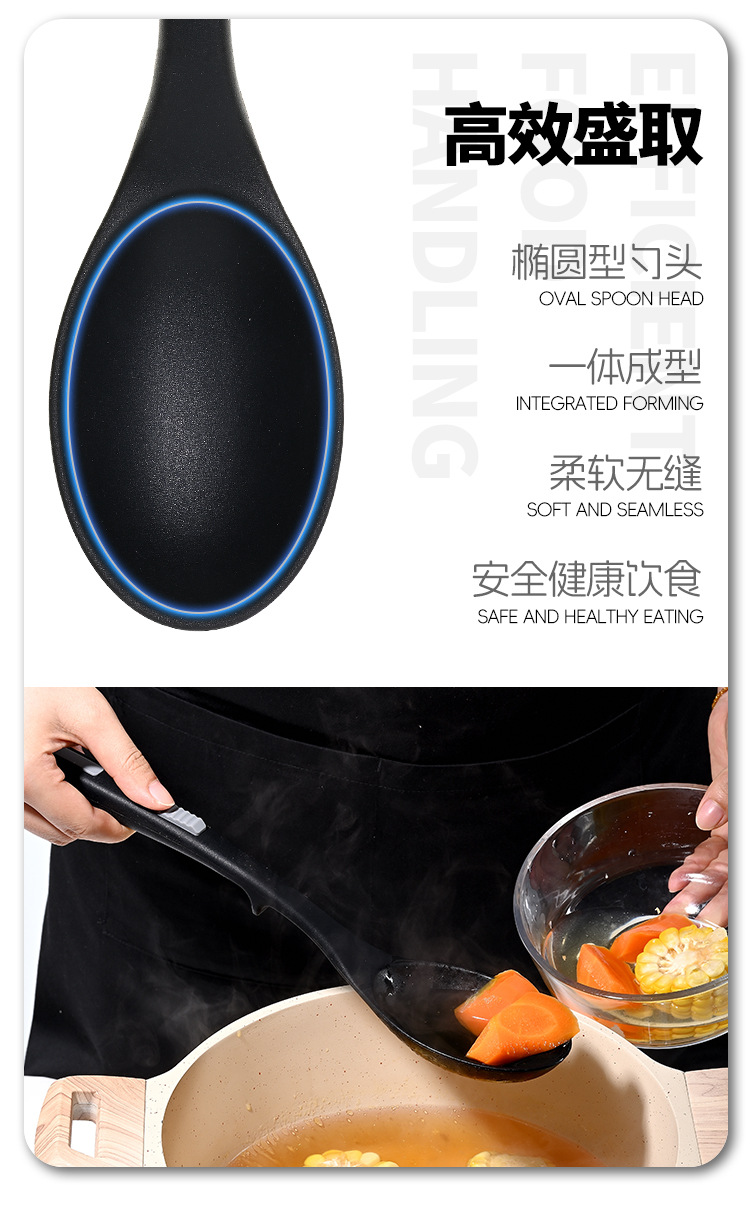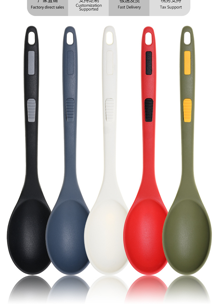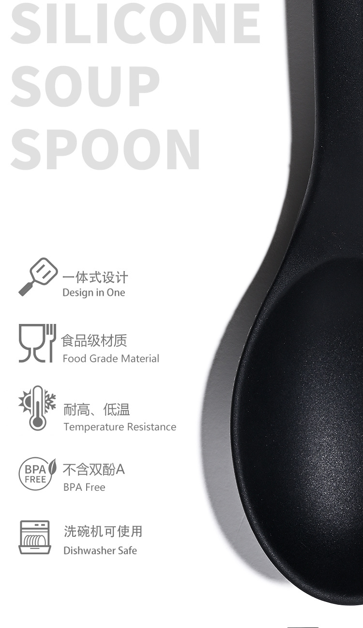 식품 등급 실리콘 스푼 통합 고온 저항하는 긴 손잡이 수프 스푼 유럽 스타일 주방 요리 도구 가정용 미끄럼 방지 스푼