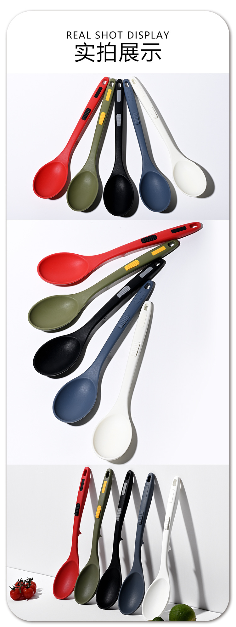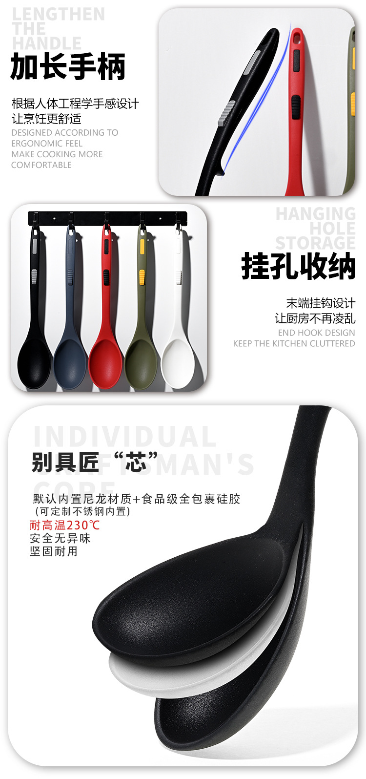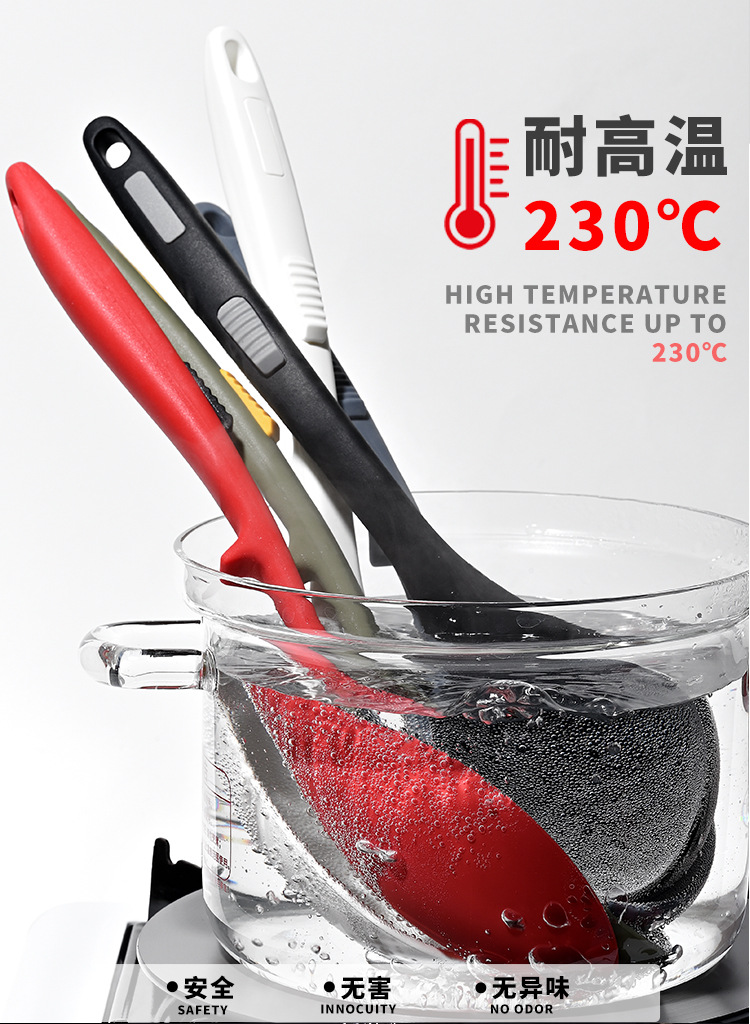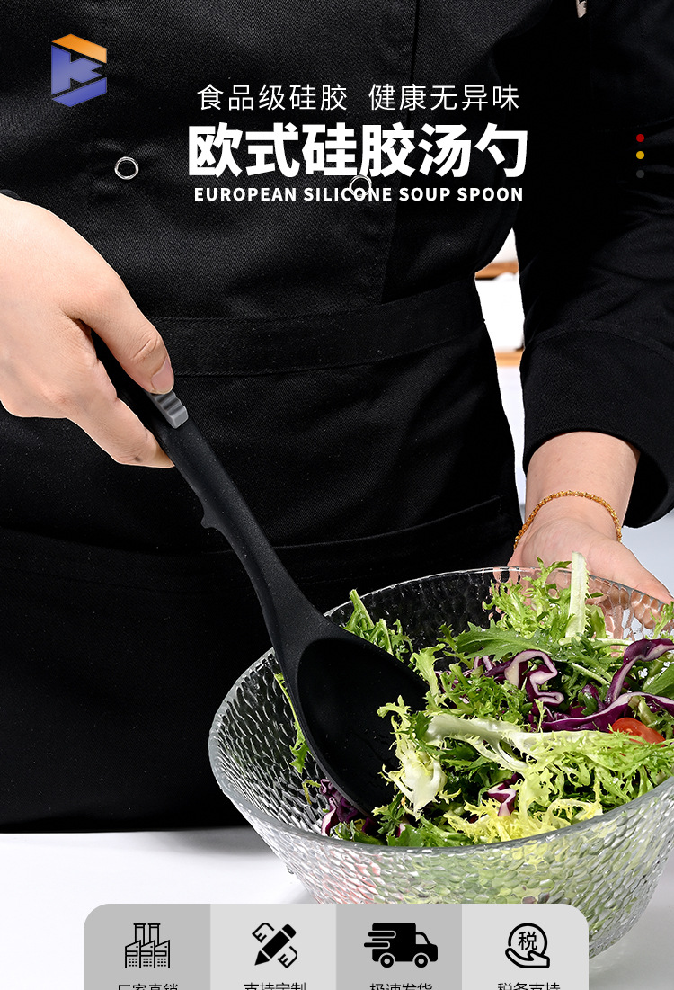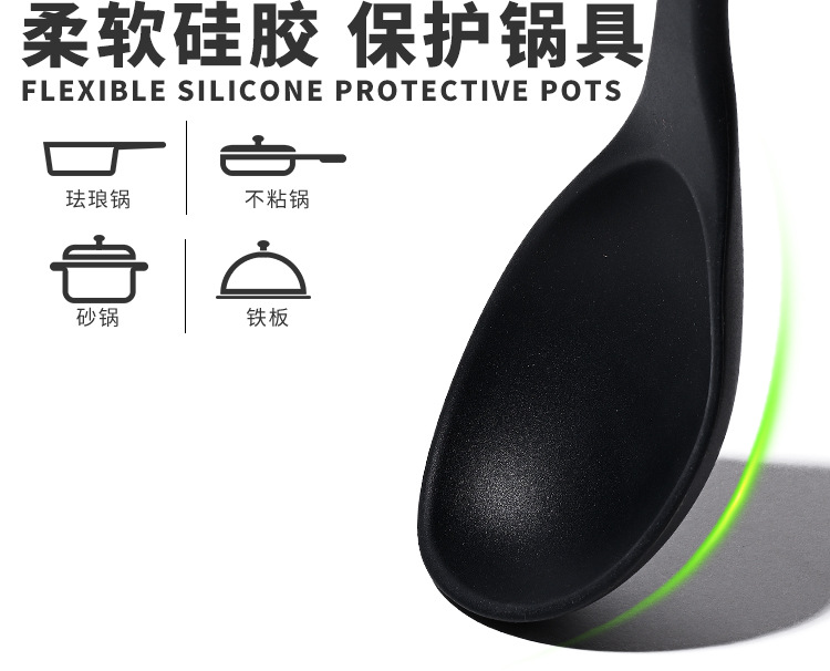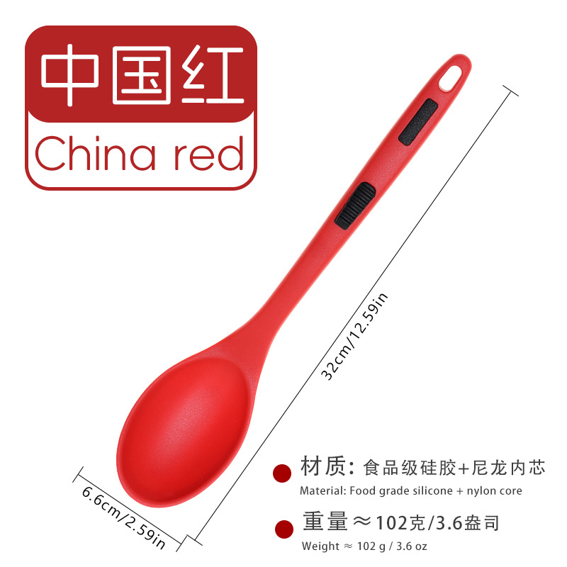 식품 등급 실리콘 스푼 통합 고온 저항하는 긴 손잡이 수프 스푼 유럽 스타일 주방 요리 도구 가정용 미끄럼 방지 스푼