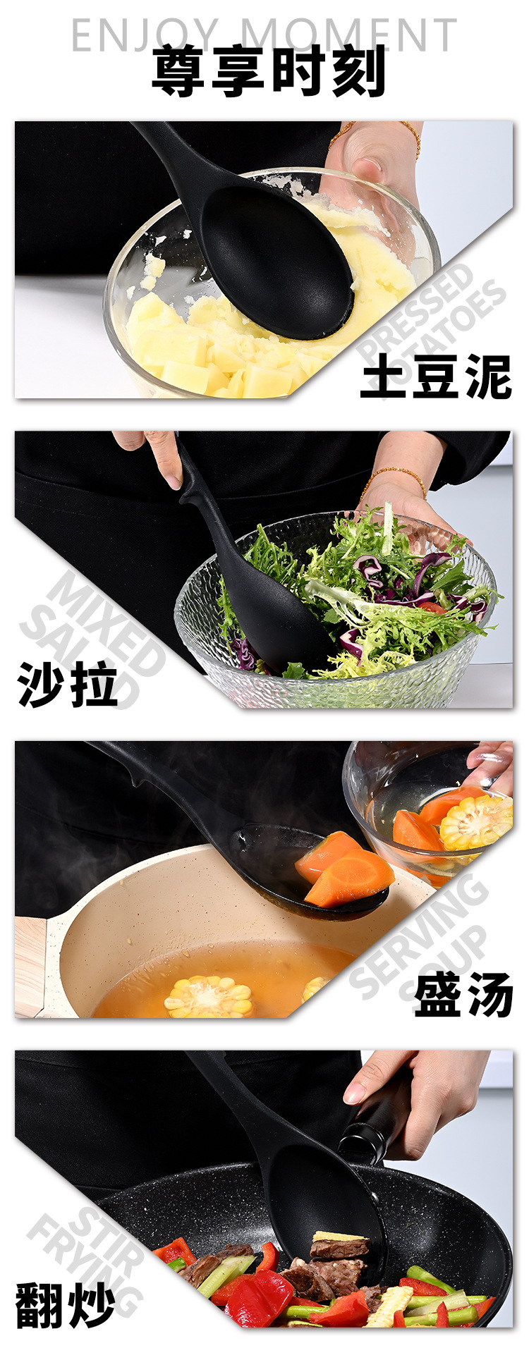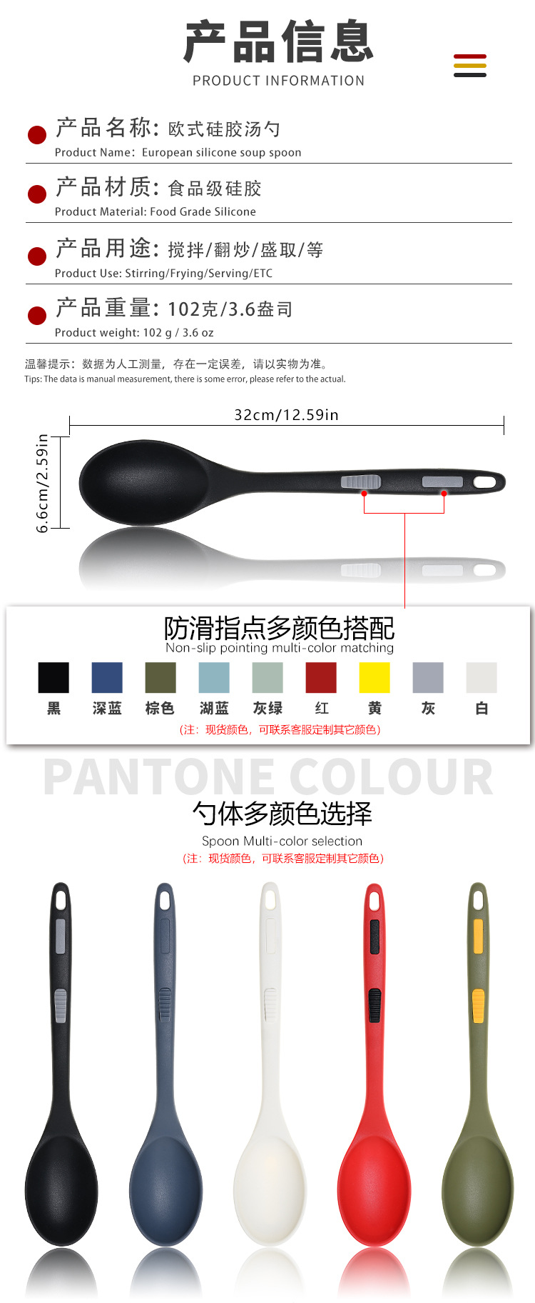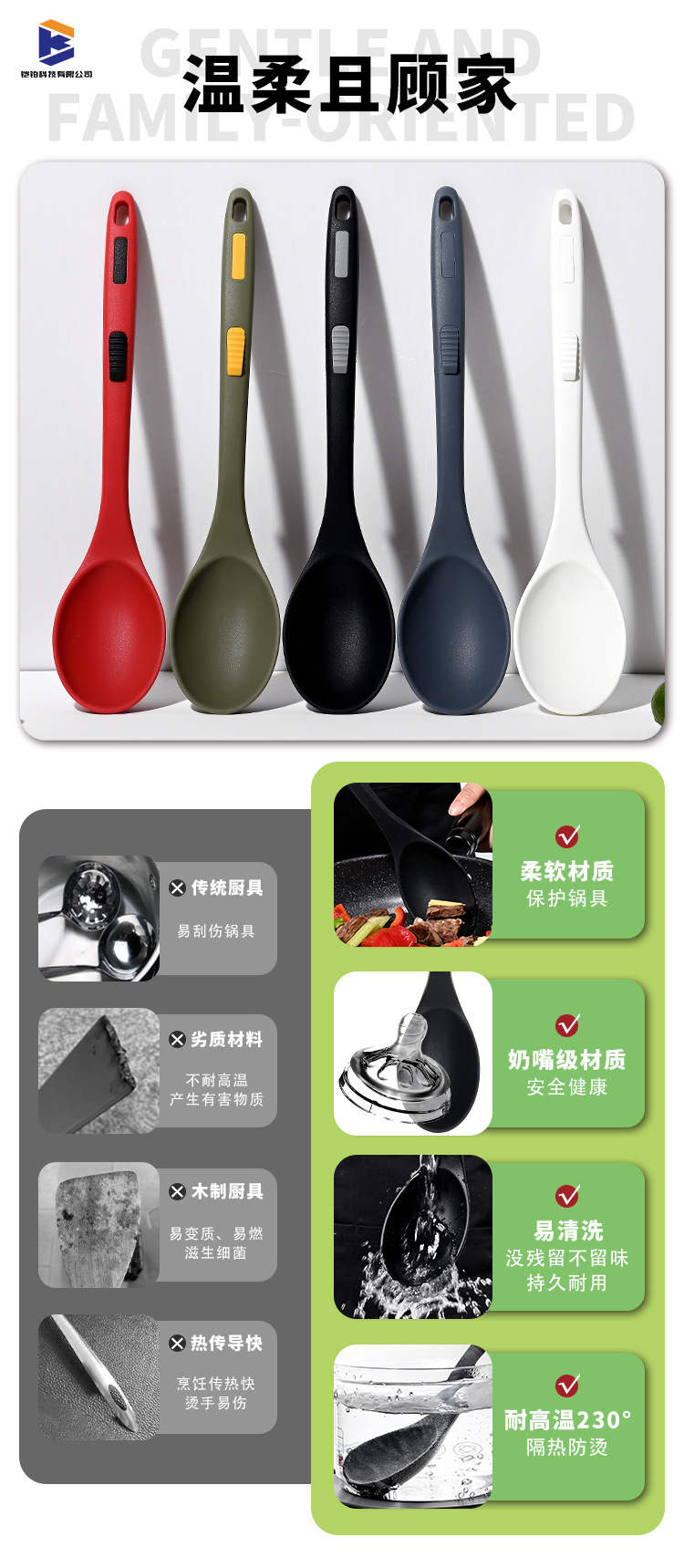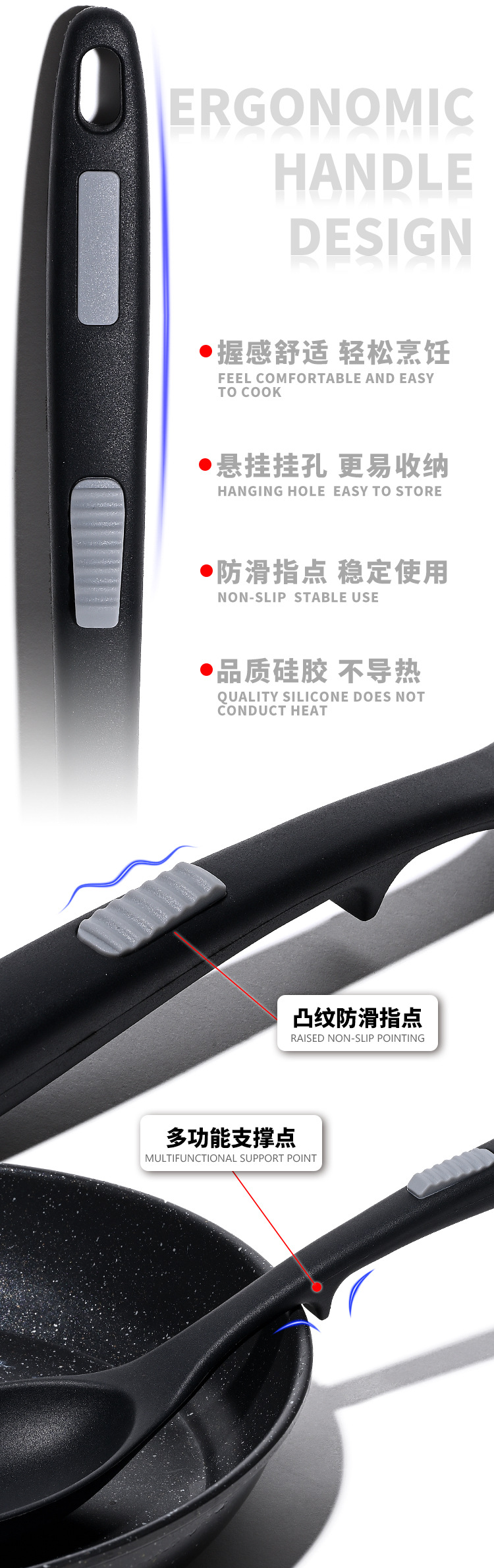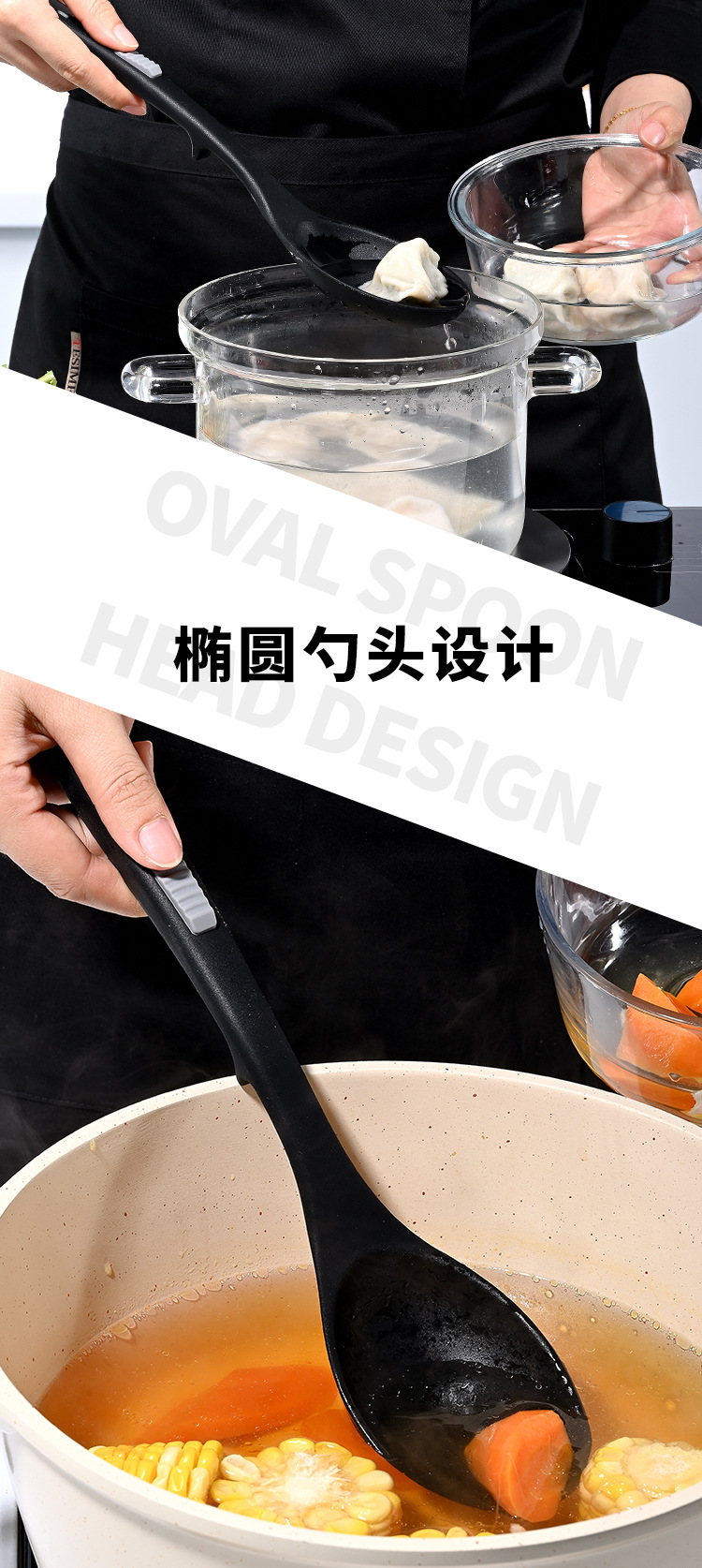 식품 등급 실리콘 스푼 통합 고온 저항하는 긴 손잡이 수프 스푼 유럽 스타일 주방 요리 도구 가정용 미끄럼 방지 스푼