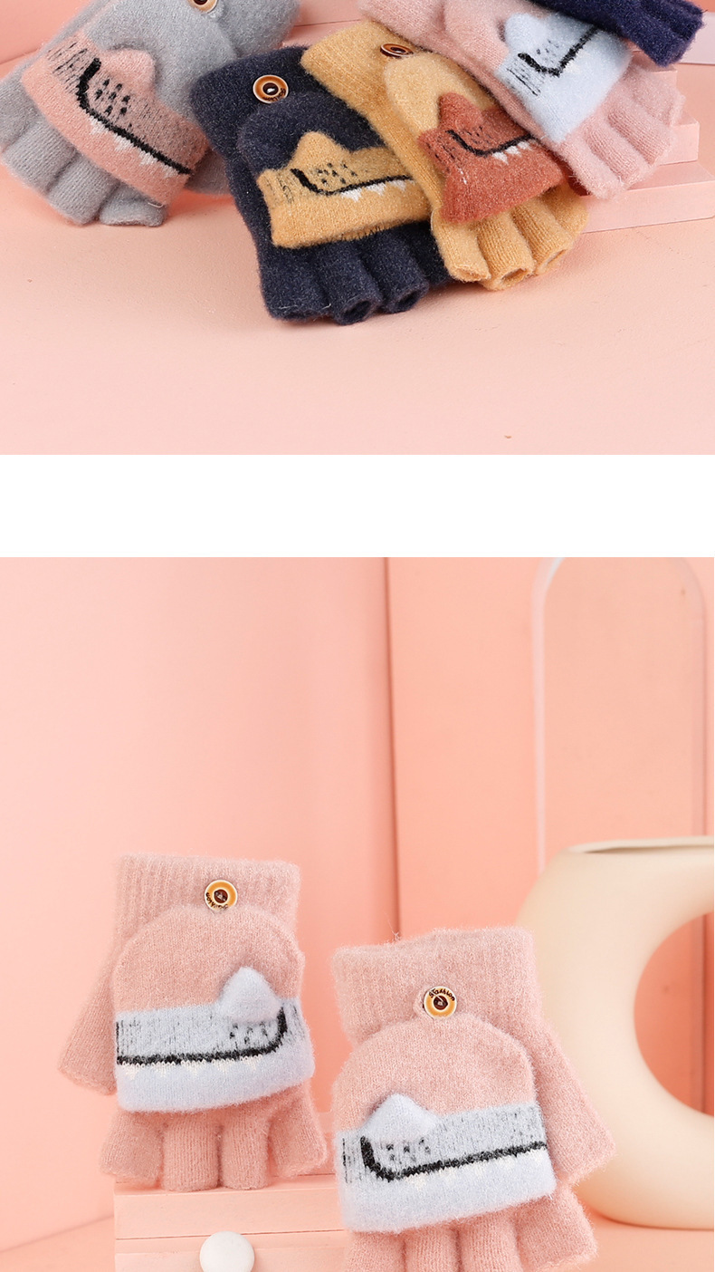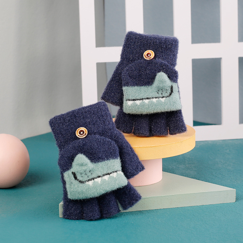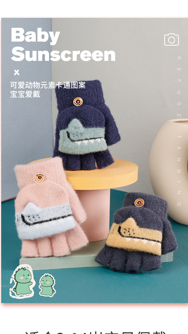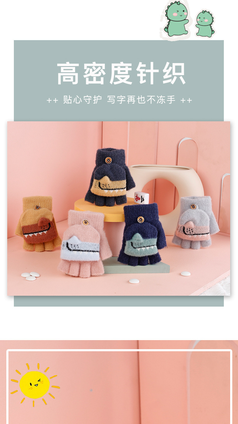 새로운 어린이 장갑 겨울 따뜻한 감기 방지 기모 반 손가락 뒤집기 만화 어린이 밍크 벨벳 초등학생의 글쓰기