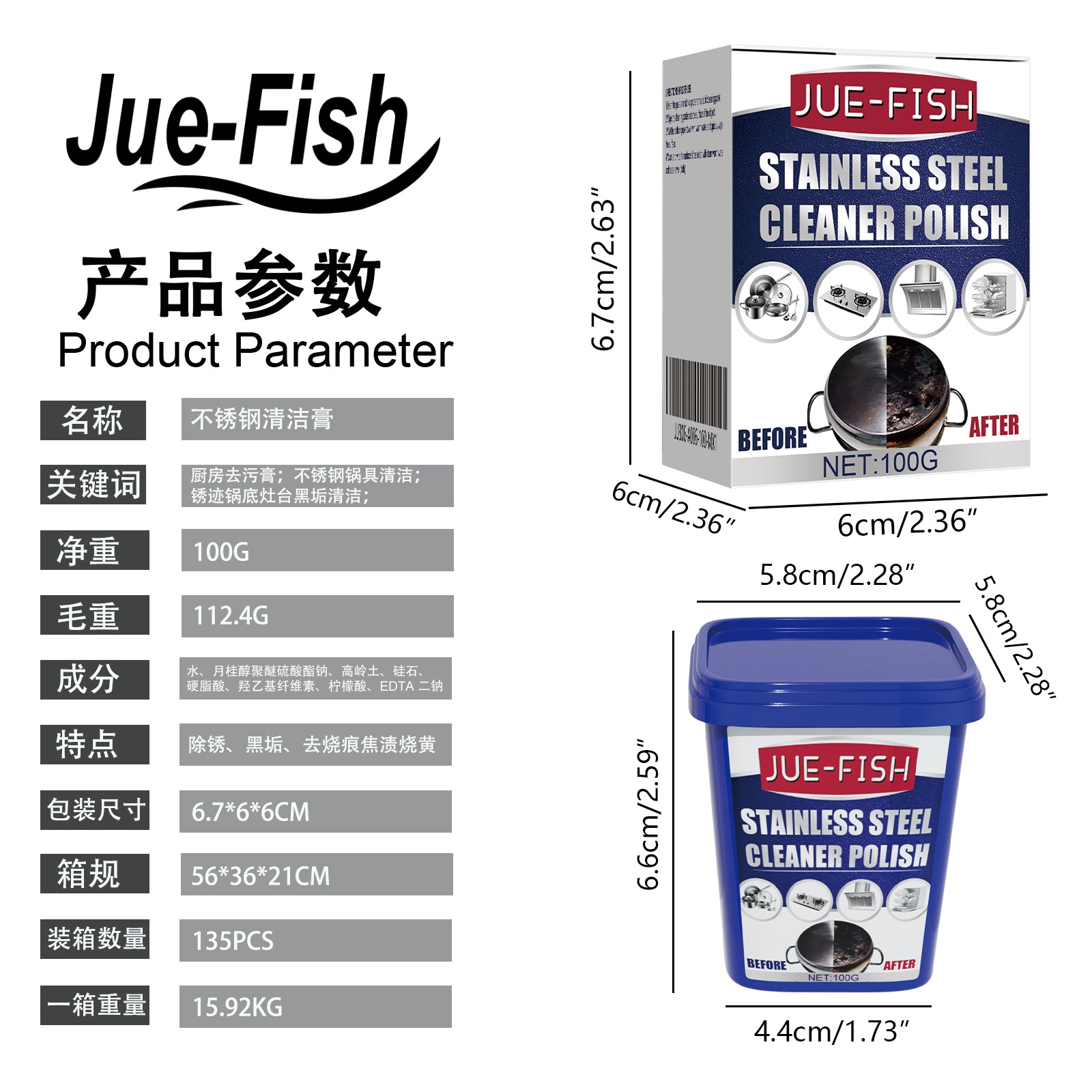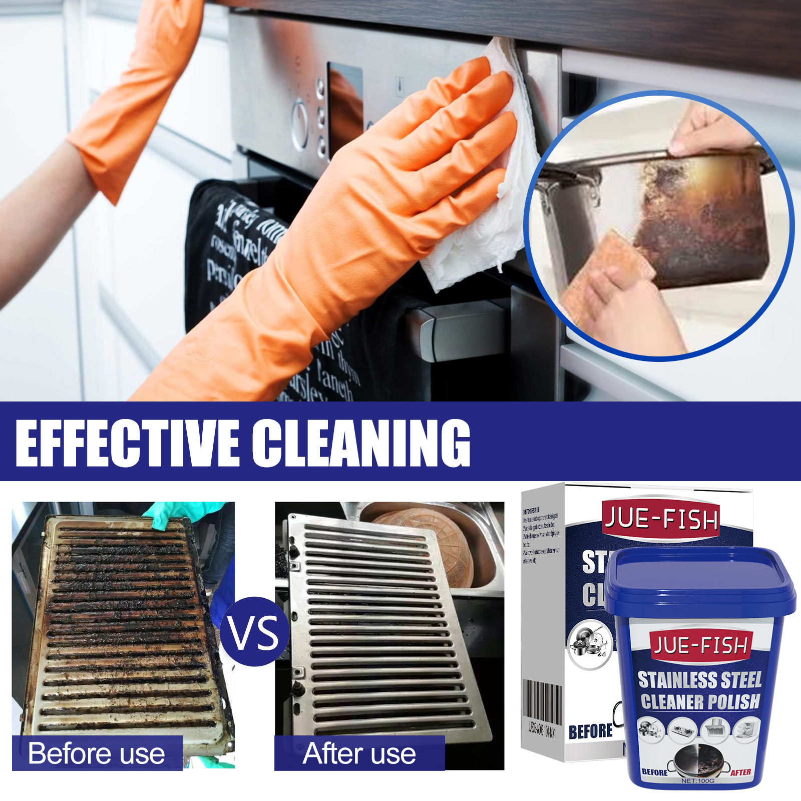 Jue 생선 스테인레스 스틸 청소 크림 스토브 세제 크림 냄비 바닥 냄비 녹 검은 먼지 클리너
