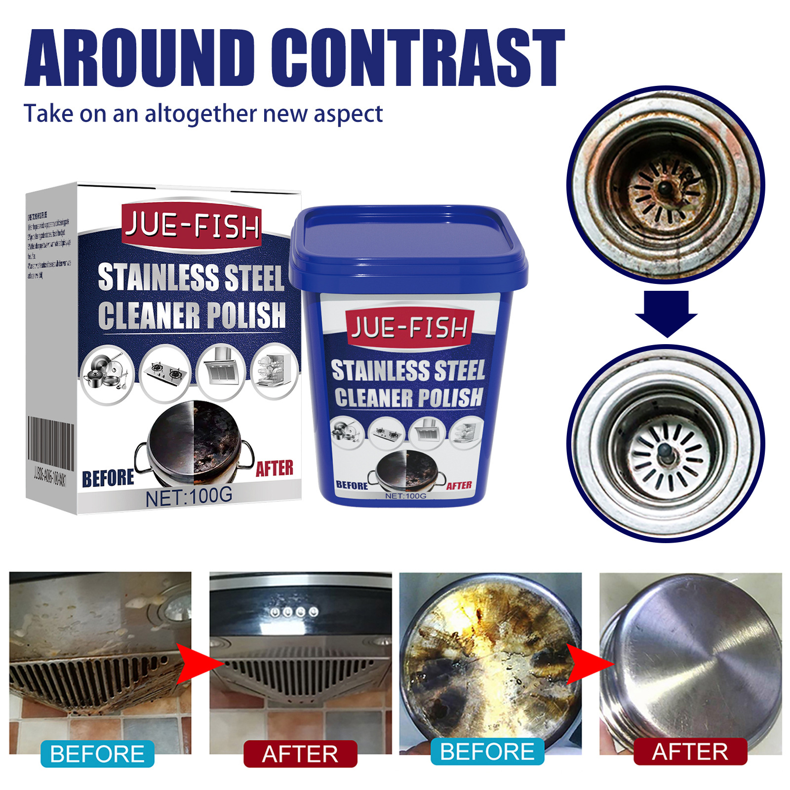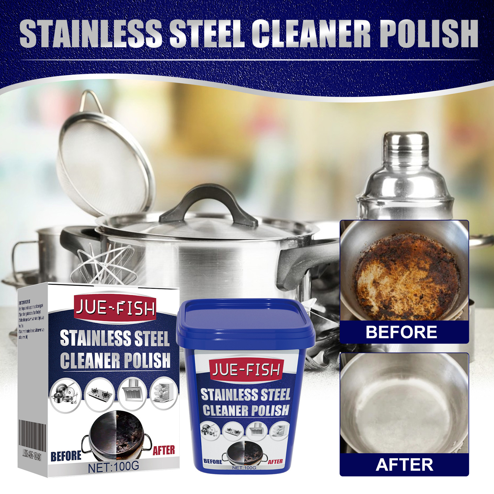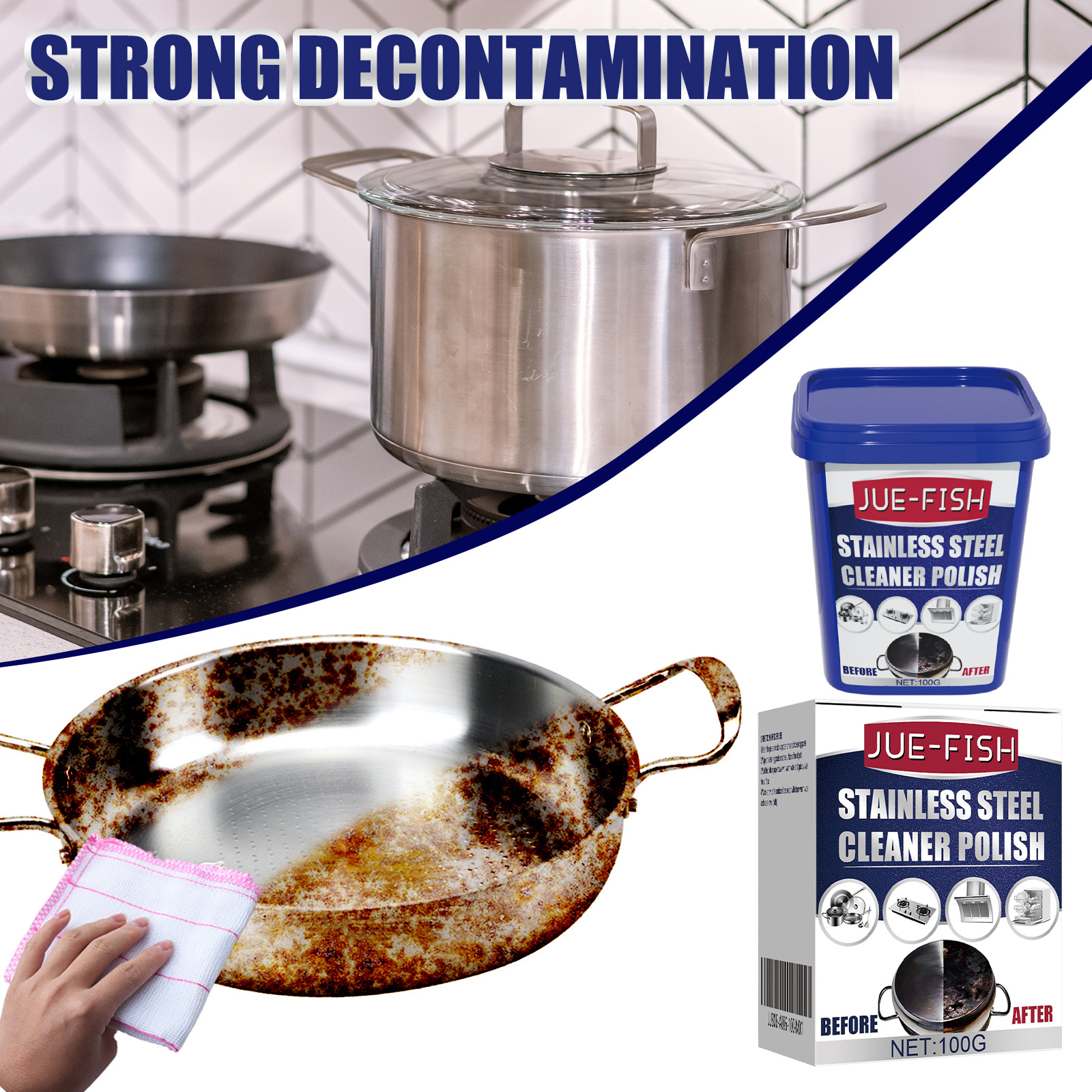 Jue 생선 스테인레스 스틸 청소 크림 스토브 세제 크림 냄비 바닥 냄비 녹 검은 먼지 클리너스토어 가기