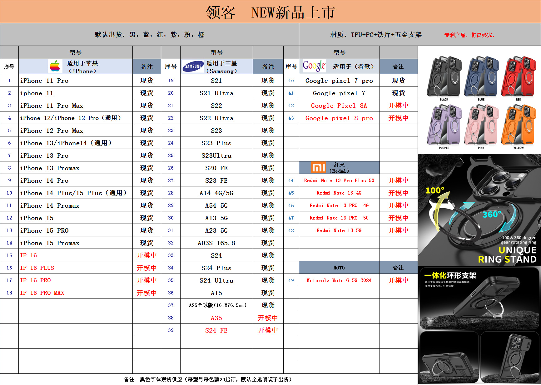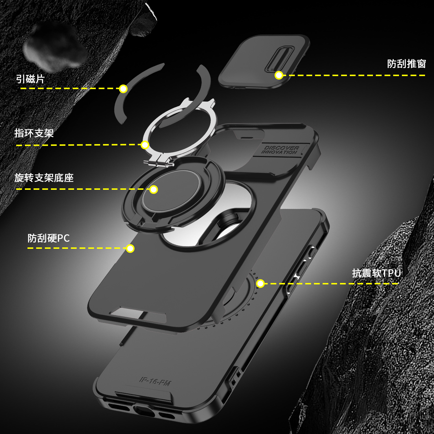 2025 푸시 윈도우 렌클 휴대폰 케이스 아이폰16프로맥스용 링 다기능 애플 보호 케이스 재고 있음