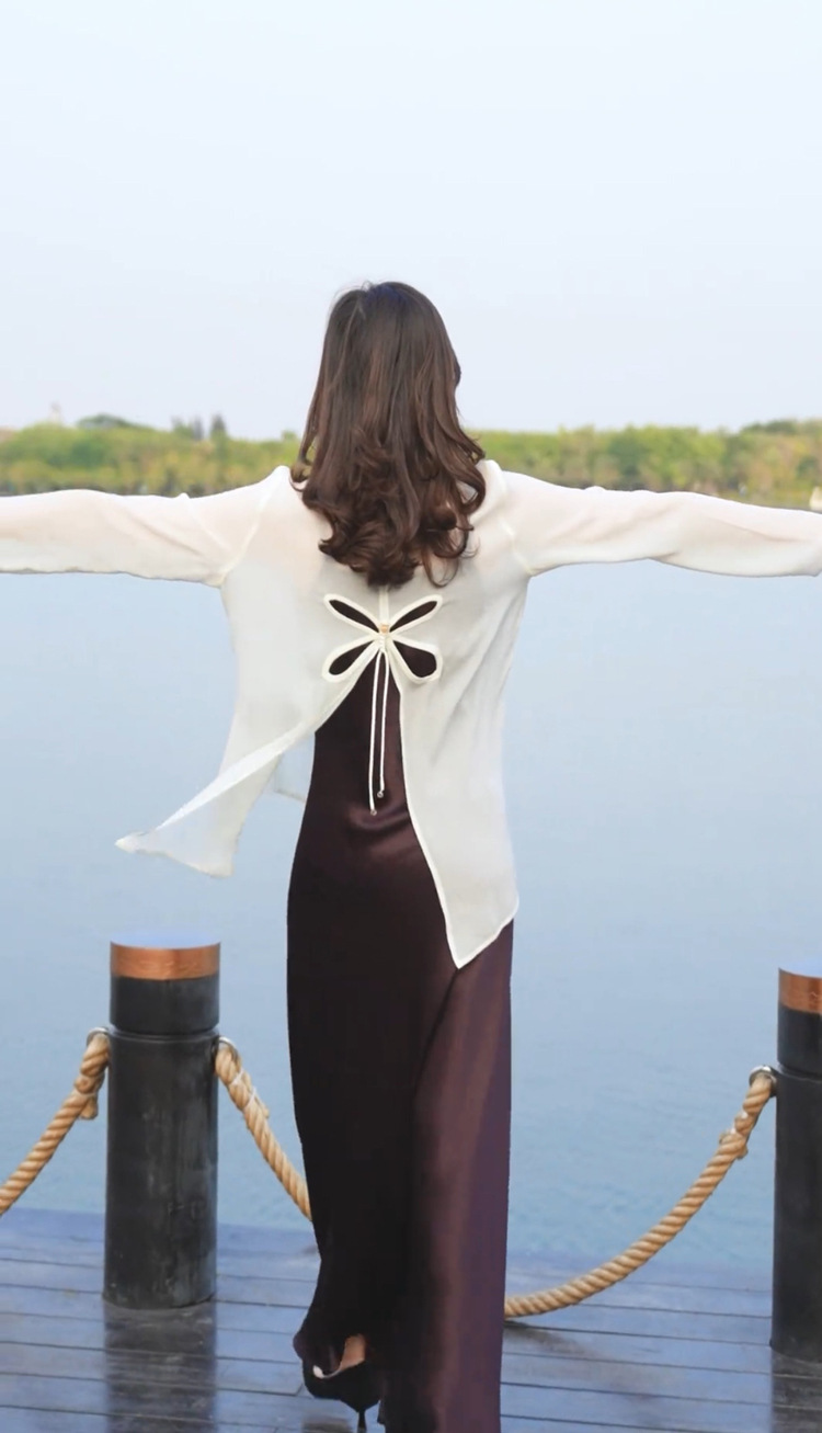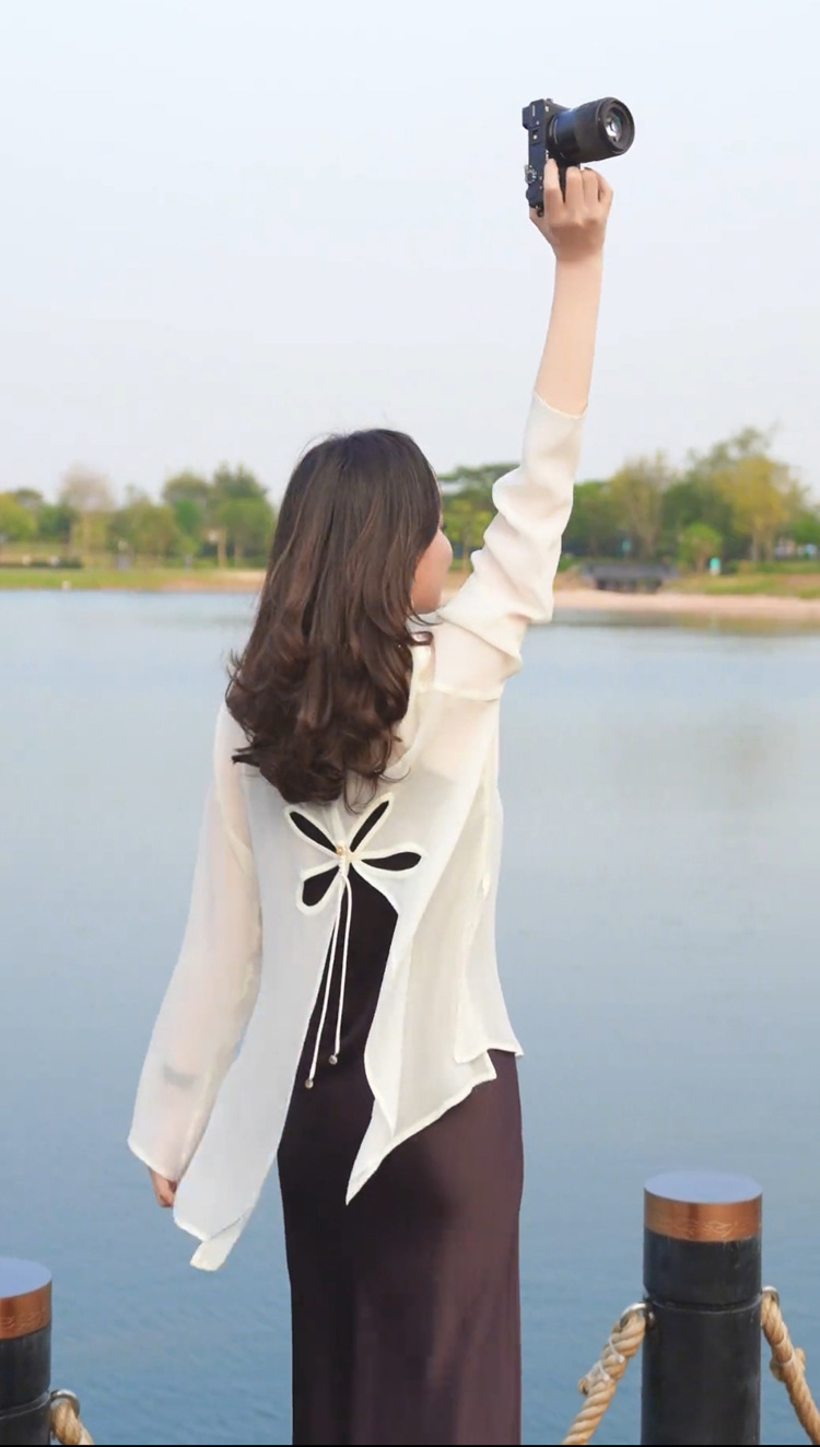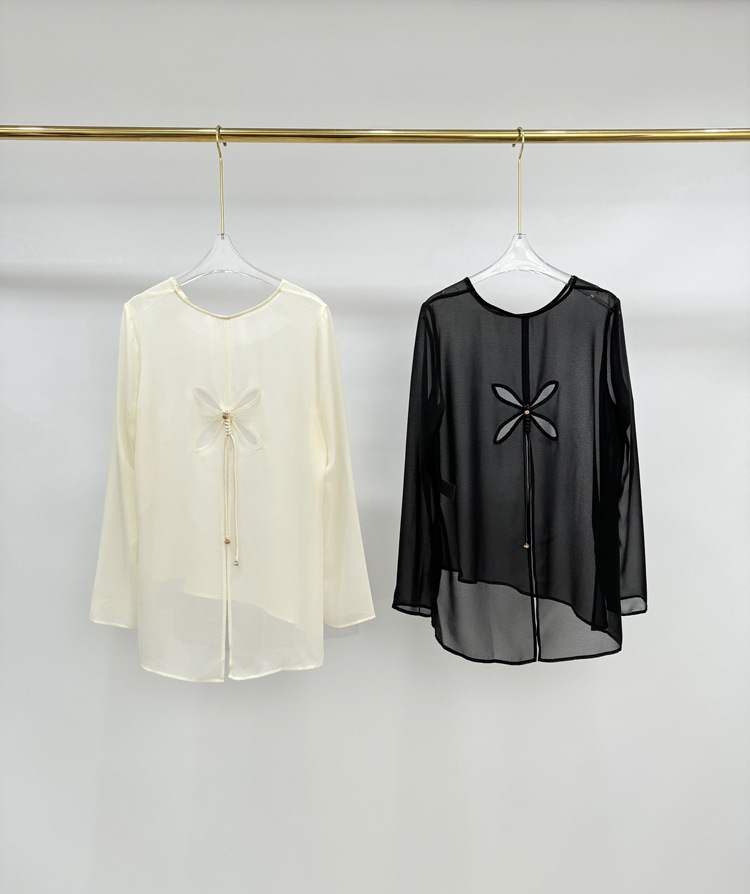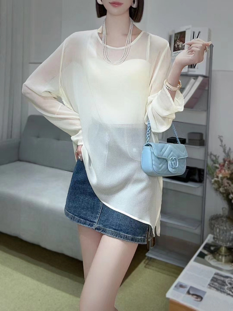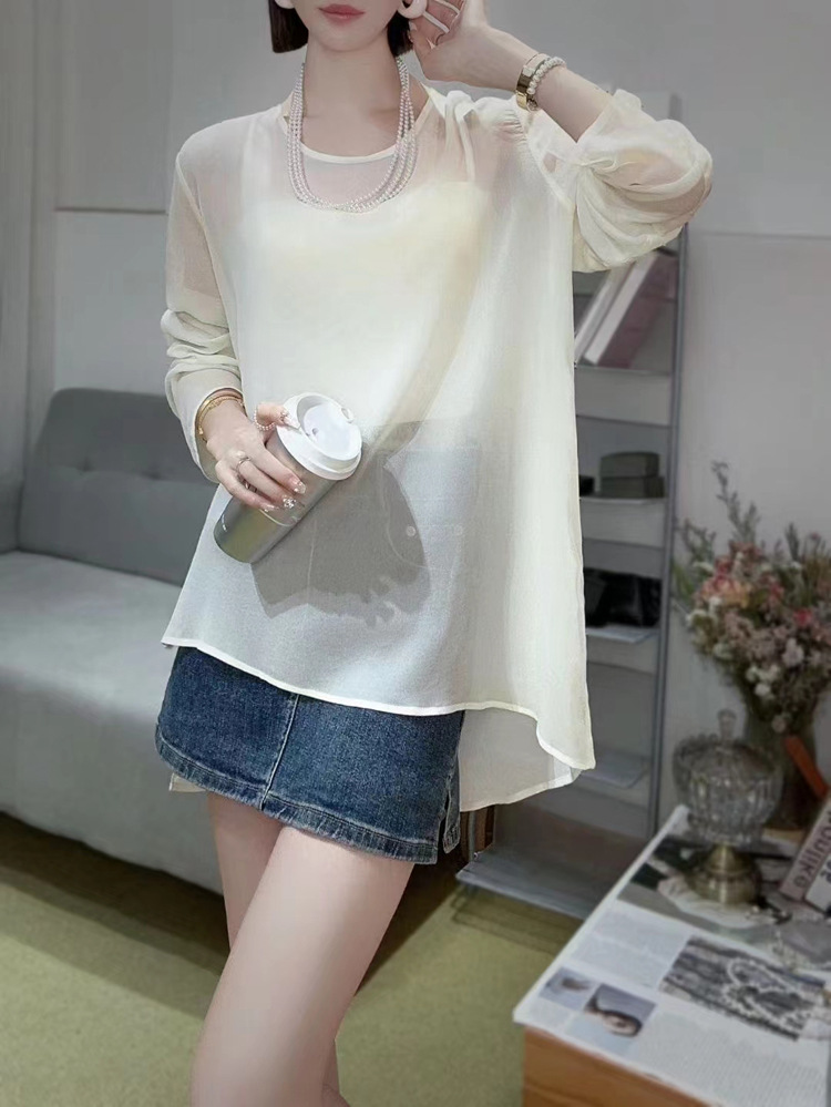 오리지널 디자인 센스 2024 여름 착용 얇은 간단한 원근법 느슨한 올매치 긴소매 쉬폰 선크림 셔츠 섹시한 탑스토어 가기