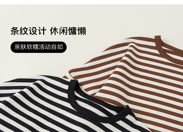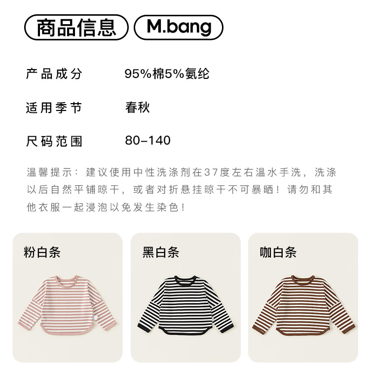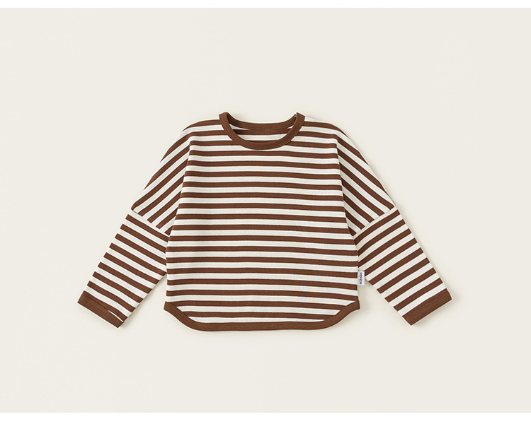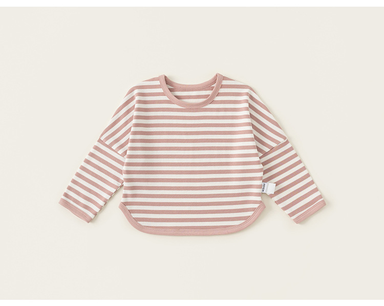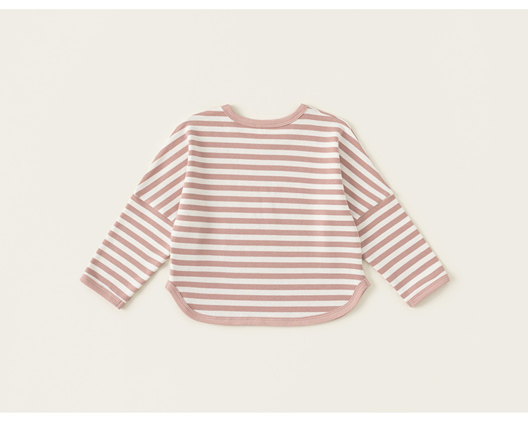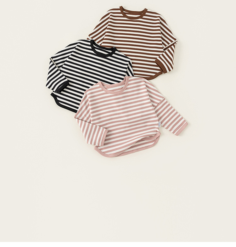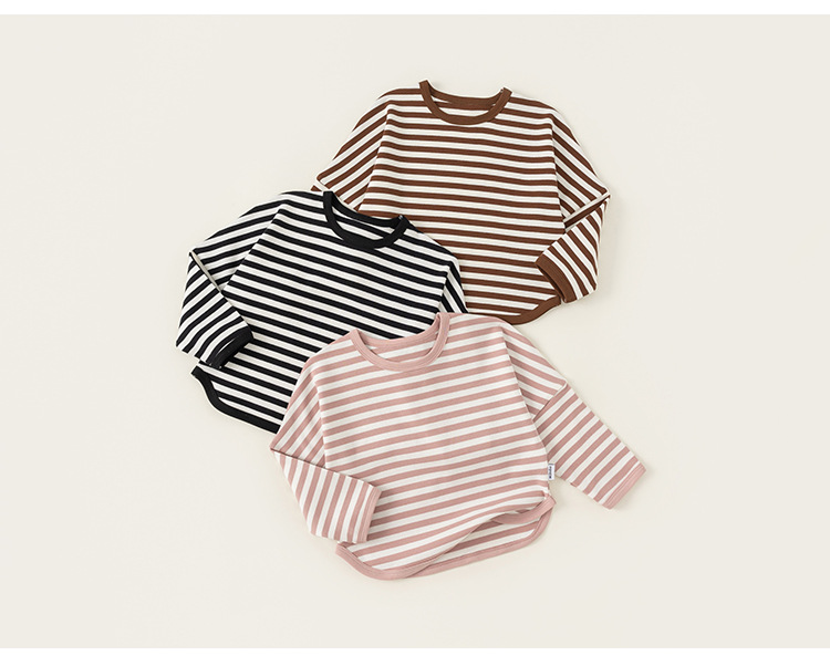 유바오 아동복 어린이 줄무늬 긴팔 티셔츠 소년 드롭 숄더 걸스베이스 셔츠 탑 가을 뉴 QY24045