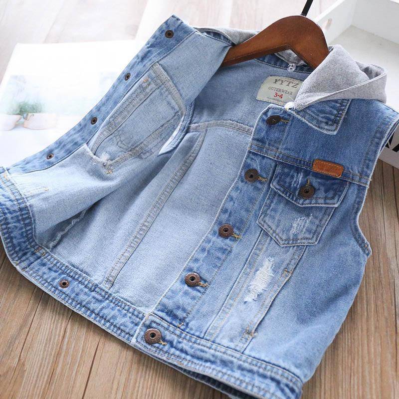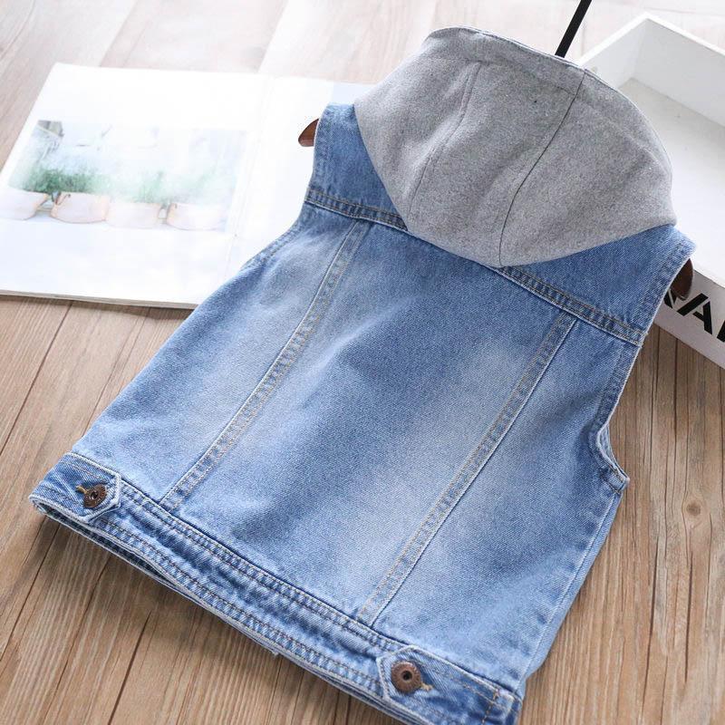 소년의 데님 조끼 2024 새로운 세련된 아기 봄 재킷 어린이 조끼 어깨 허리 코트 유행 겉옷 패션스토어 가기