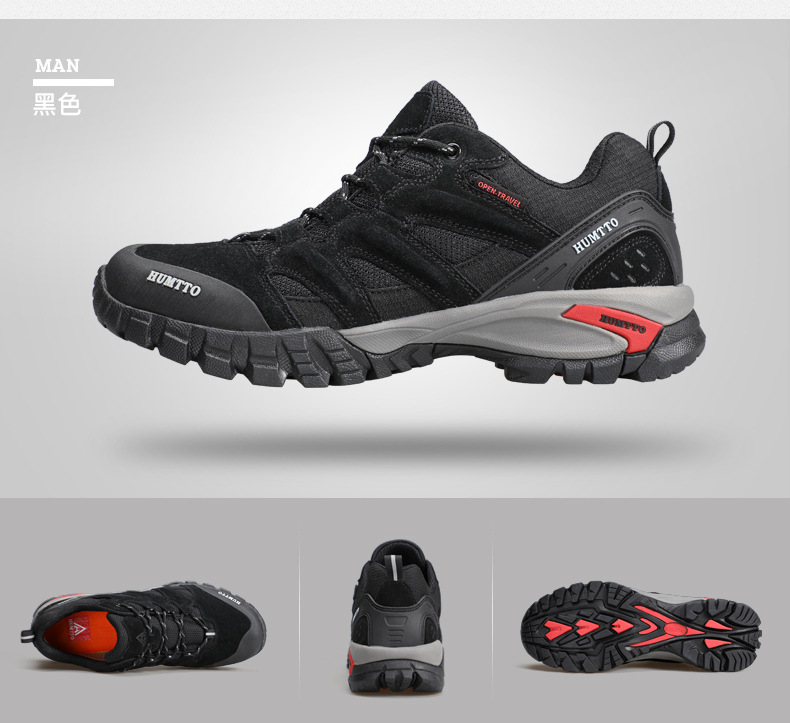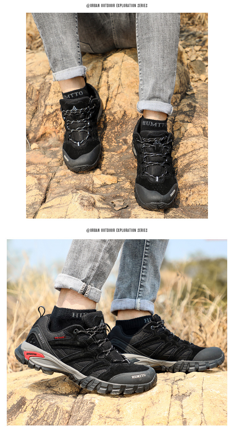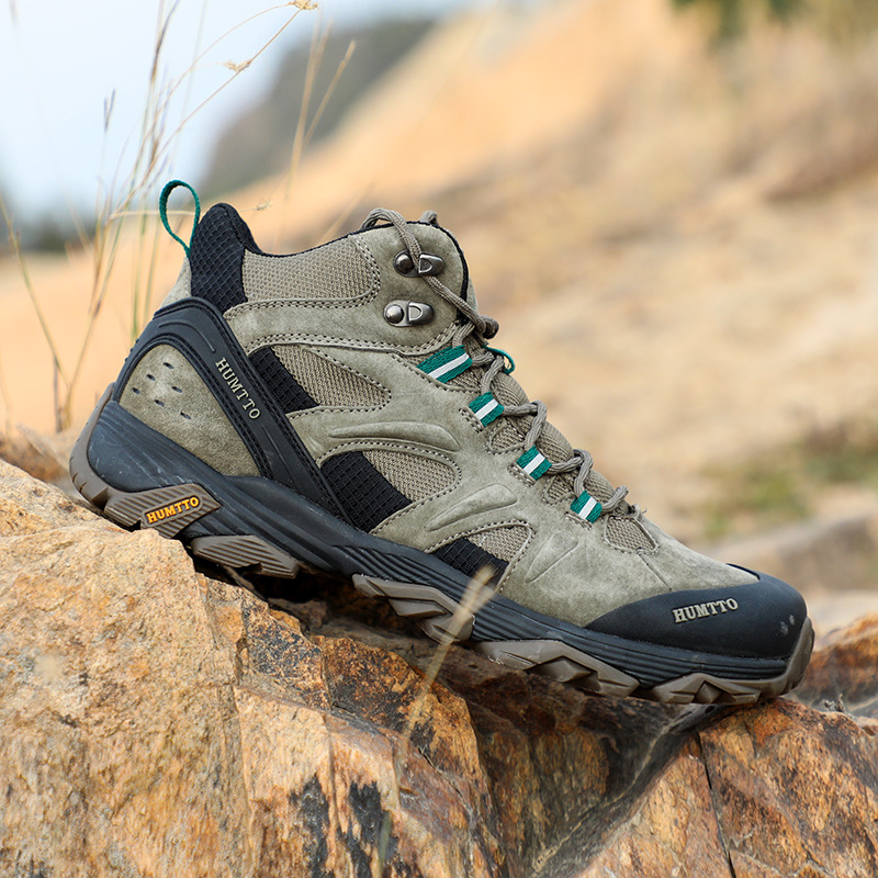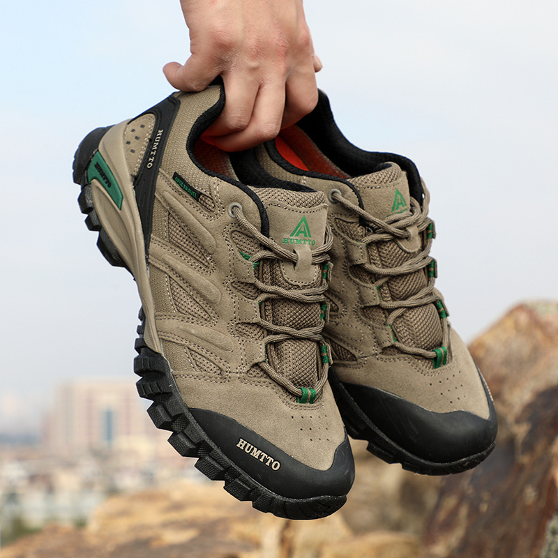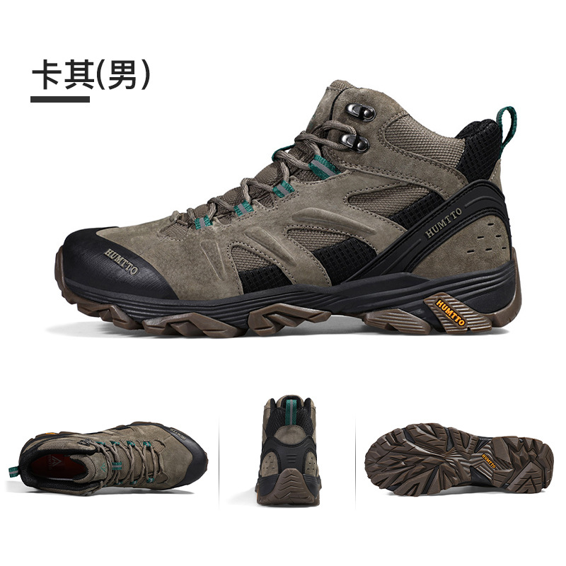 Shando 야외 신발 남성용 하이킹 신발 경량 통기성 충격 쿠션 코가죽 하이킹 신발 방수 미끄럼 방지 남성용 등산 신발