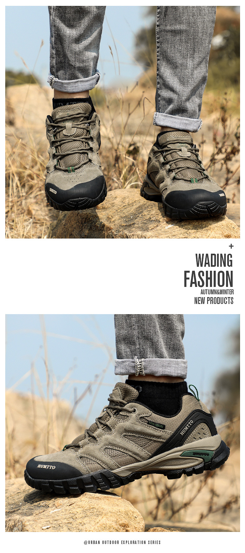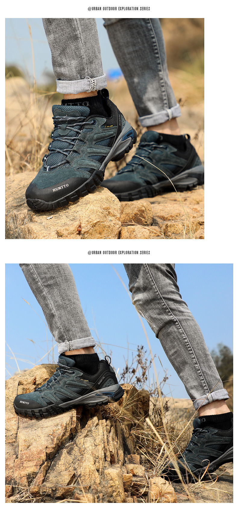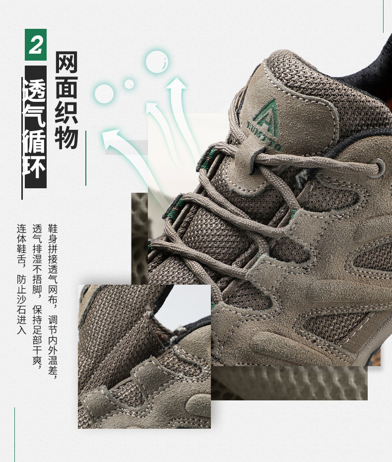 Shando 야외 신발 남성용 하이킹 신발 경량 통기성 충격 쿠션 코가죽 하이킹 신발 방수 미끄럼 방지 남성용 등산 신발