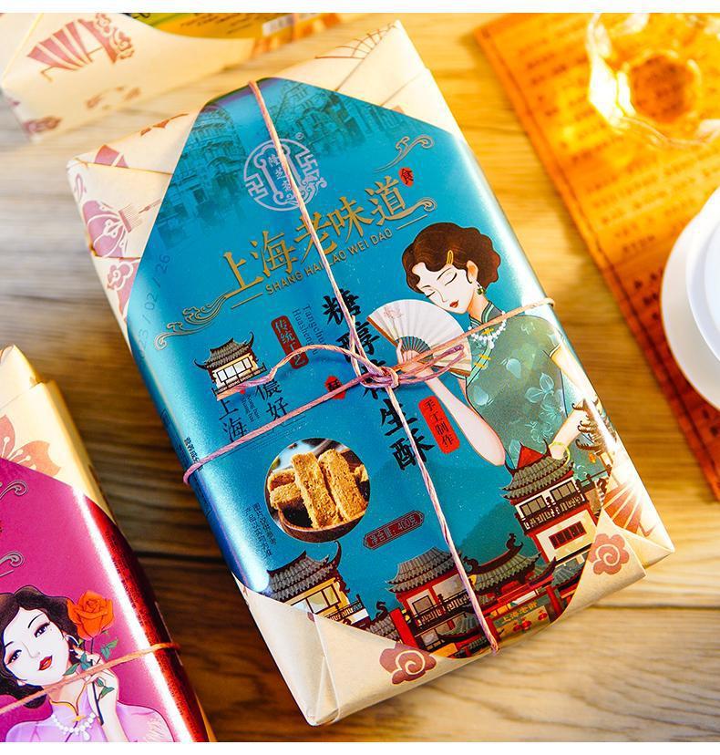 Longzhi Zhai 상하이 특별 제품 오래 된 맛 땅콩 크리스프 선물 상자 전통 수제 과자 글꼴 크기 간식 디저트스토어 가기