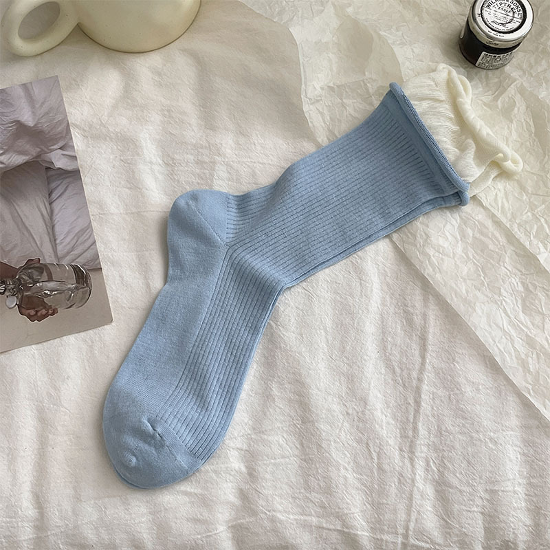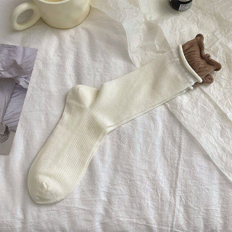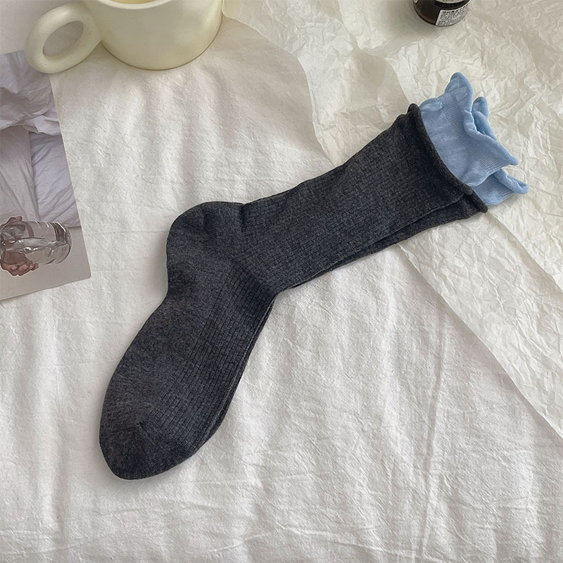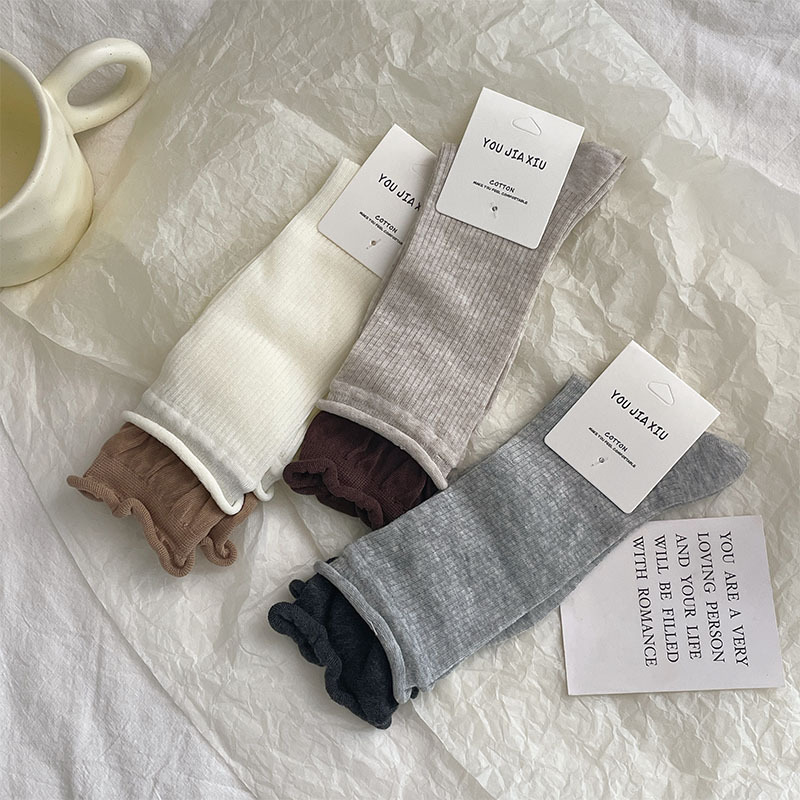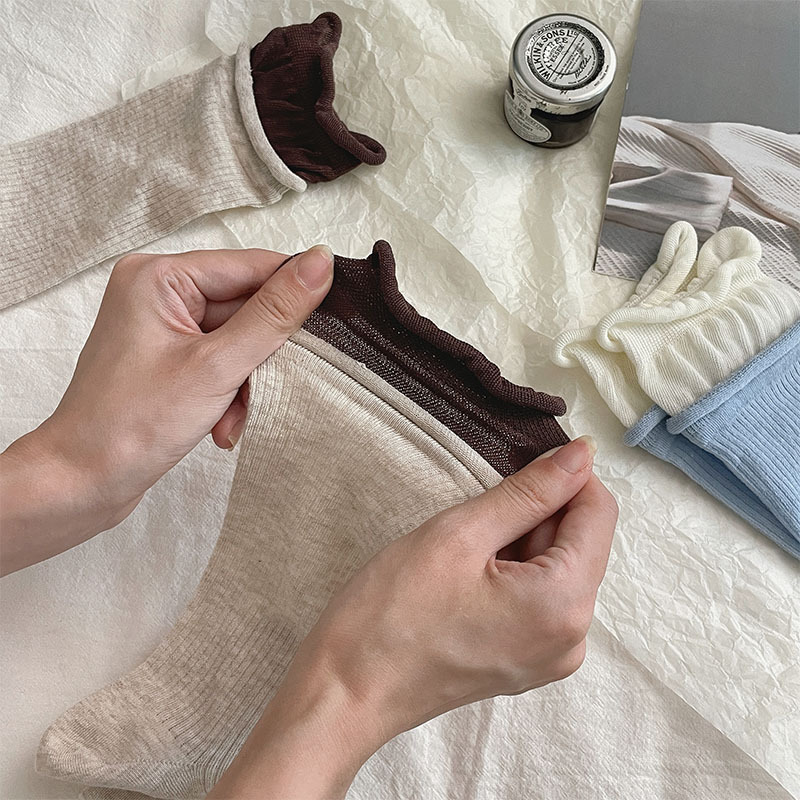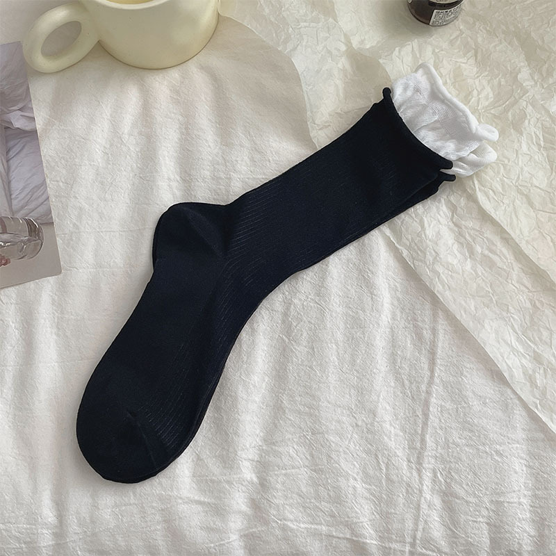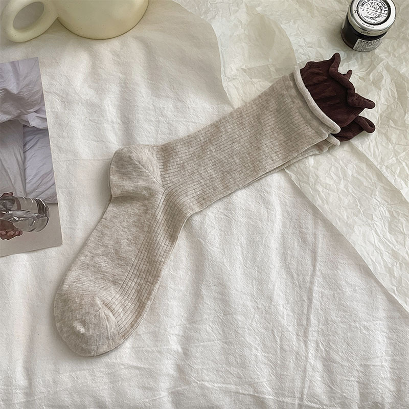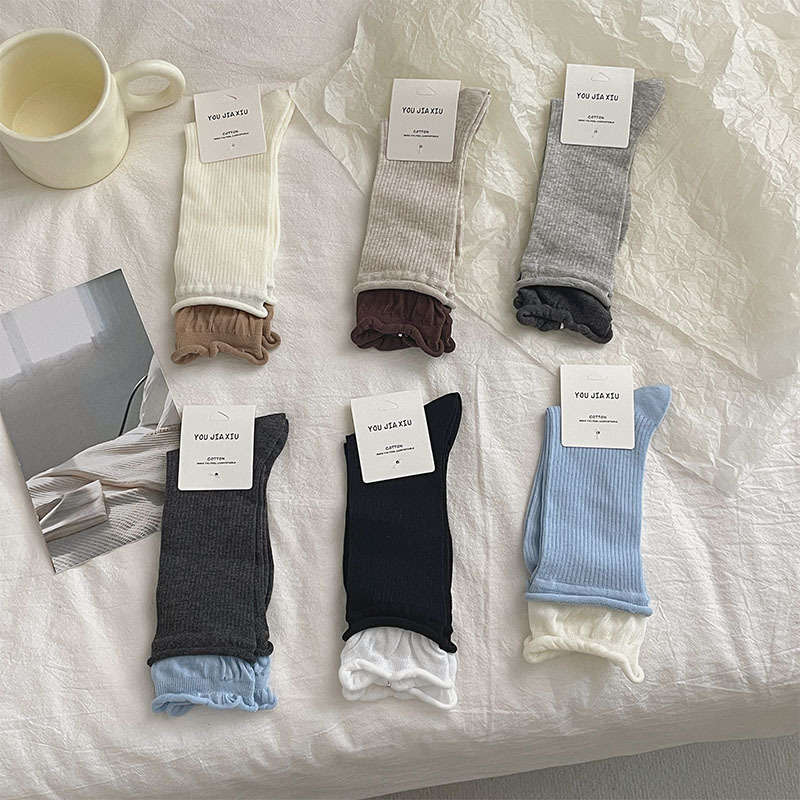 중간 길이의 스타킹 여성의 독특한 컬러 매칭 더블 라커우 컬 엣지 양말 인 한국 스타일 유행 봄과 여름 얇은 더미 스타킹스토어 가기