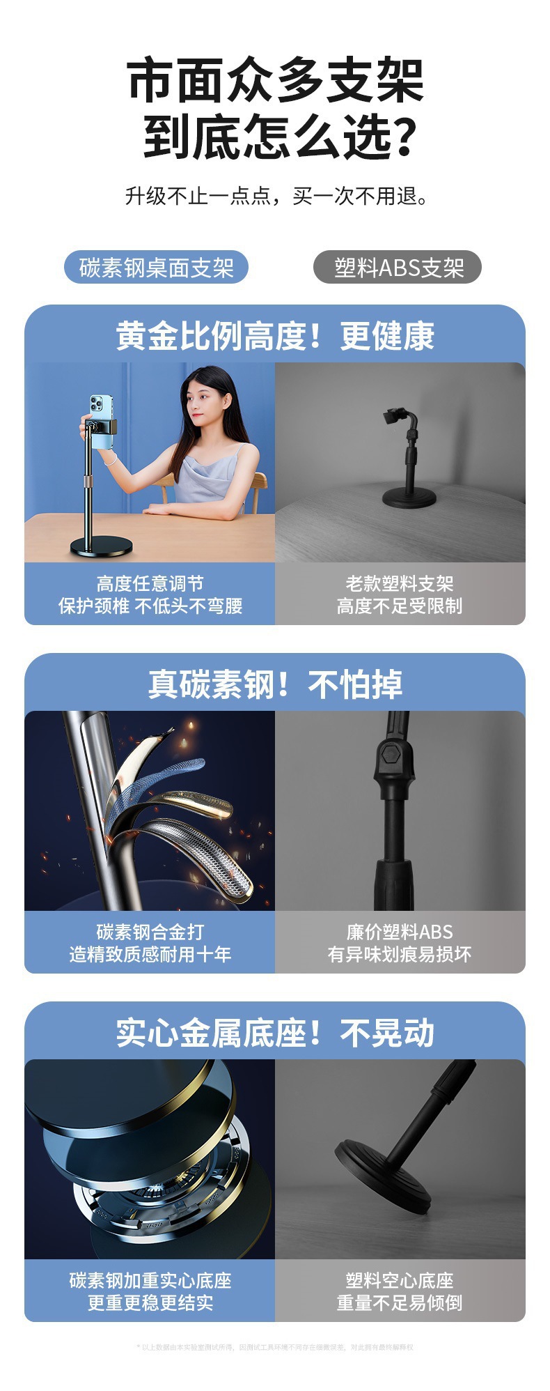 휴대 전화 브래킷 데스크탑 라이브 방송 전용 금속 촬영 선반 게으른 보편적 인 텔레스코픽 촬영 비디오 셀카 사진