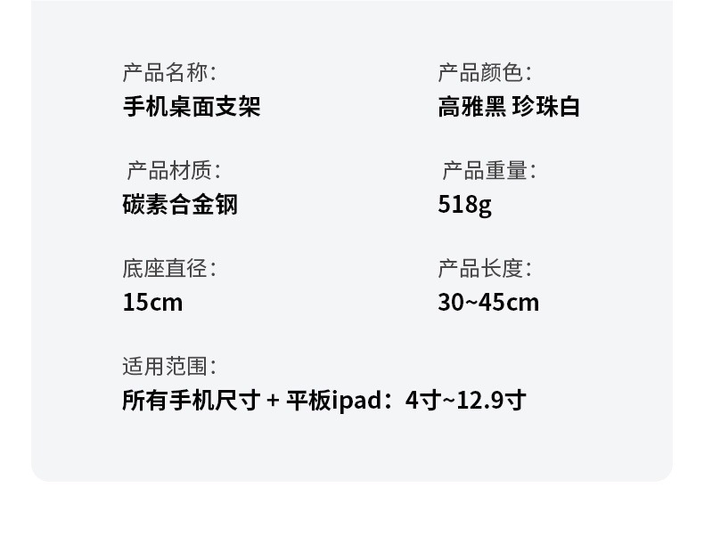 • 블랙 25cm, 휴대 전화 회전 및 오버 헤드 촬영 가능