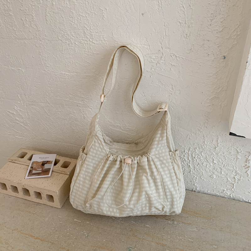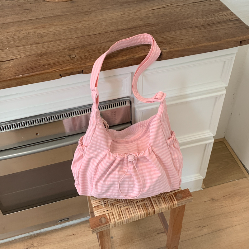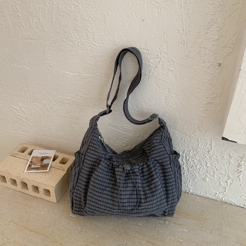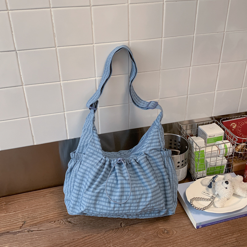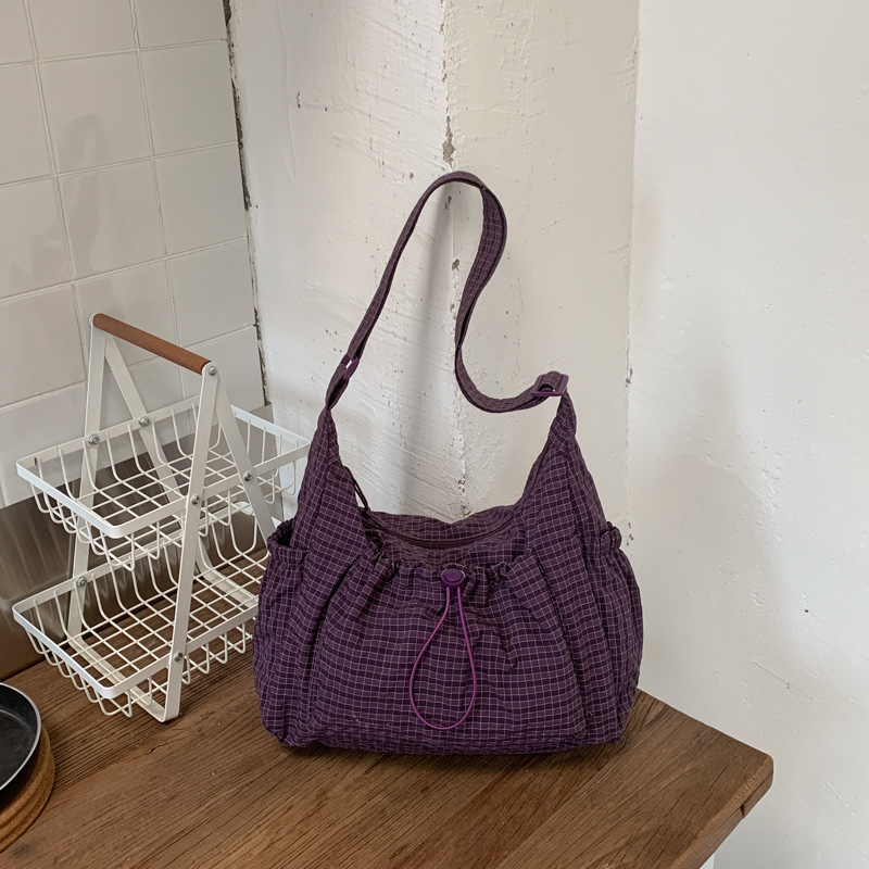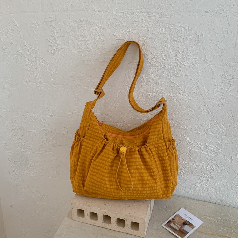 한국 스타일 유행 나일론 크로스 바디 백 2024 새로운 캐주얼 올 매치 주름 어깨 가방 대용량 솔리드 컬러 캔버스 가방스토어 가기