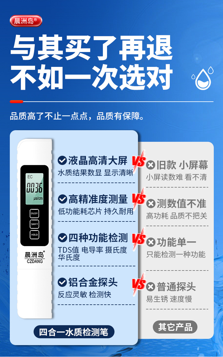 국경 간 다기능 4 대 1 tds 펜 ec 전도성 검출기 고정밀 가정용 tds 수질 감지 펜
