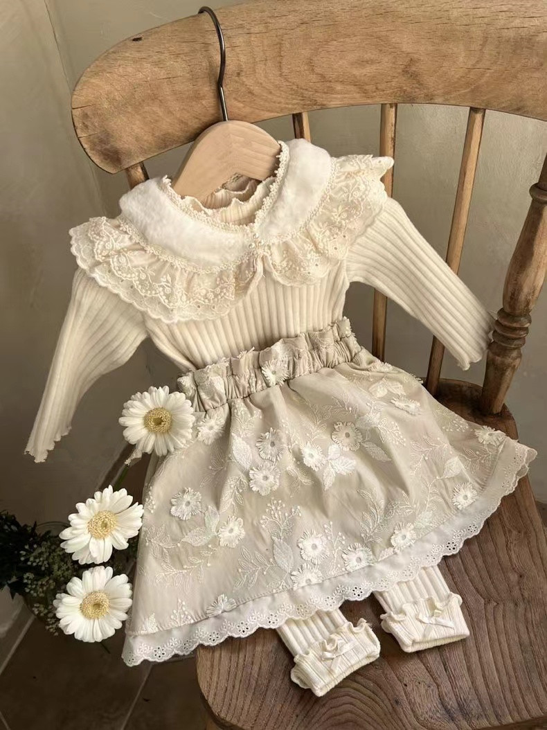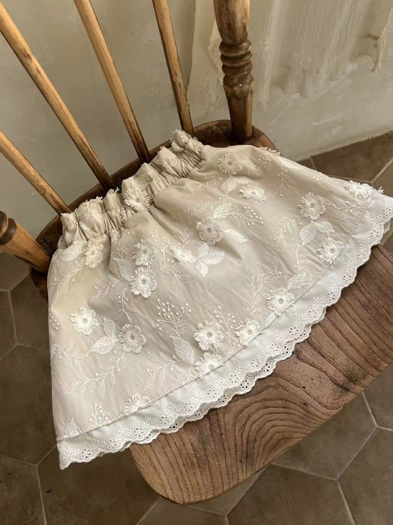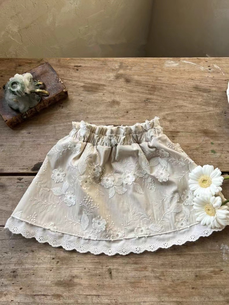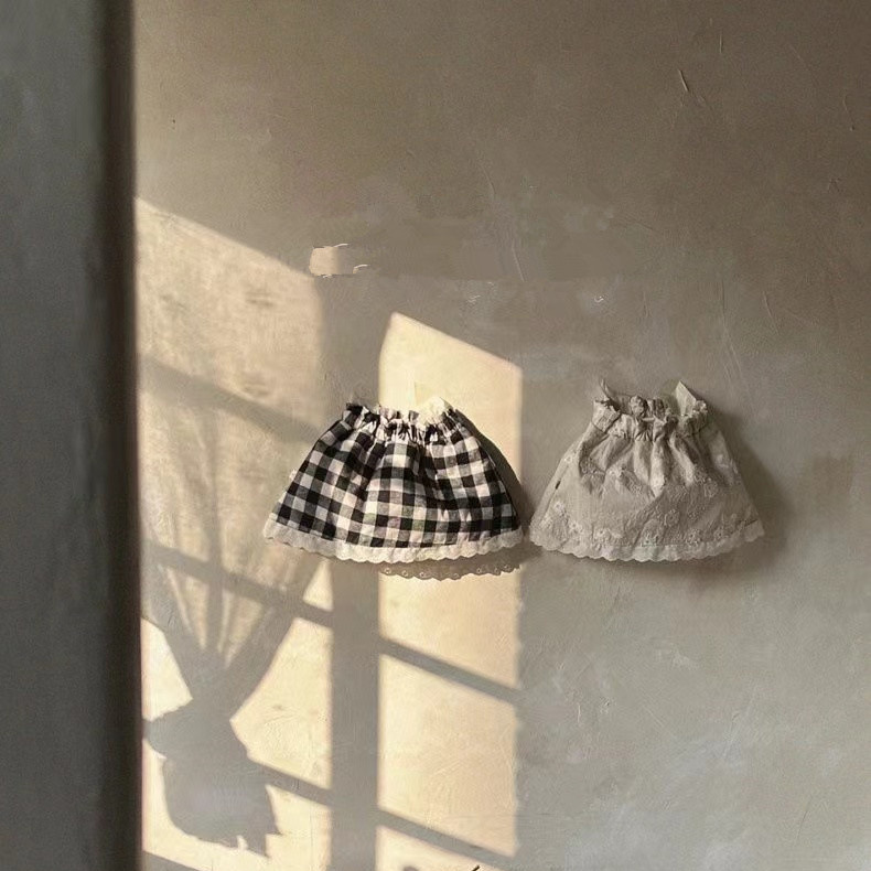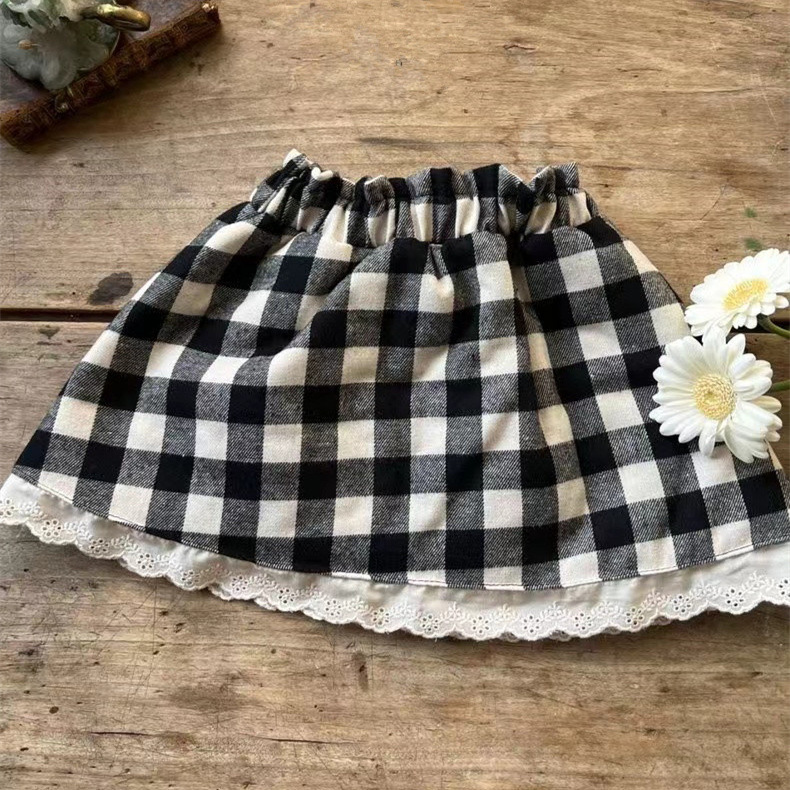 INS 봄과 가을 입체 자수 꽃 치마 아기 소녀 격자 무늬 레이스 스커트
