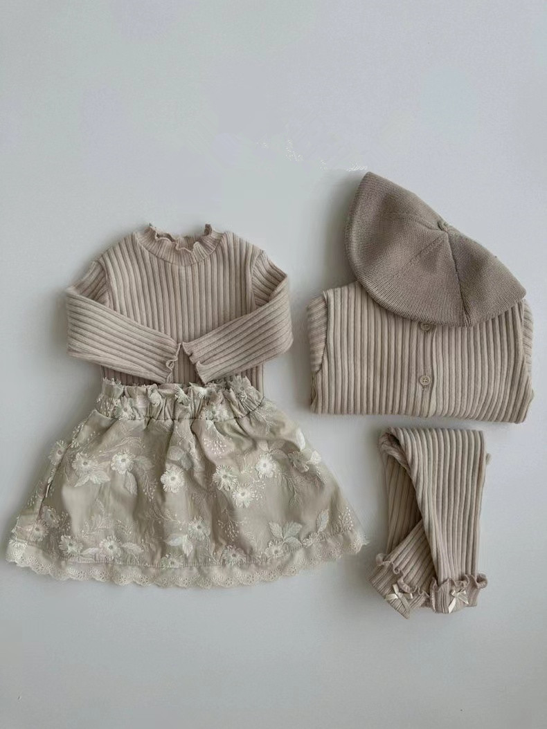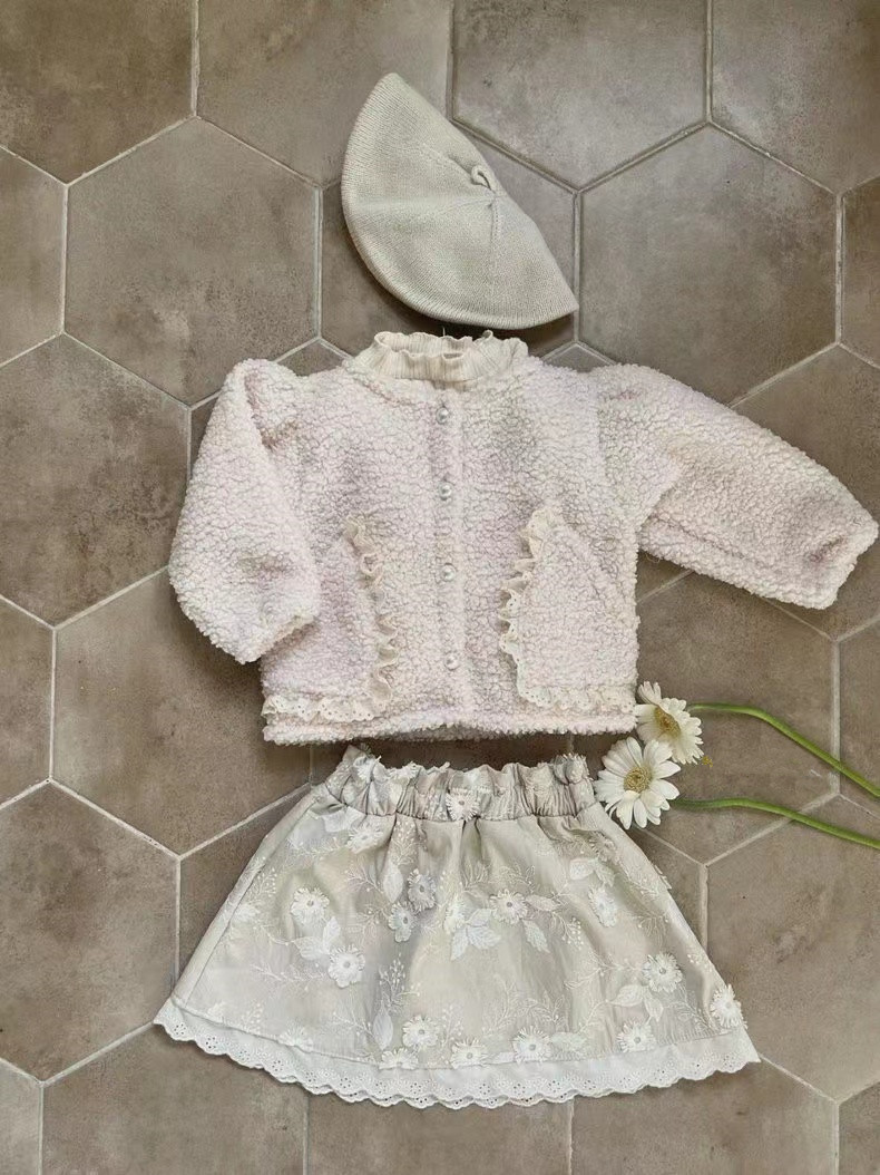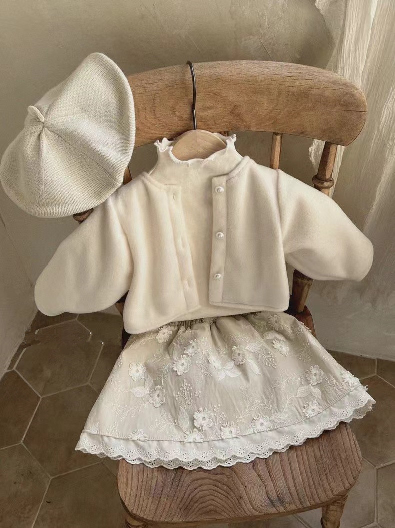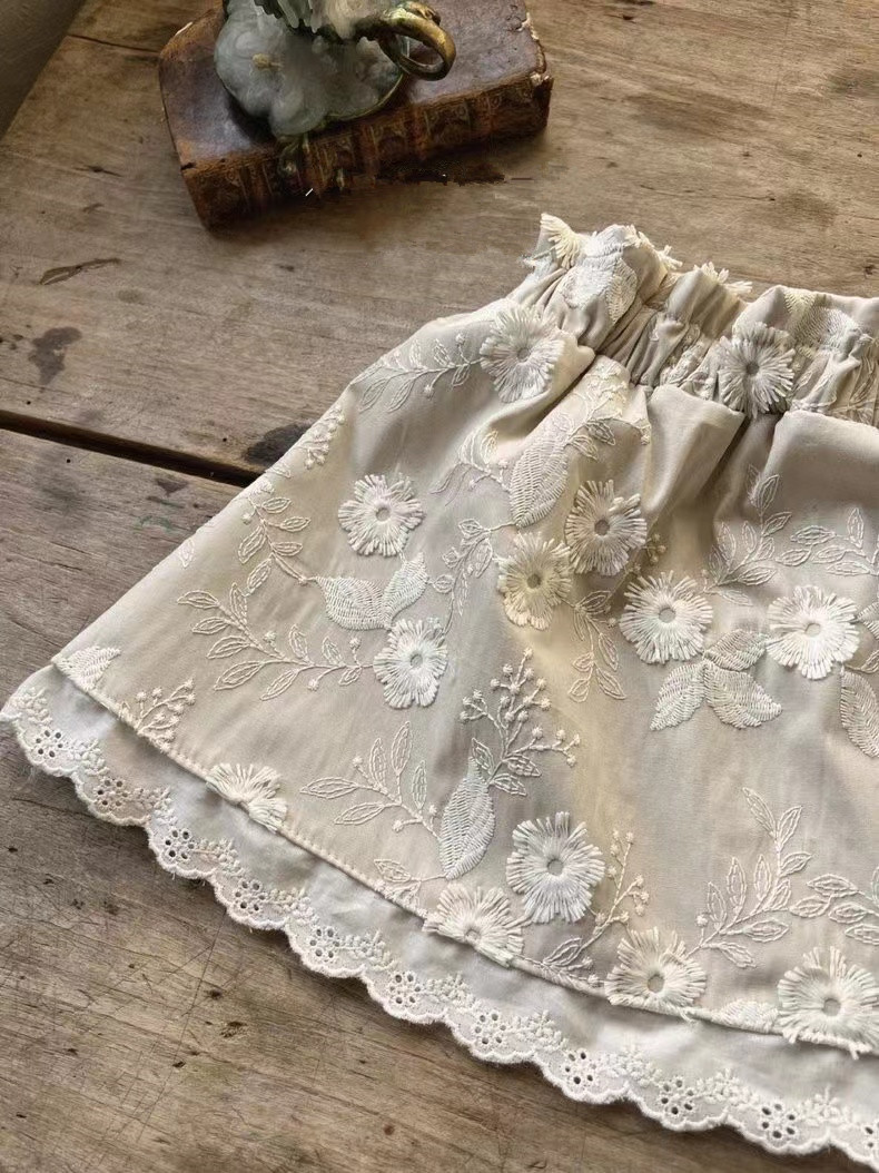INS 봄과 가을 입체 자수 꽃 치마 아기 소녀 격자 무늬 레이스 스커트