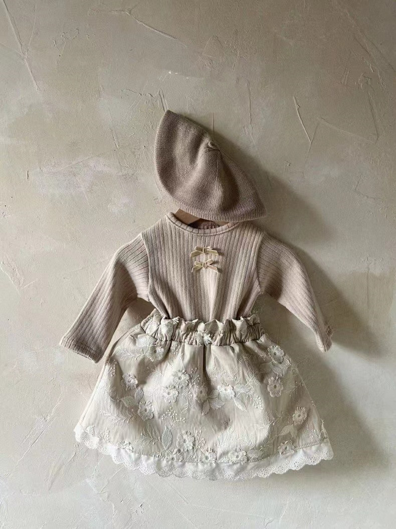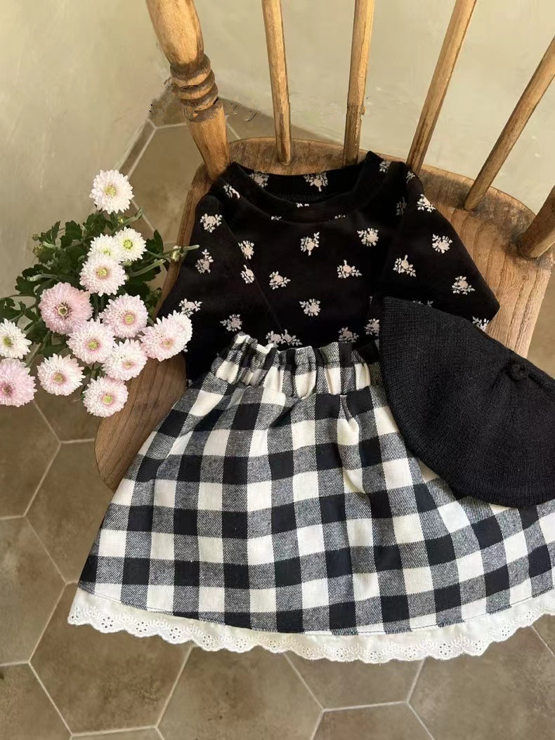 INS 봄과 가을 입체 자수 꽃 치마 아기 소녀 격자 무늬 레이스 스커트스토어 가기