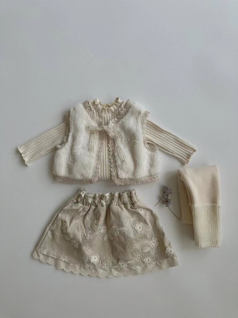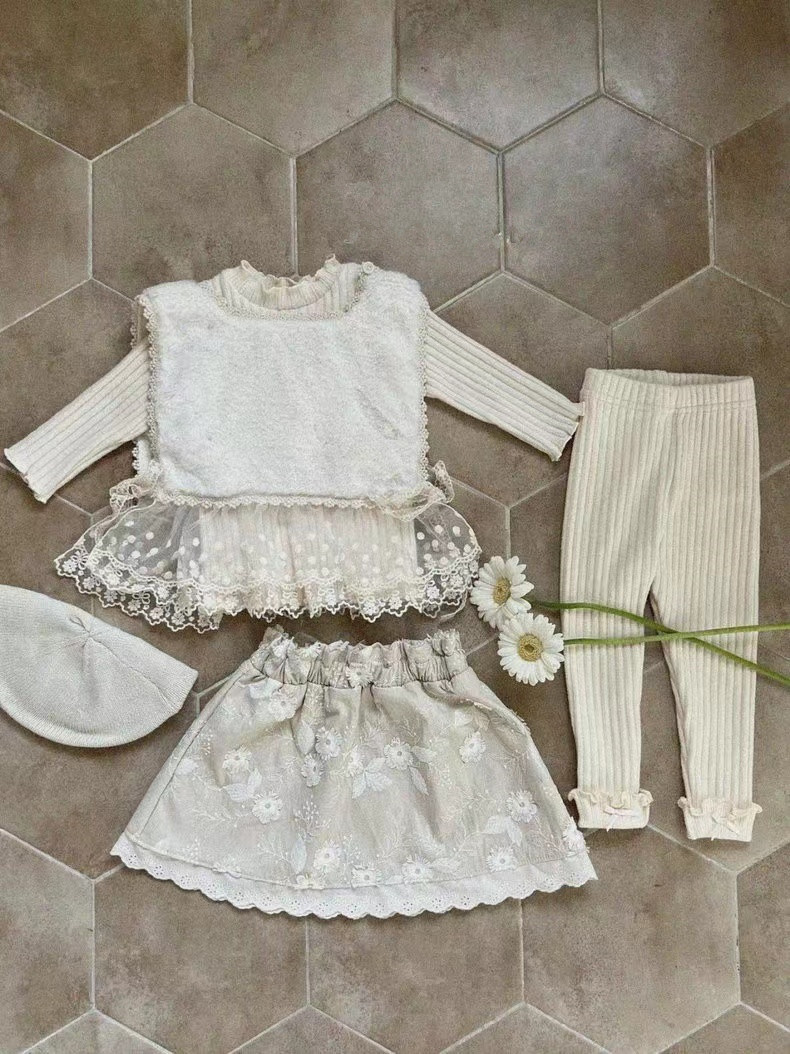 • 라이트 카드 3 차원 꽃 레이스 스커트