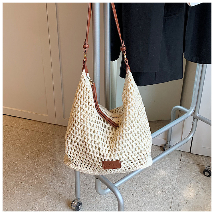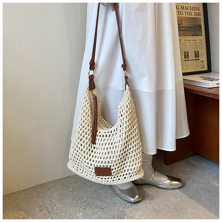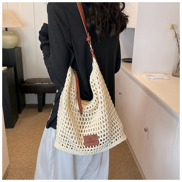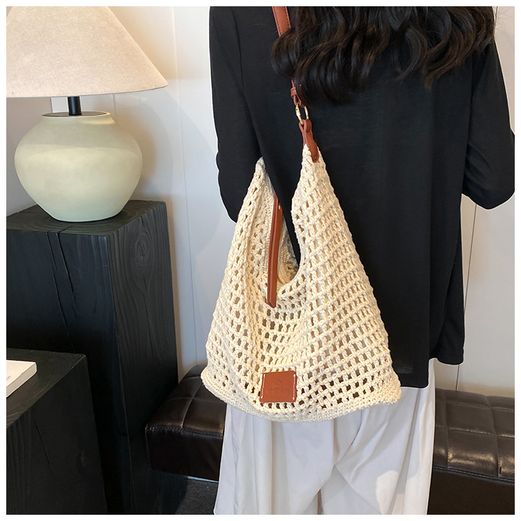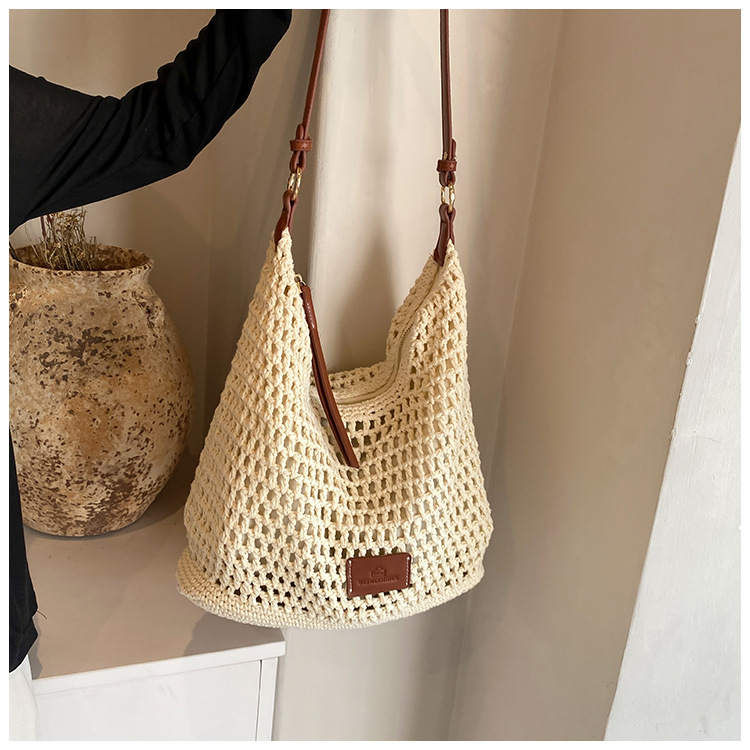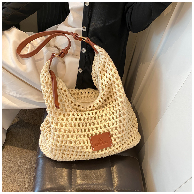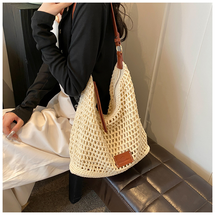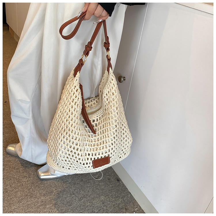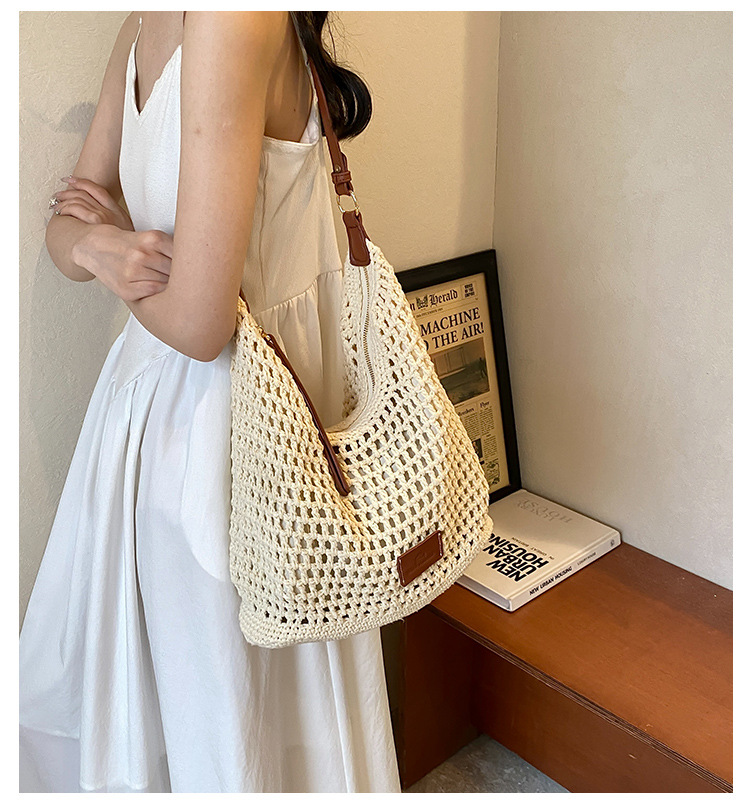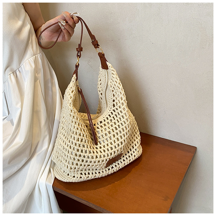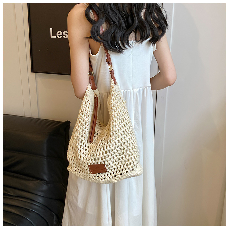 2025 여름 새로운 스타일의 심플한 핸드백 대용량 비치 겨드랑이 가방 심플한 짠 메쉬 가방 숄더백스토어 가기
