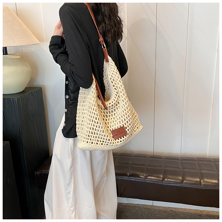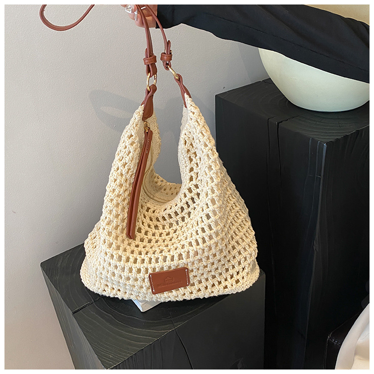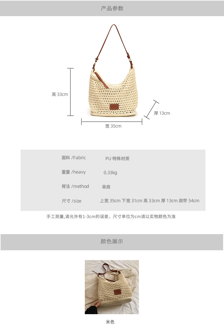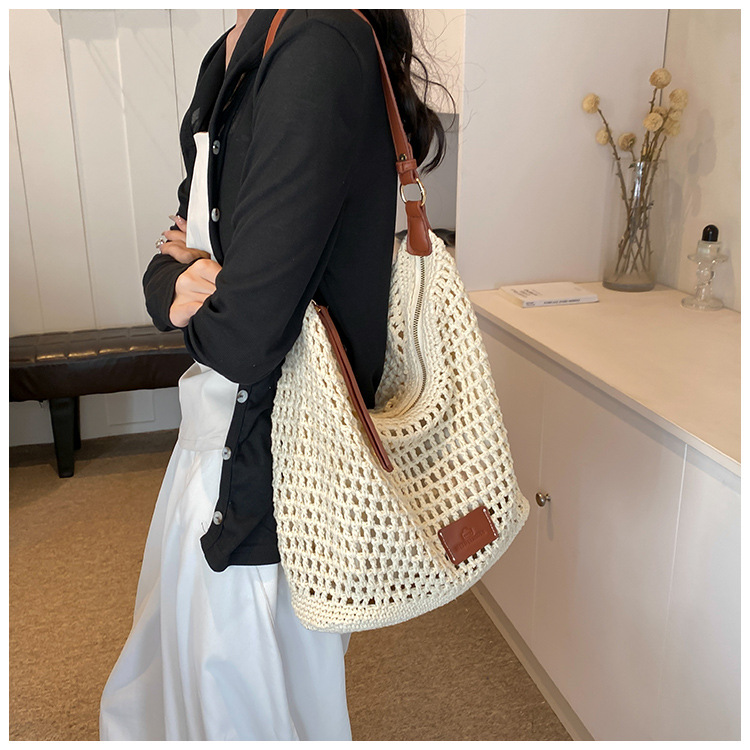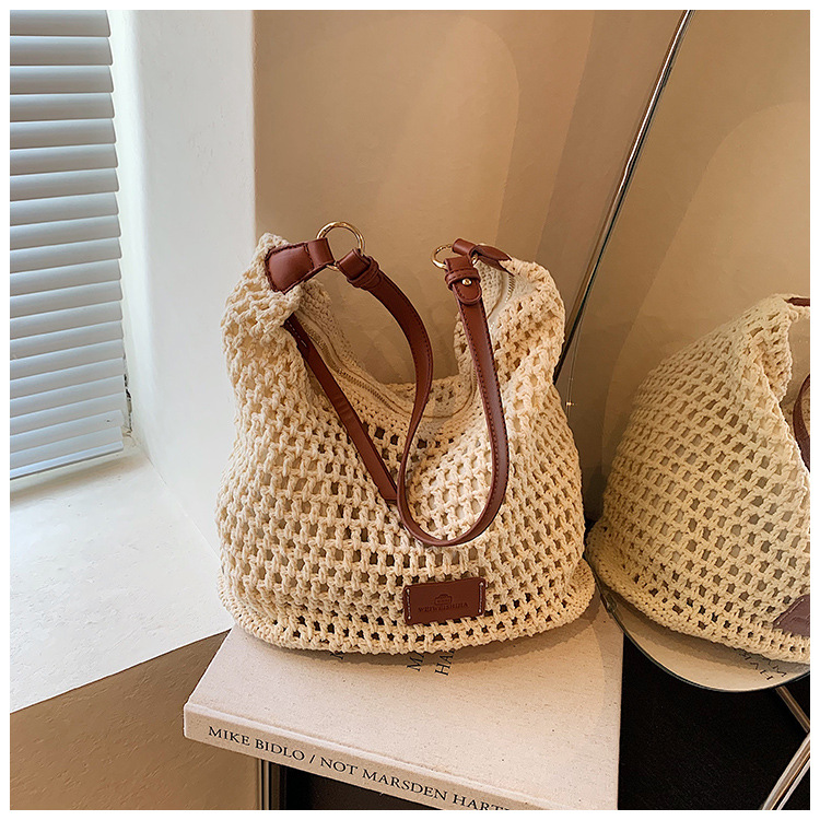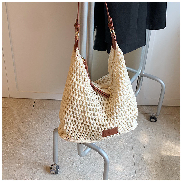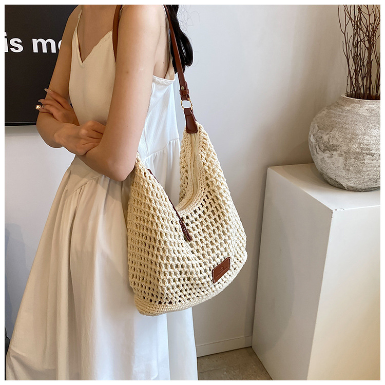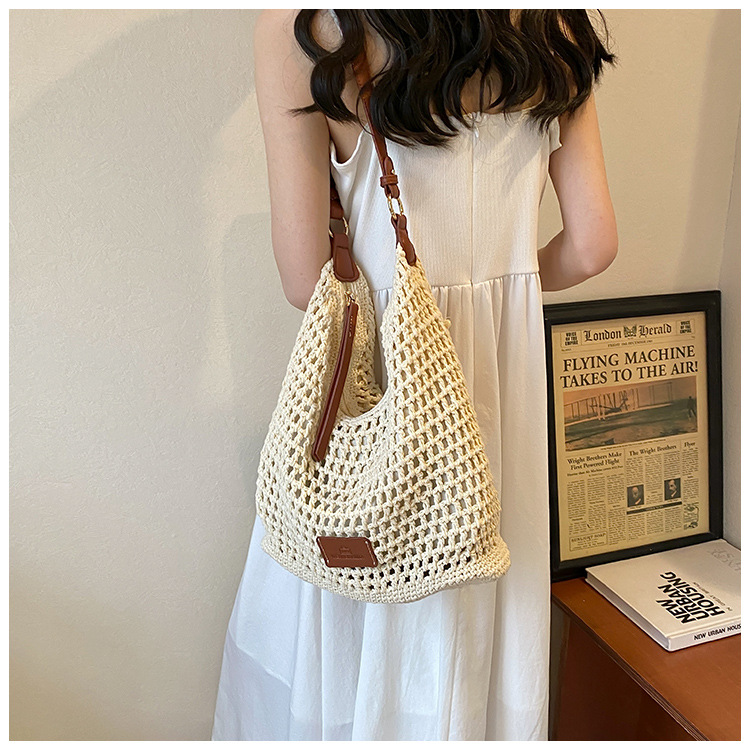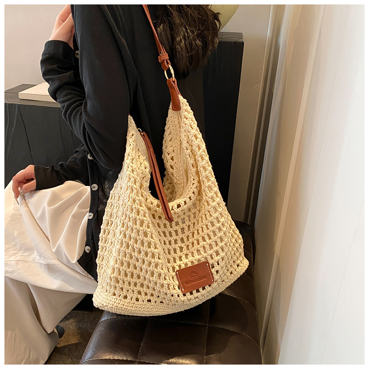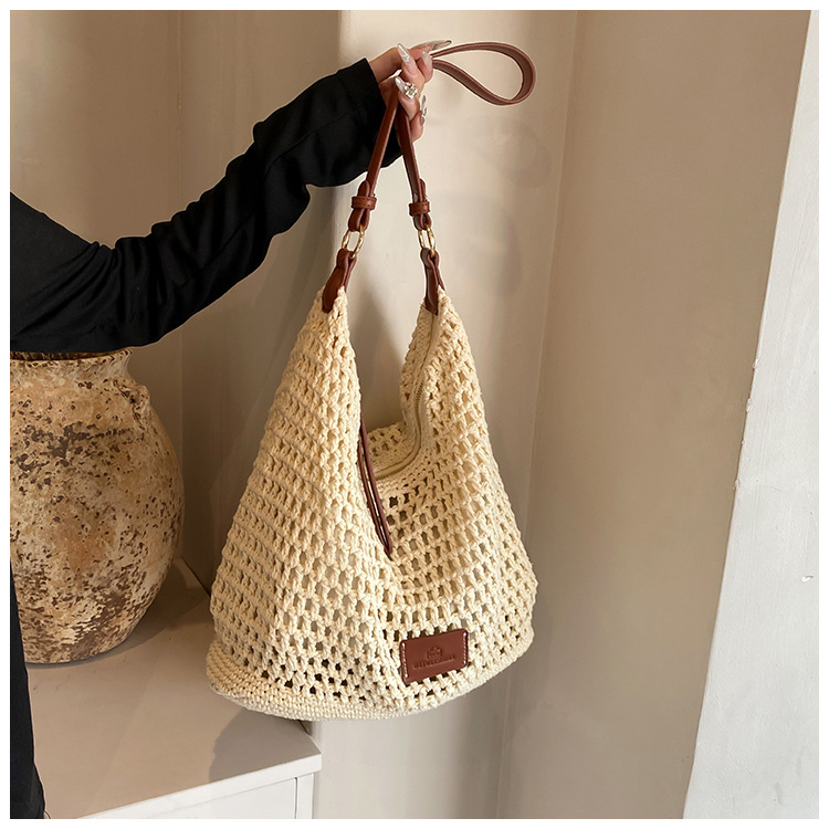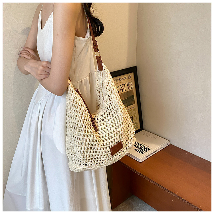 2025 여름 새로운 스타일의 심플한 핸드백 대용량 비치 겨드랑이 가방 심플한 짠 메쉬 가방 숄더백스토어 가기