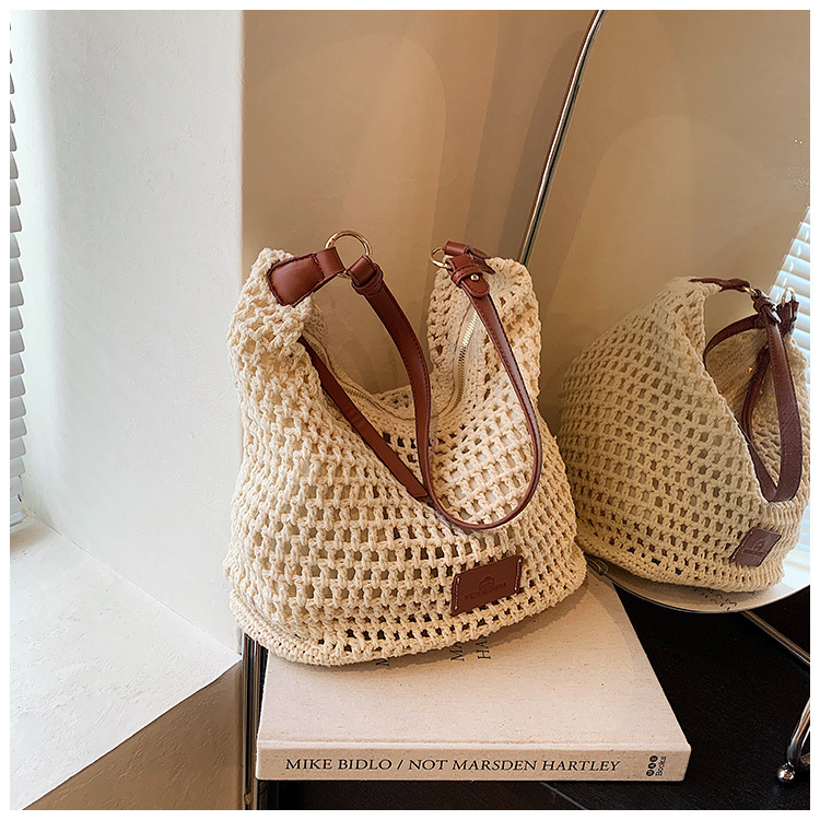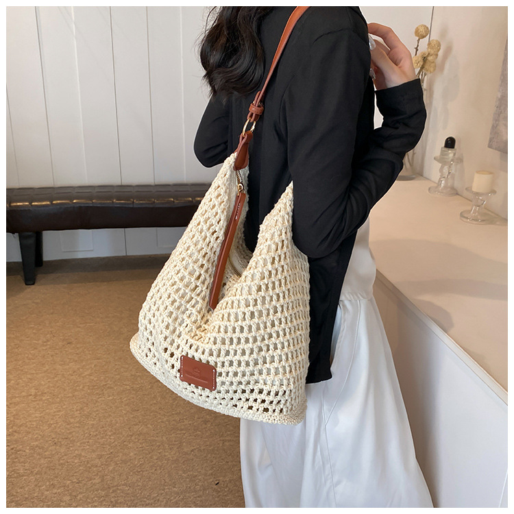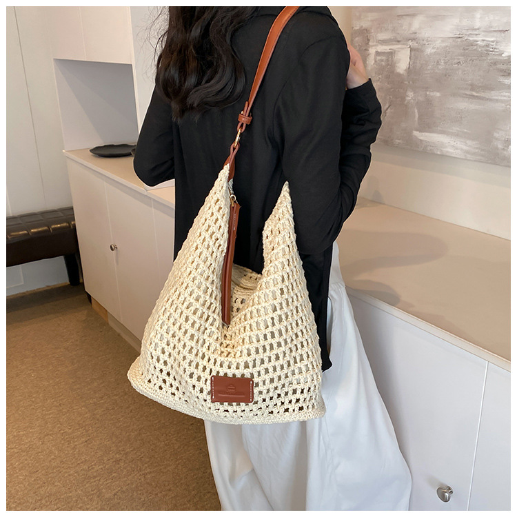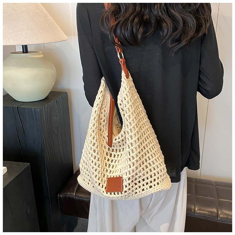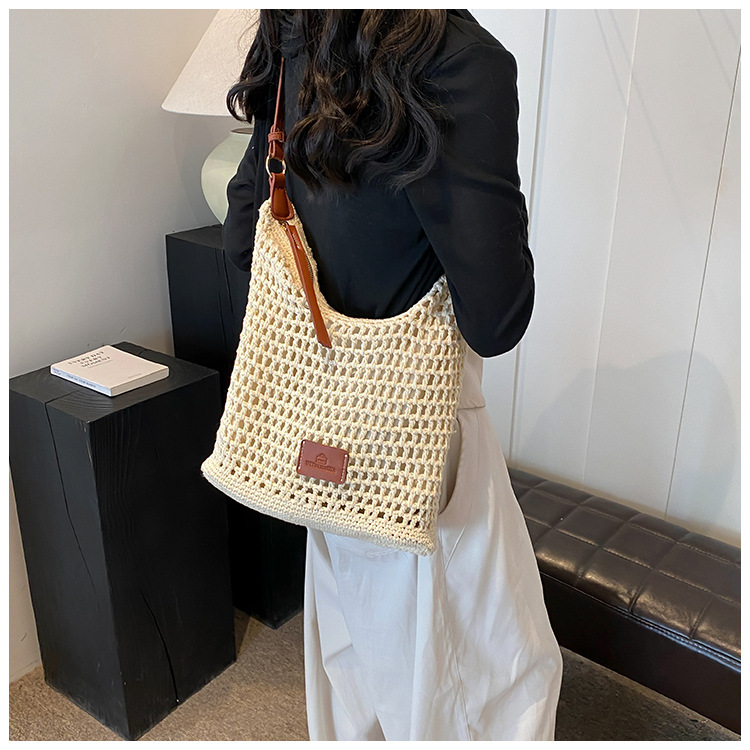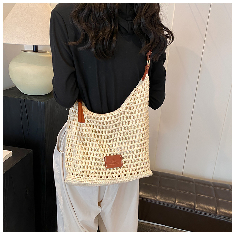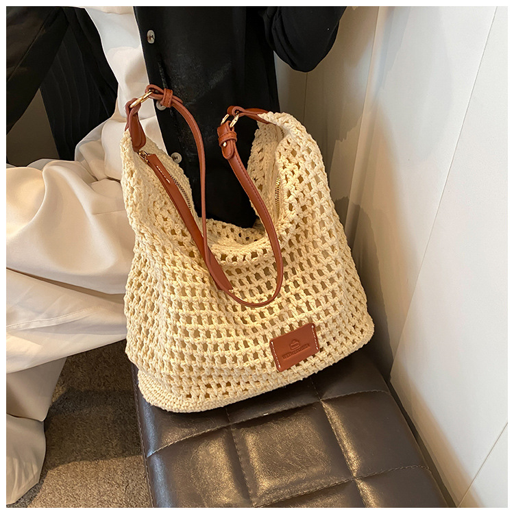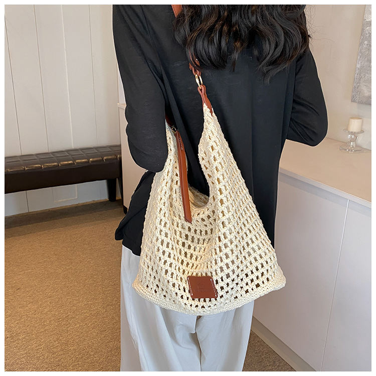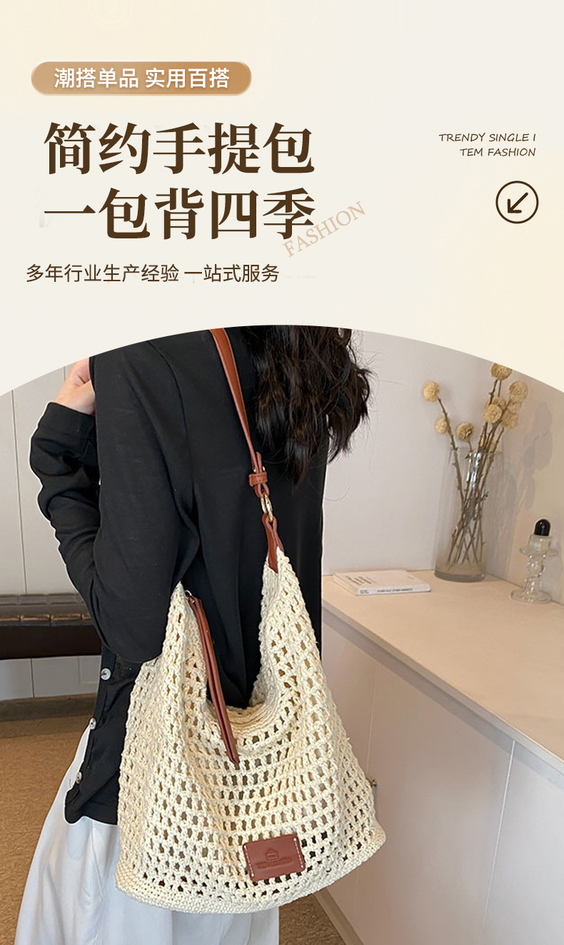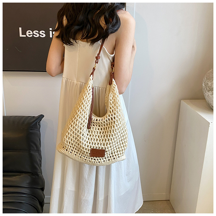 2025 여름 새로운 스타일의 심플한 핸드백 대용량 비치 겨드랑이 가방 심플한 짠 메쉬 가방 숄더백스토어 가기
