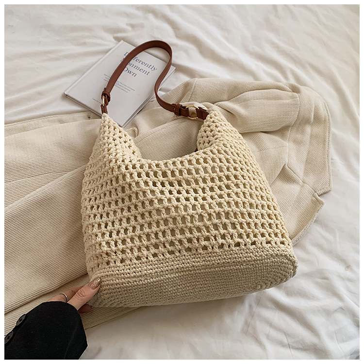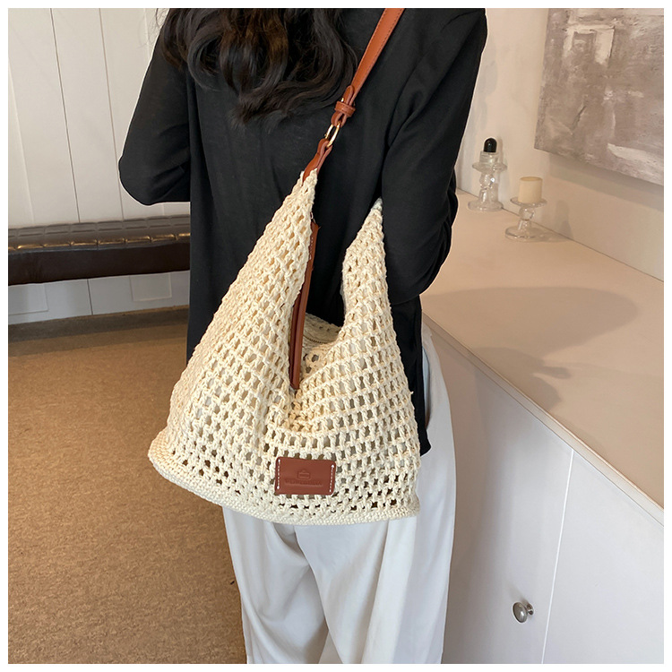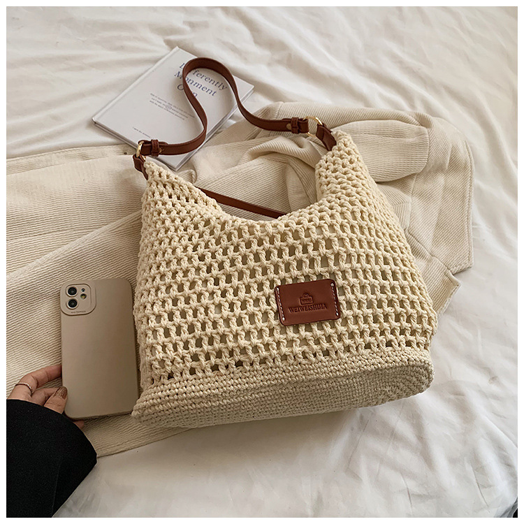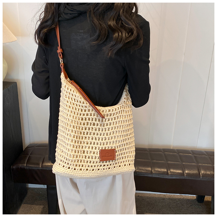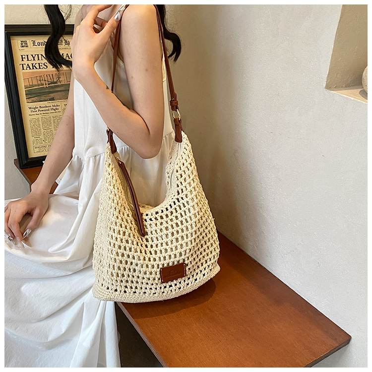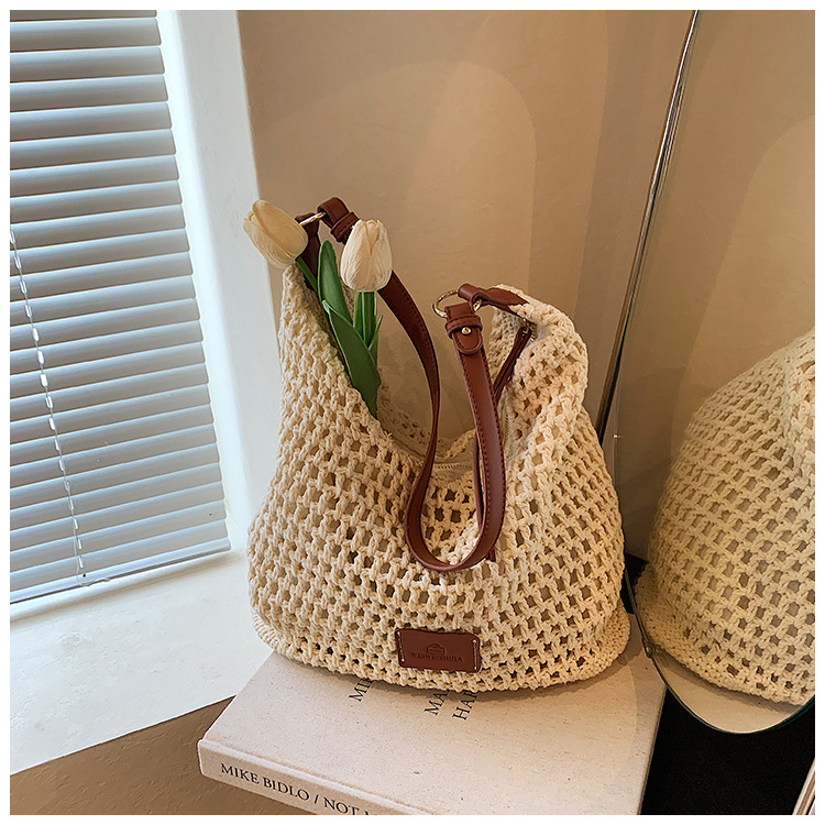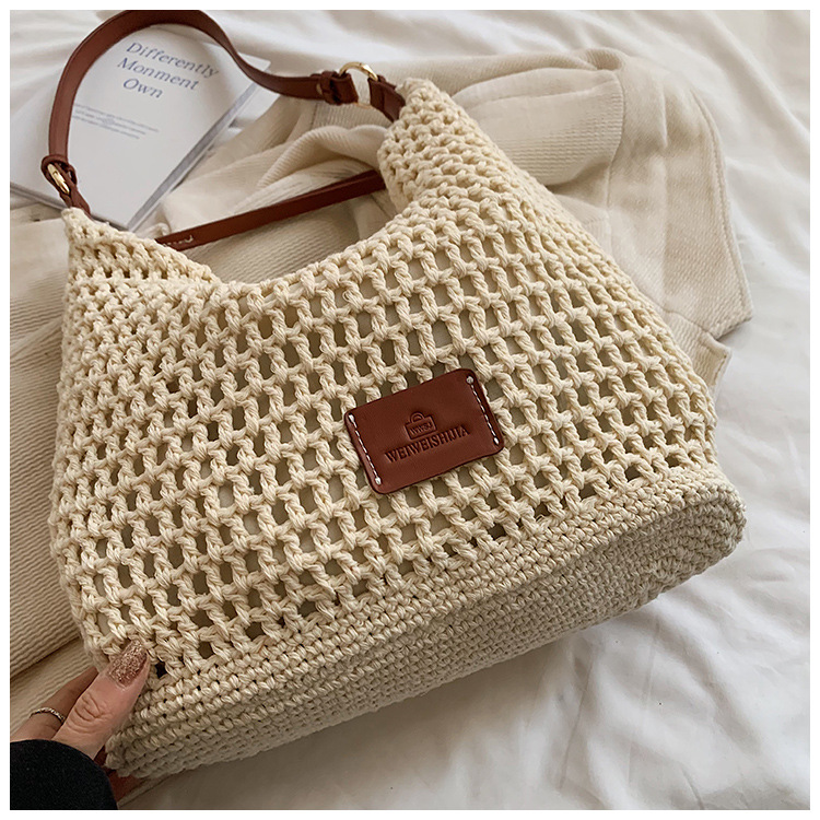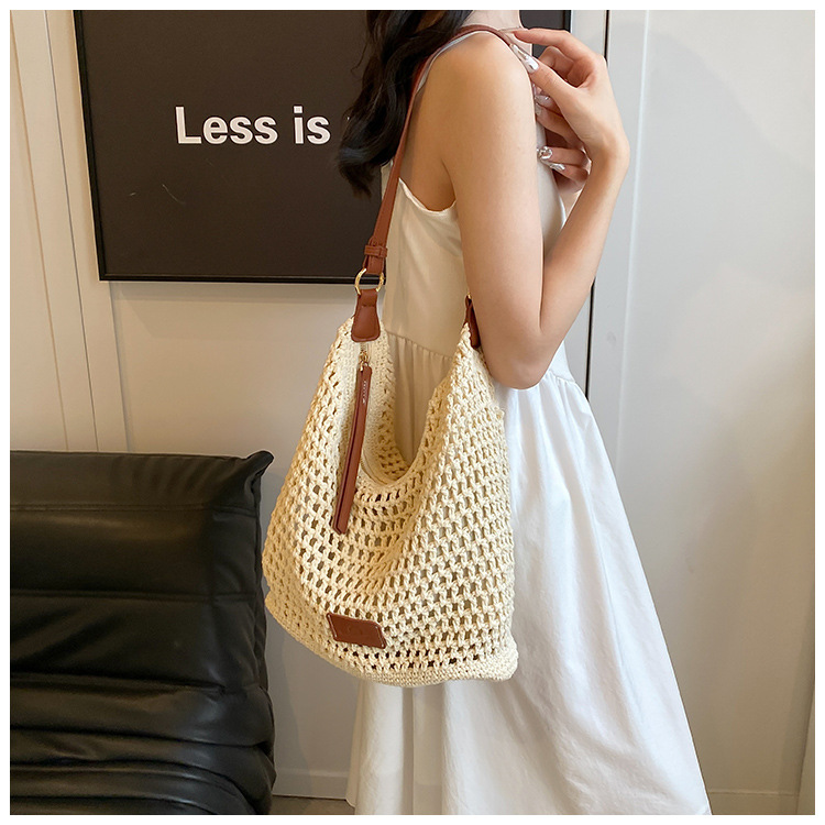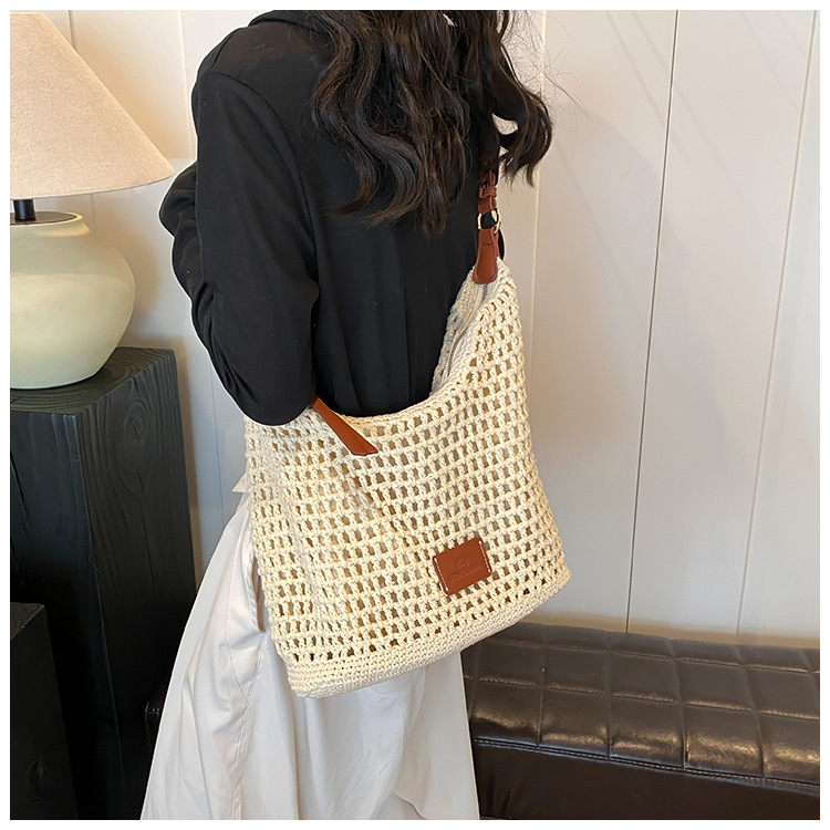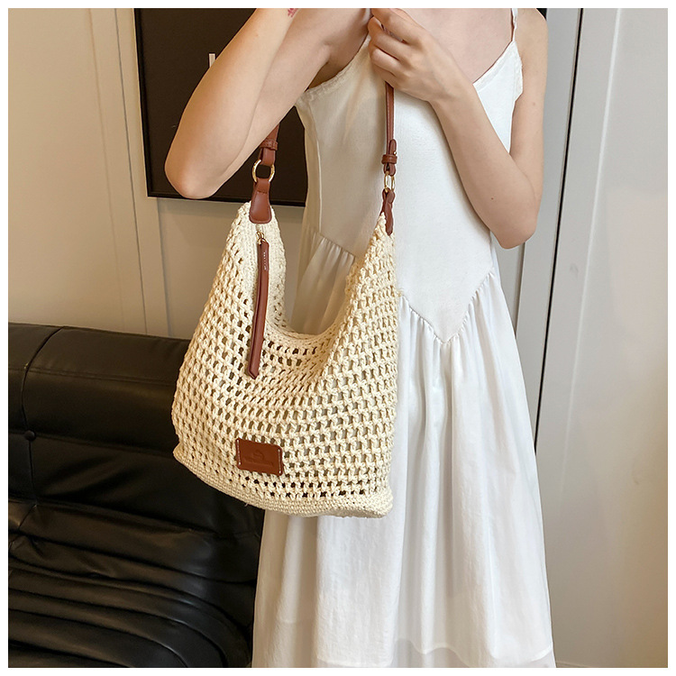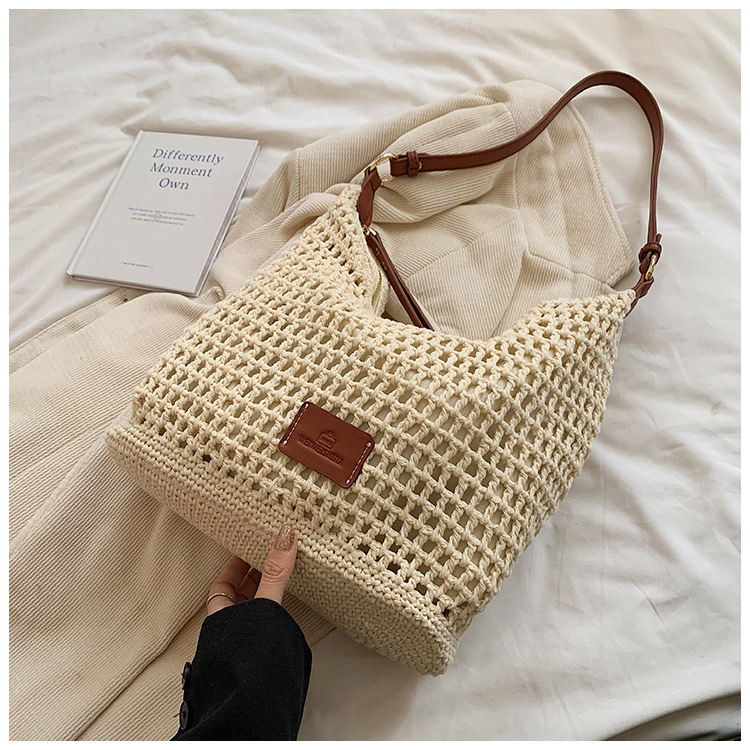 2025 여름 새로운 스타일의 심플한 핸드백 대용량 비치 겨드랑이 가방 심플한 짠 메쉬 가방 숄더백스토어 가기
