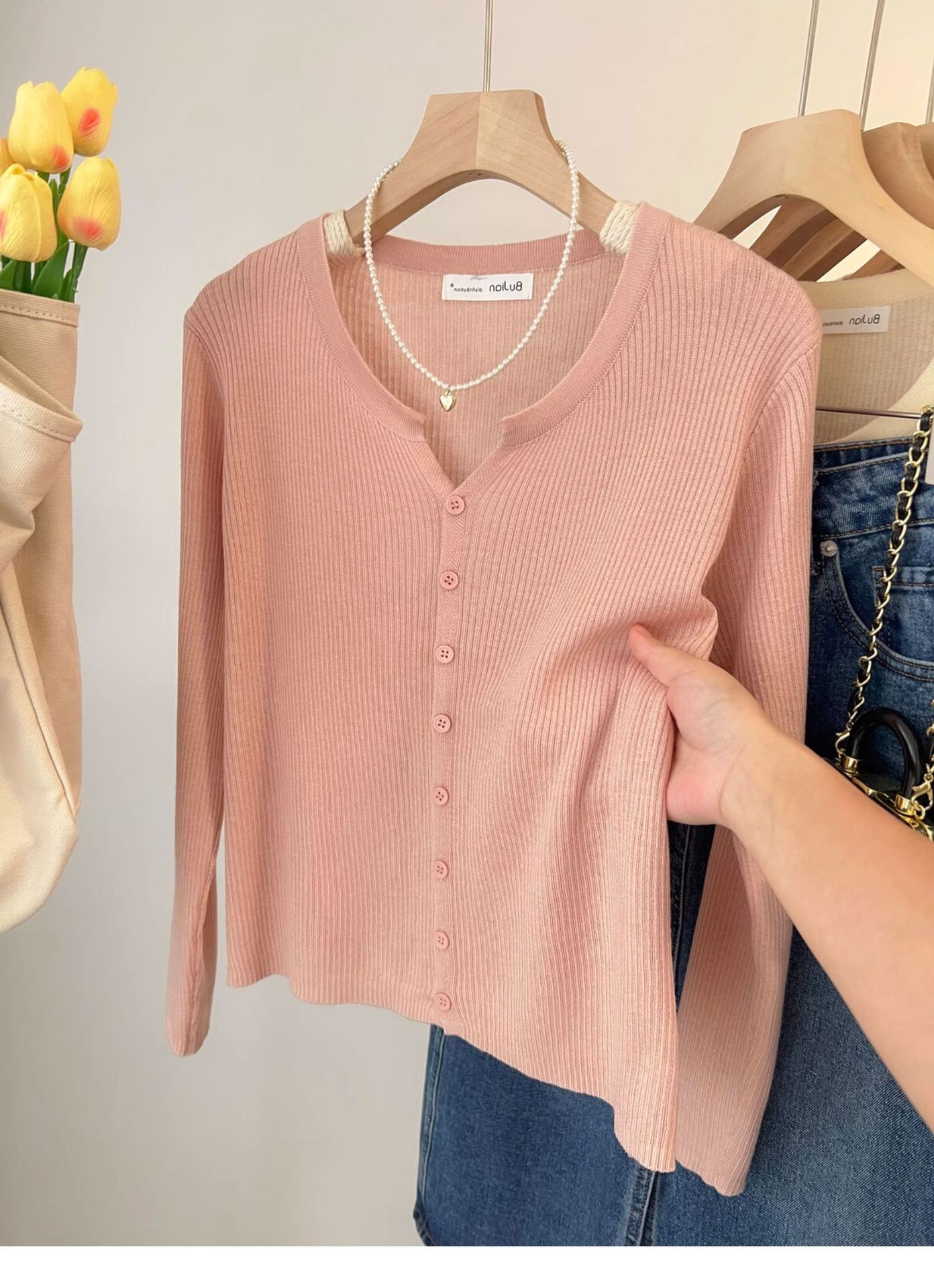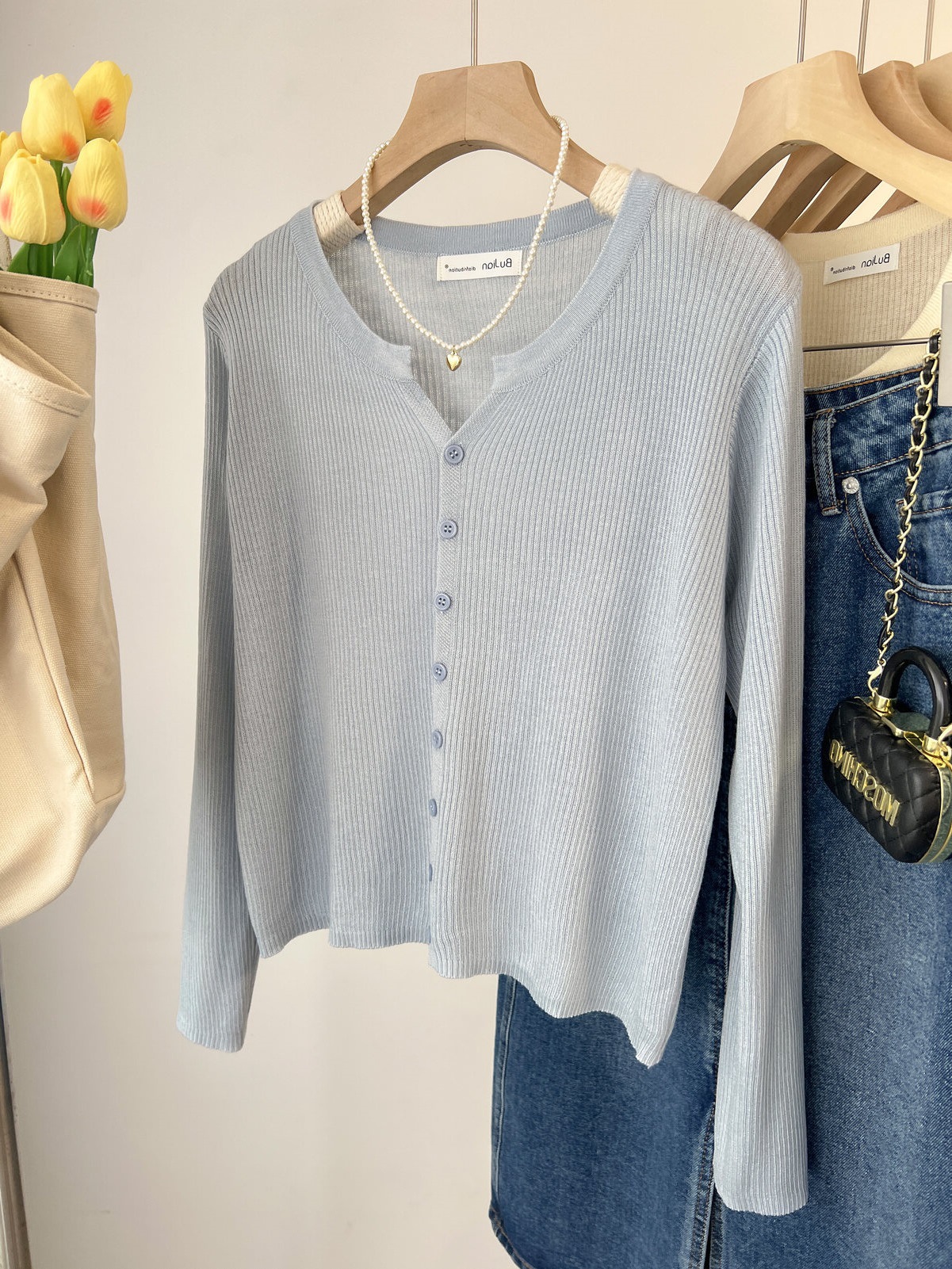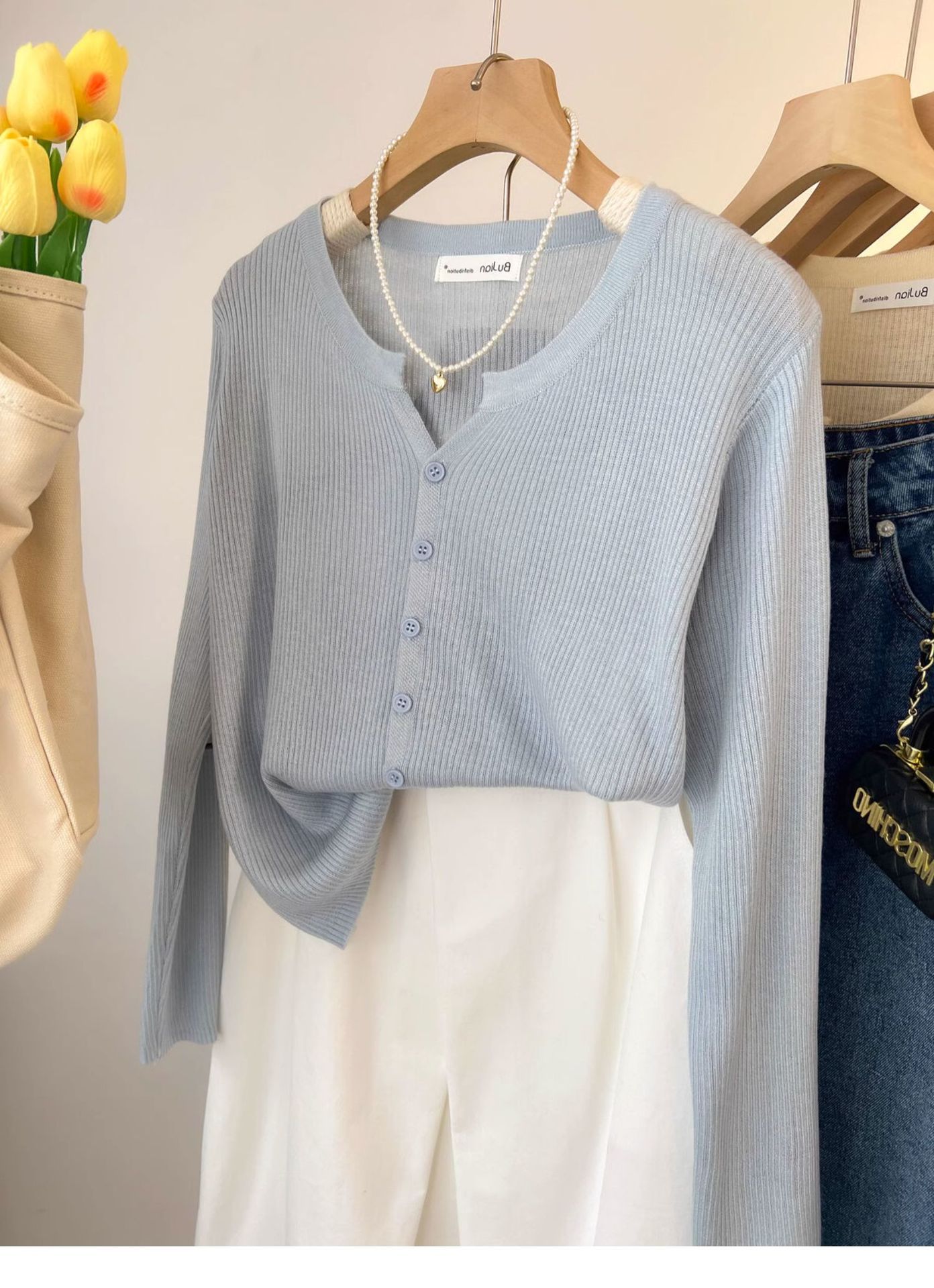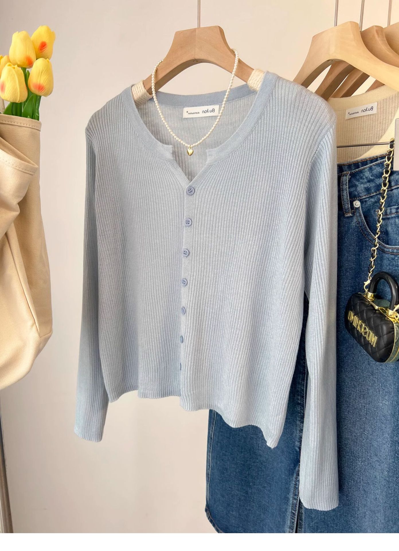 블루 니트 스웨터 카디건 재킷 여성 봄 새로운 한국 스타일 얇은 바닥 셔츠와 숄 블라우스 탑