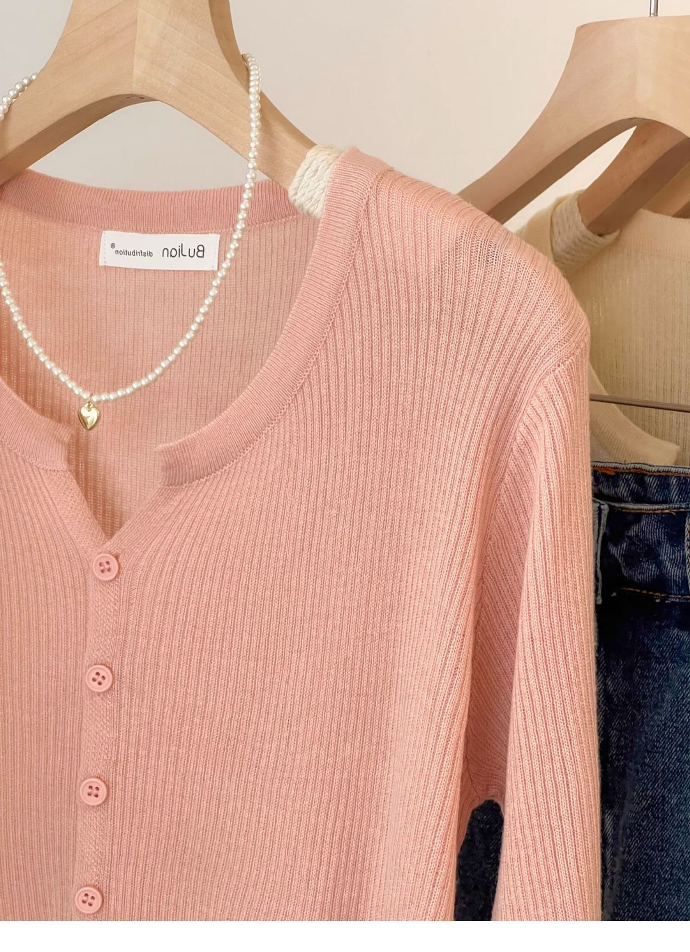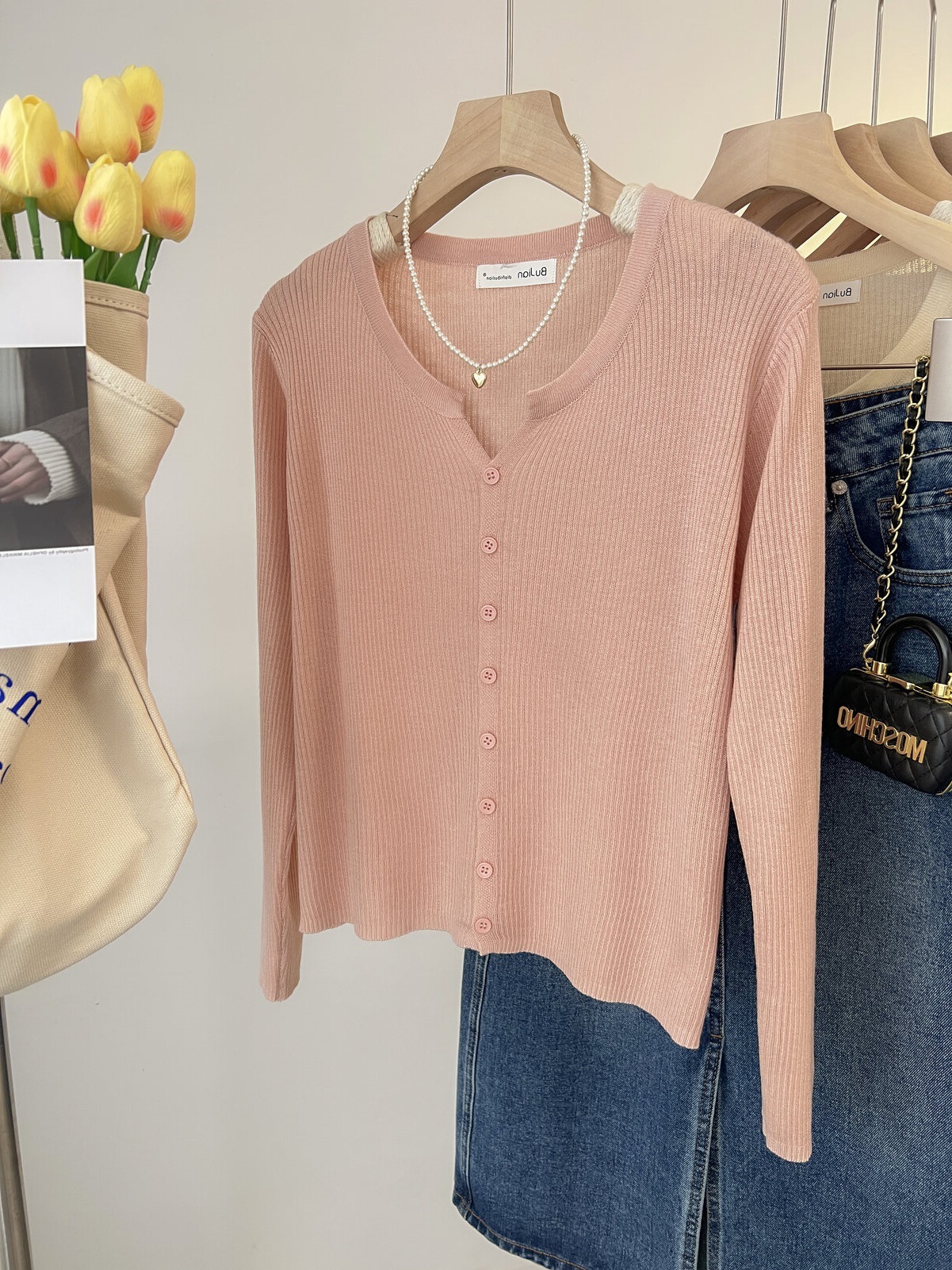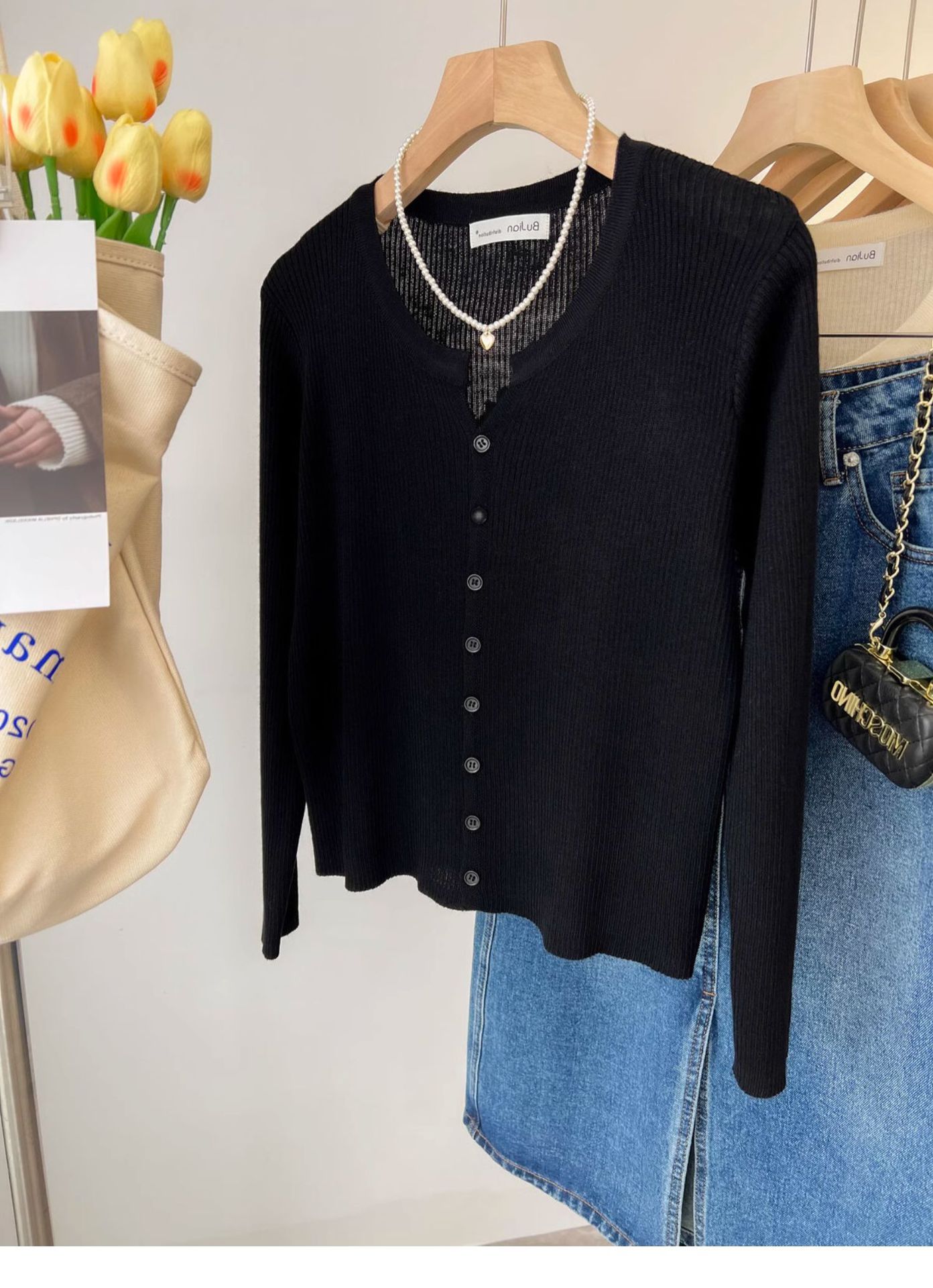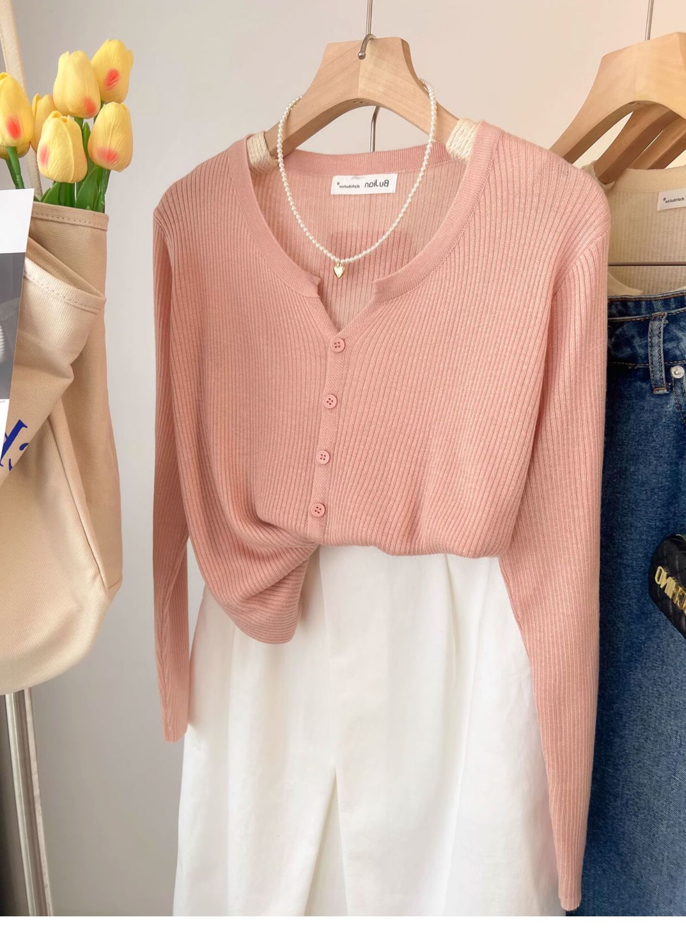 블루 니트 스웨터 카디건 재킷 여성 봄 새로운 한국 스타일 얇은 바닥 셔츠와 숄 블라우스 탑