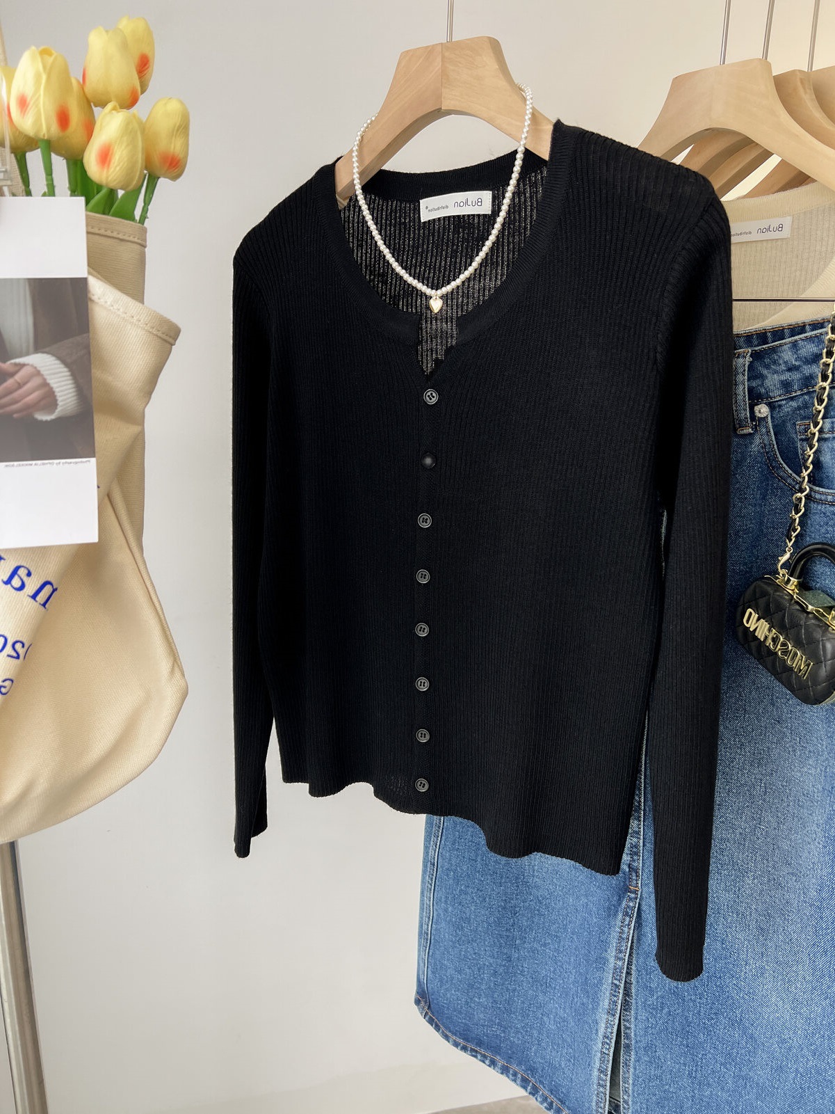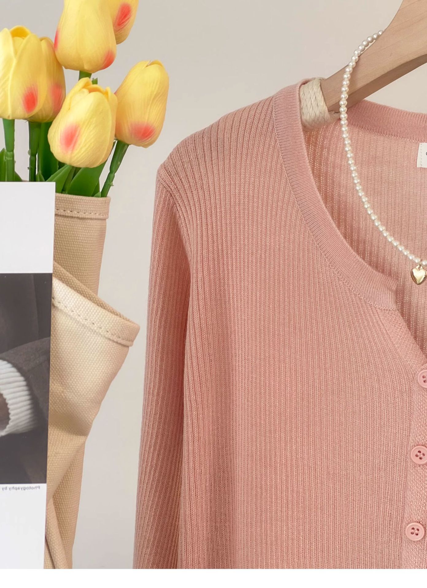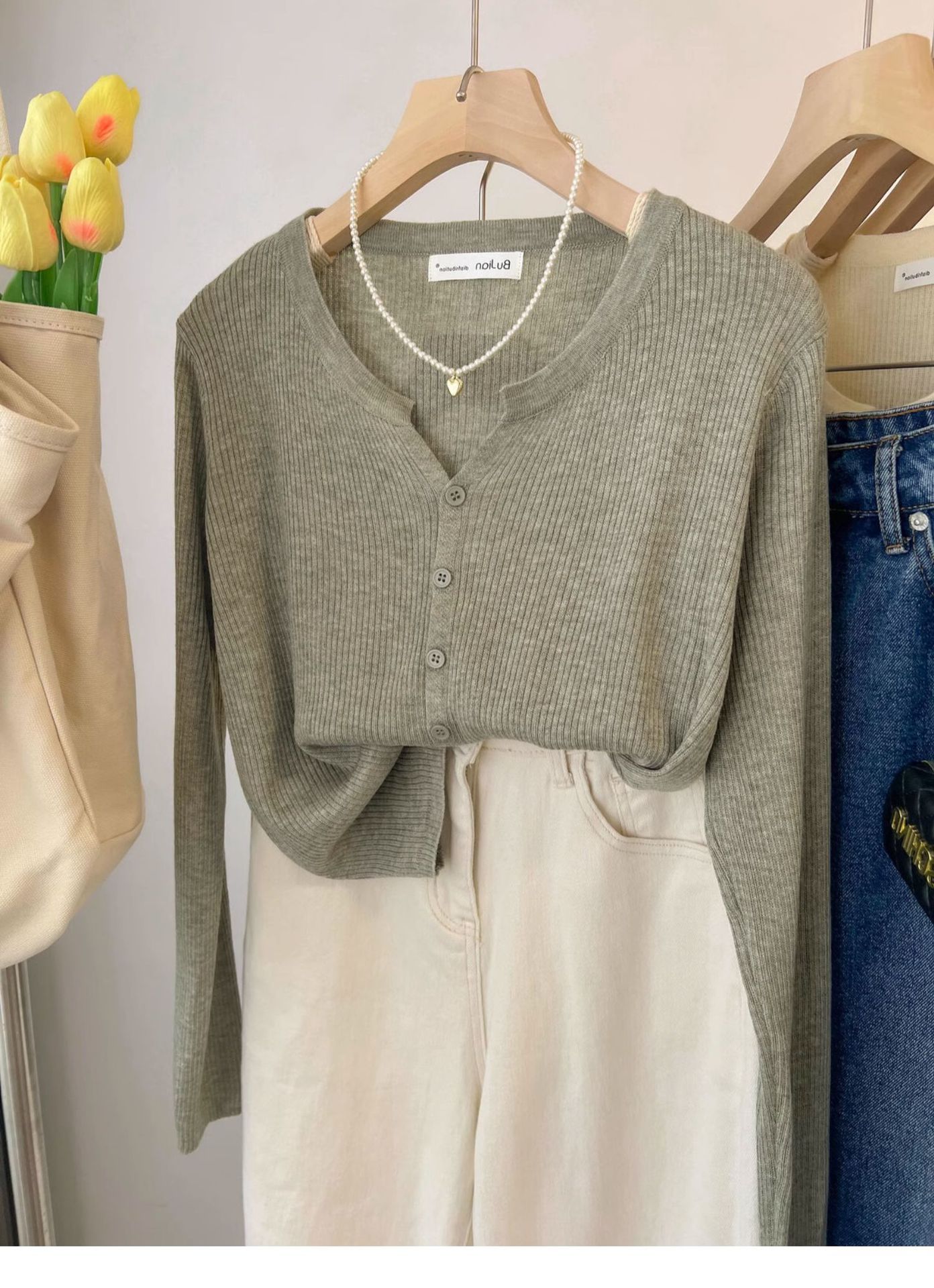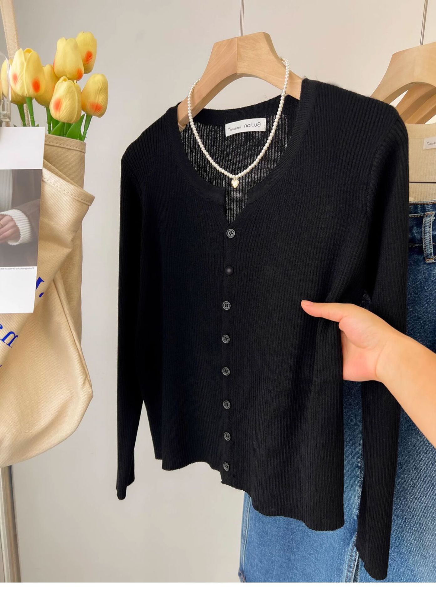 블루 니트 스웨터 카디건 재킷 여성 봄 새로운 한국 스타일 얇은 바닥 셔츠와 숄 블라우스 탑