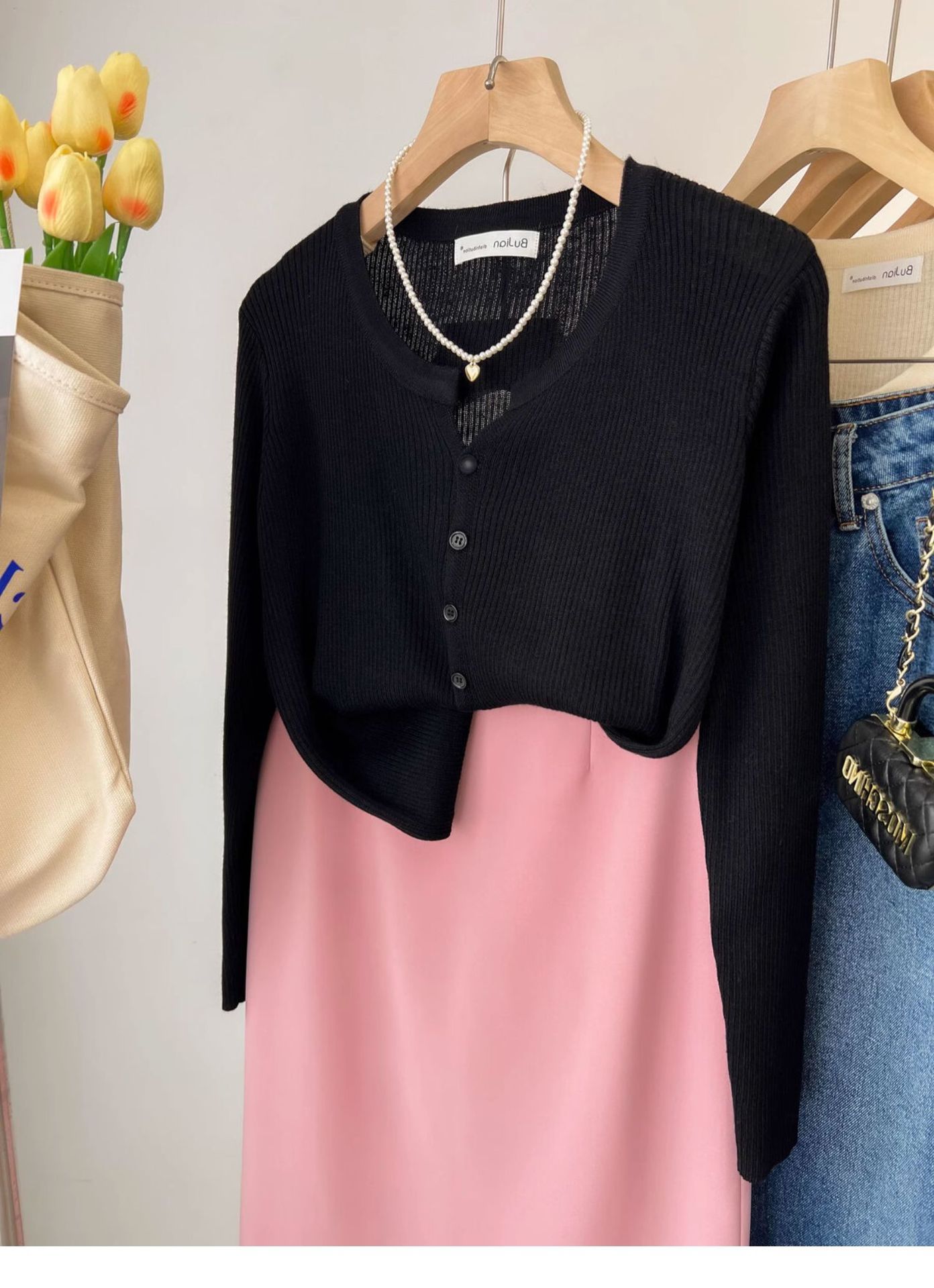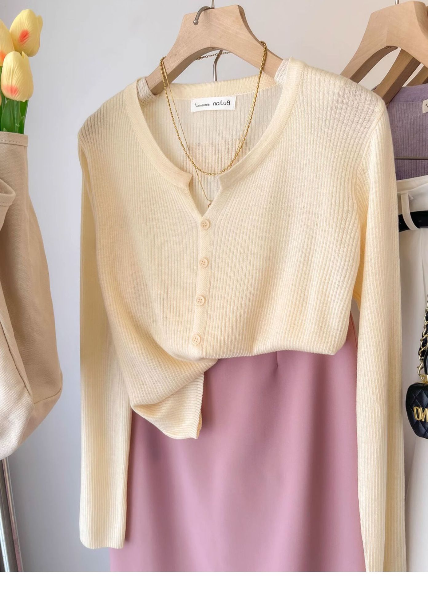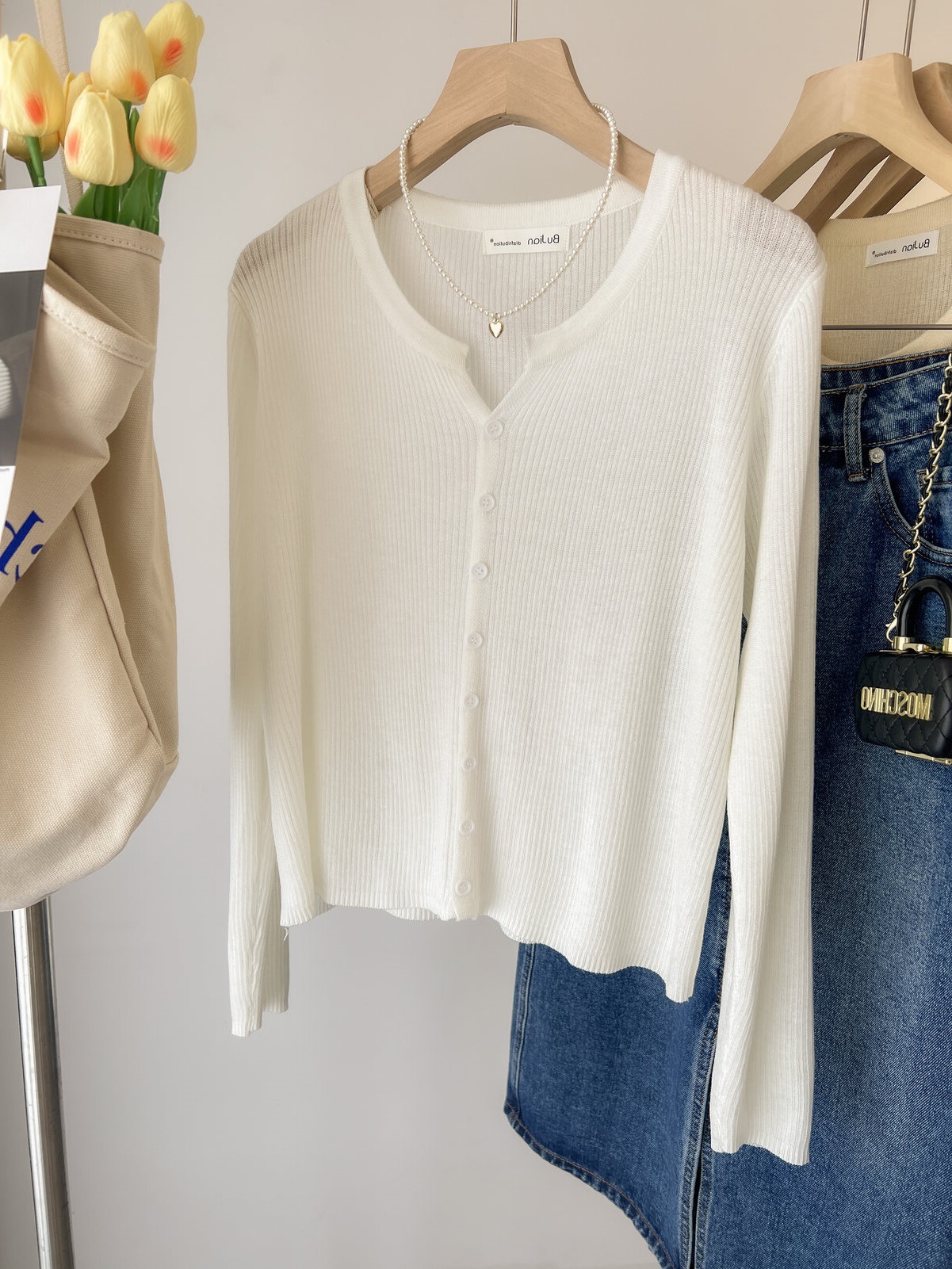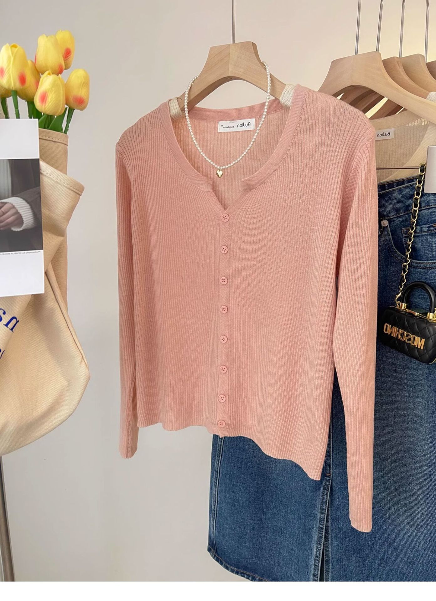 블루 니트 스웨터 카디건 재킷 여성 봄 새로운 한국 스타일 얇은 바닥 셔츠와 숄 블라우스 탑
