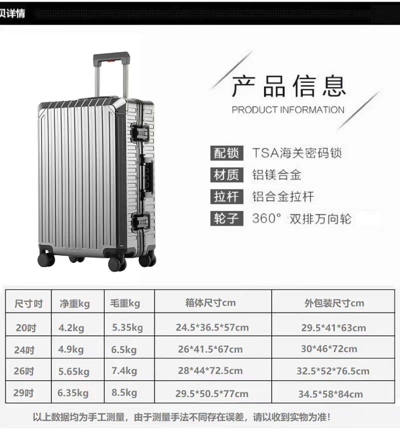 20inch 올 알루미늄 마그네슘 합금 여행가방 금속 트롤리 26inch 남성용 여행가방 회전 바퀴 기내용 가방 비밀번호 가방스토어 가기